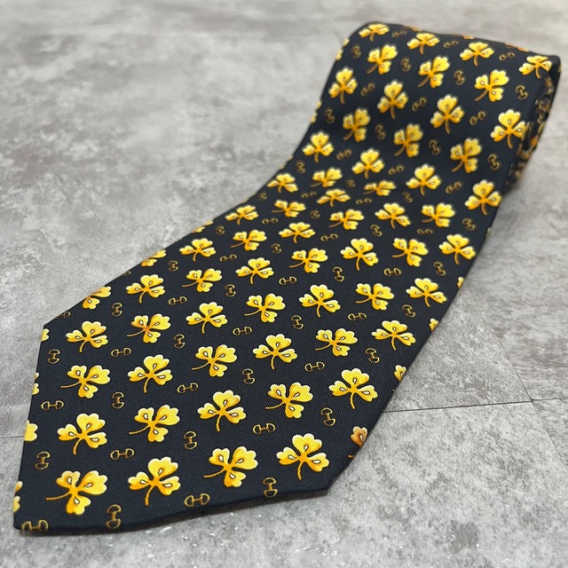 【CELINE】植物柄ネクタイ ネイビー 小紋花柄 リーフモチーフ ボタニカル