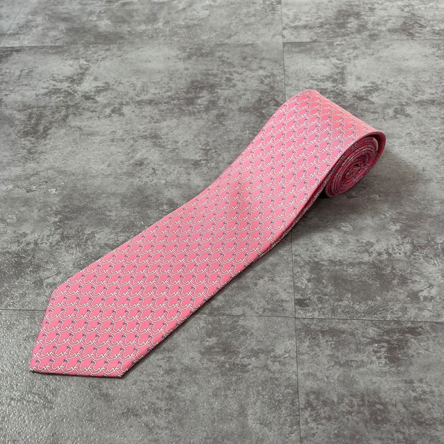 【Salvatore Ferragamo】アシカ柄ネクタイ アニマル柄 ピンク 可愛い