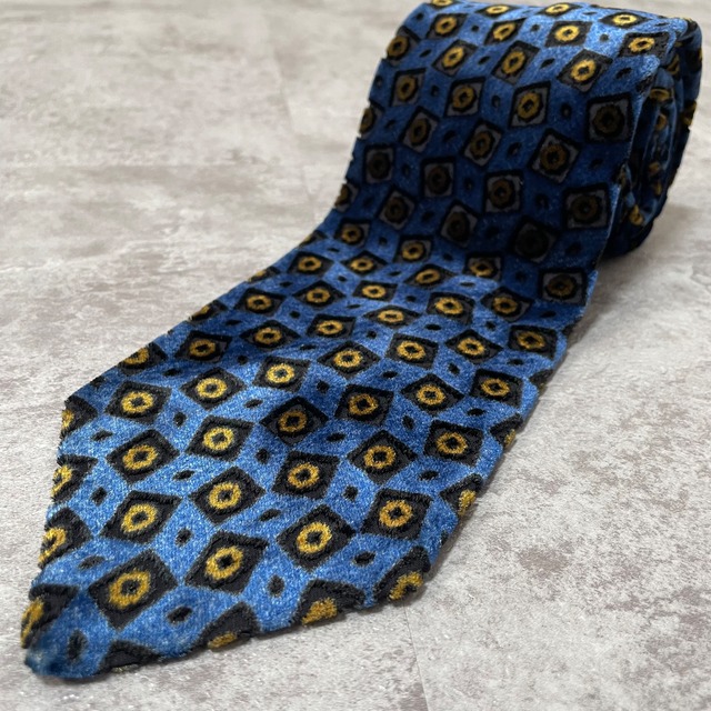 【GIORGIO ARMANI】ベロア生地ネクタイ ブルー 青 スクエア柄 四角形 幾何学 ジョルジオアルマーニ ビジネス向け 光沢肉厚
