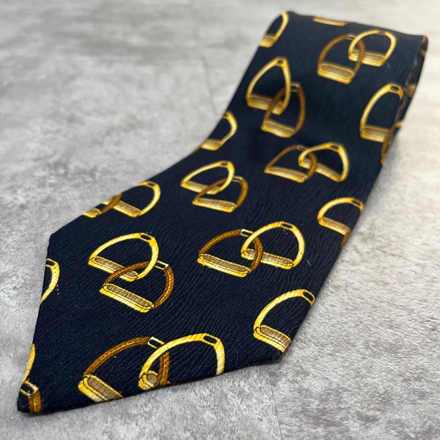 【CELINE】ホースビットモチーフネクタイ 馬具 ネイビー 2連ホースビット