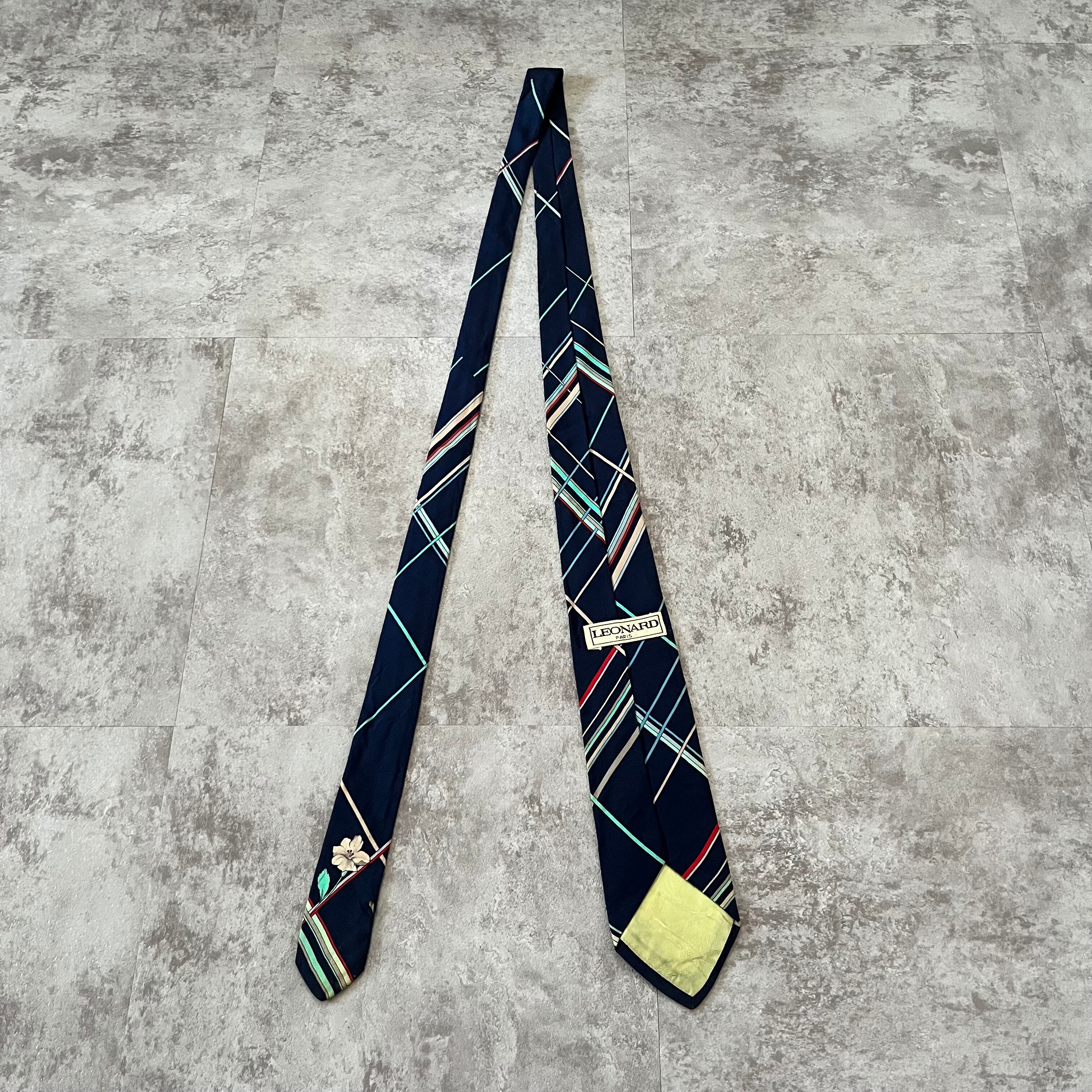 【LEONARD】 フラワー×ラインデザインネクタイ ネイビー 花柄 レオナール
