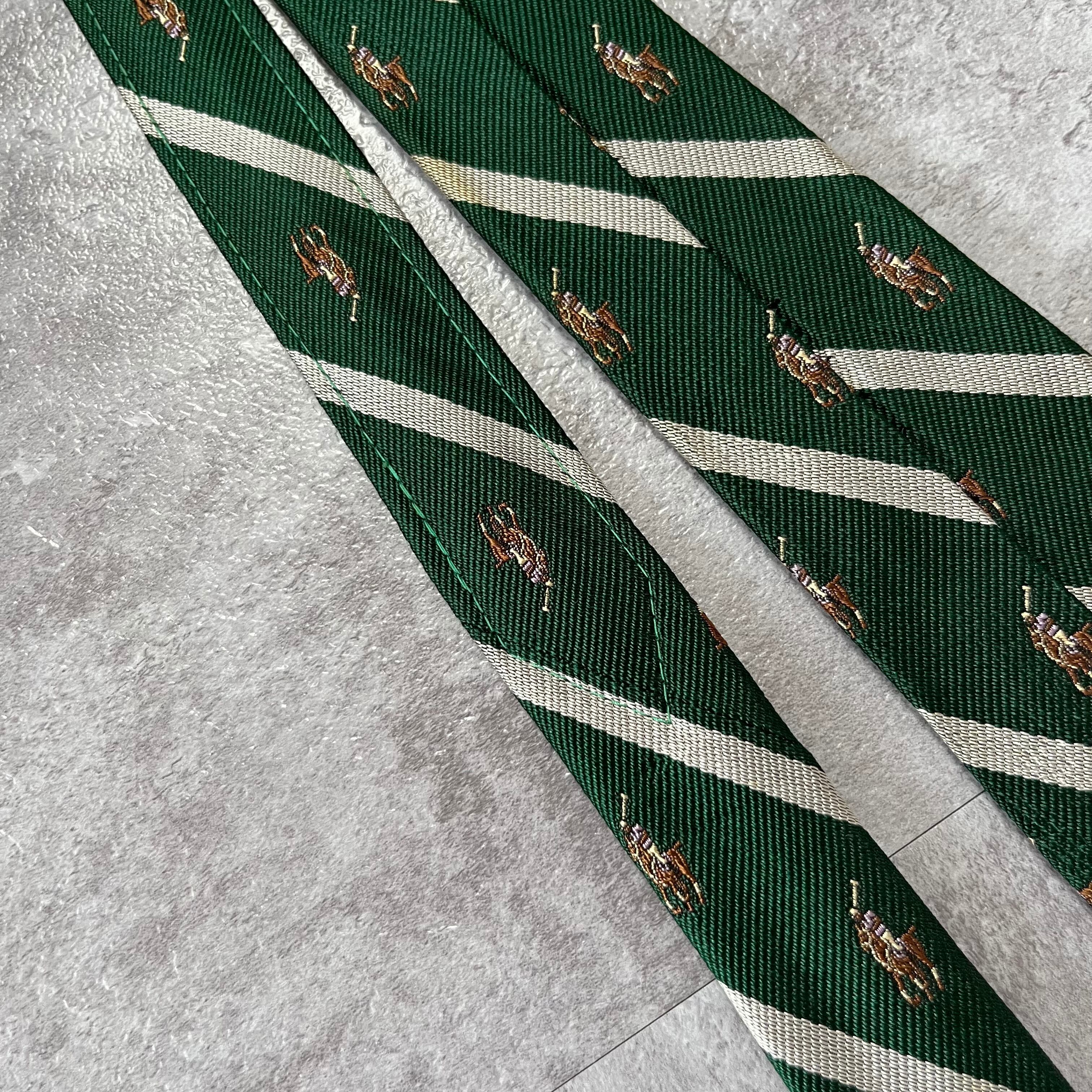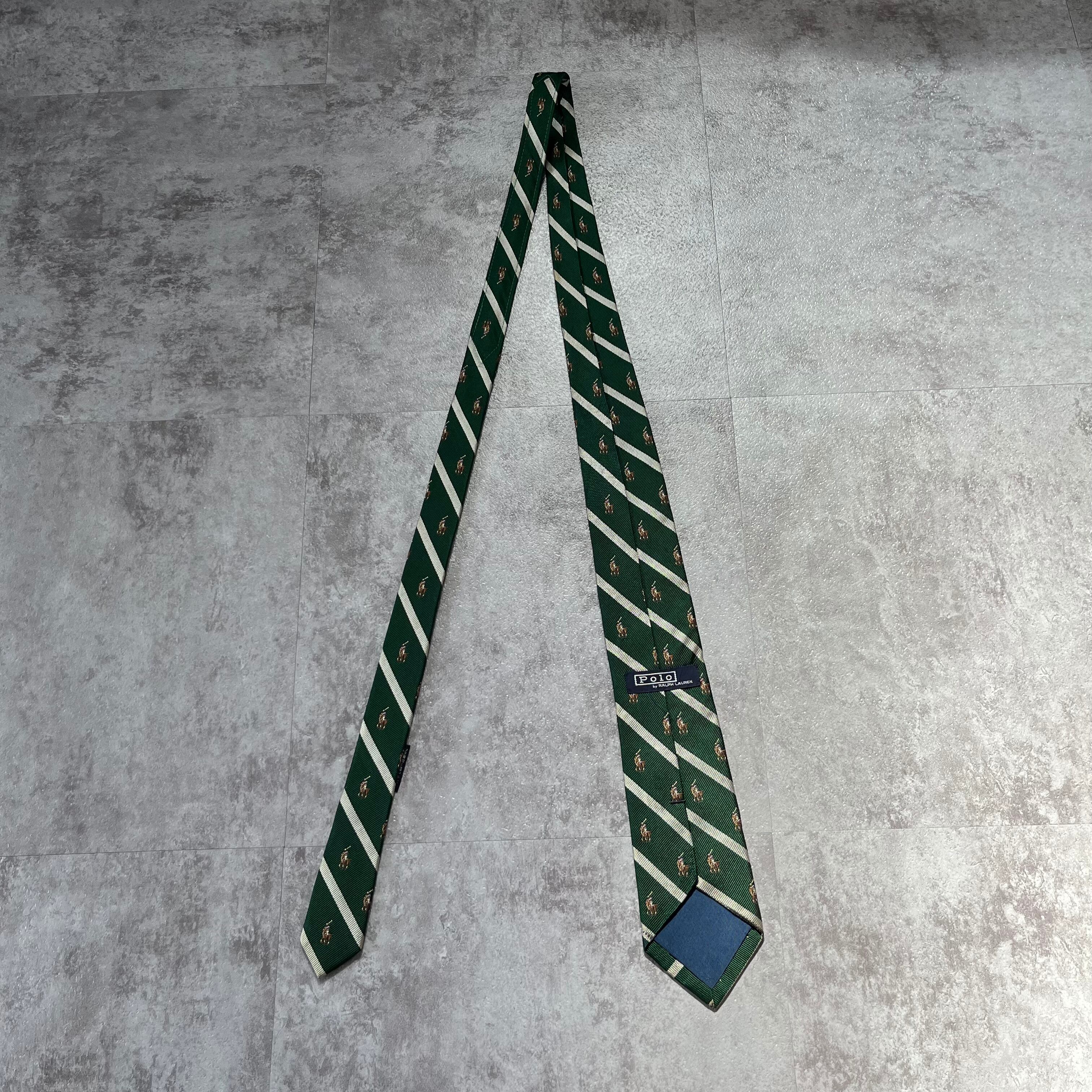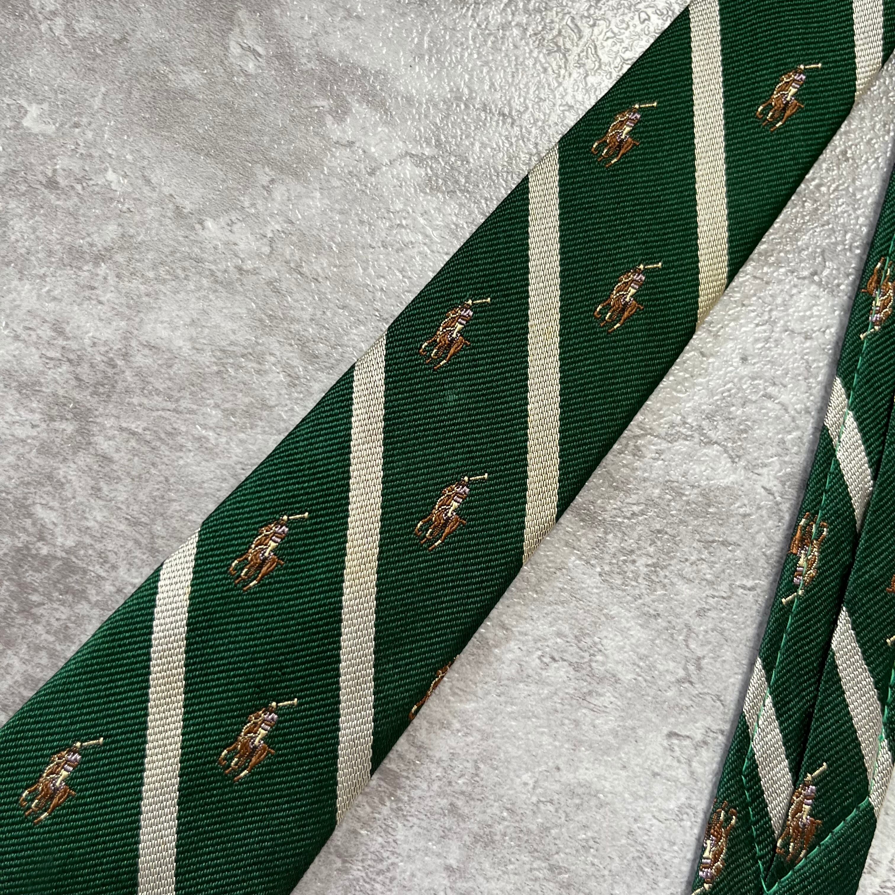 【RALPH LAUREN】ホースロゴ クレスト柄ネクタイ ストライプ グリーン