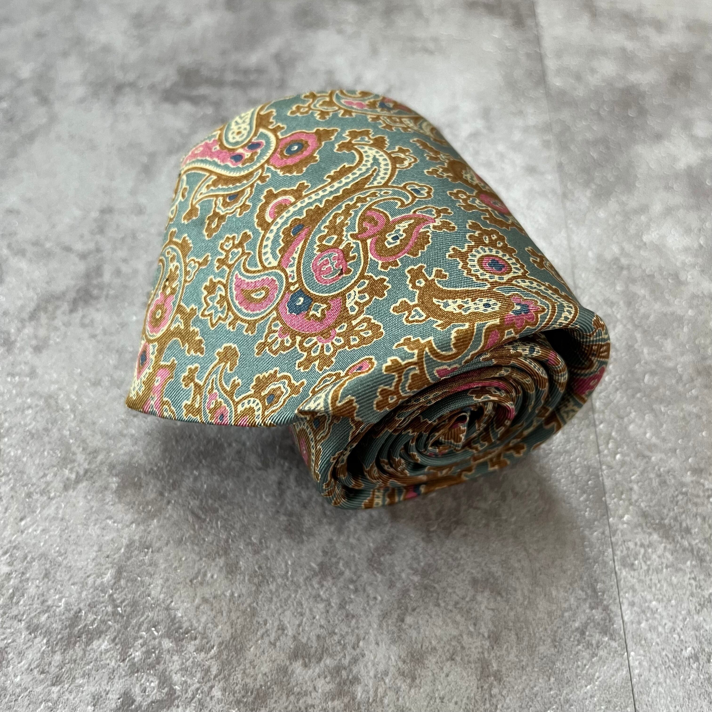【GUCCI】ペイズリー柄ネクタイ グリーン×レッド オールドグッチ