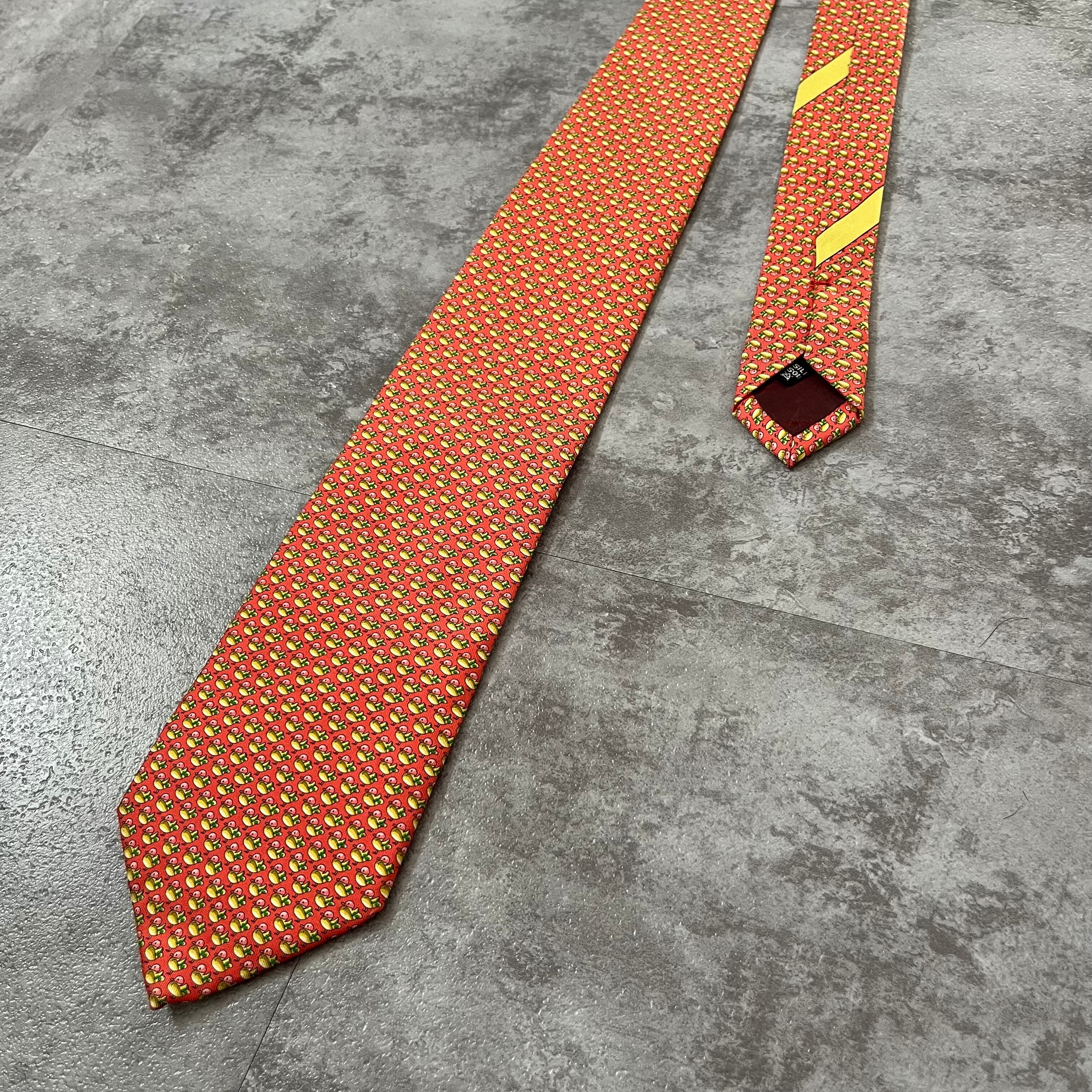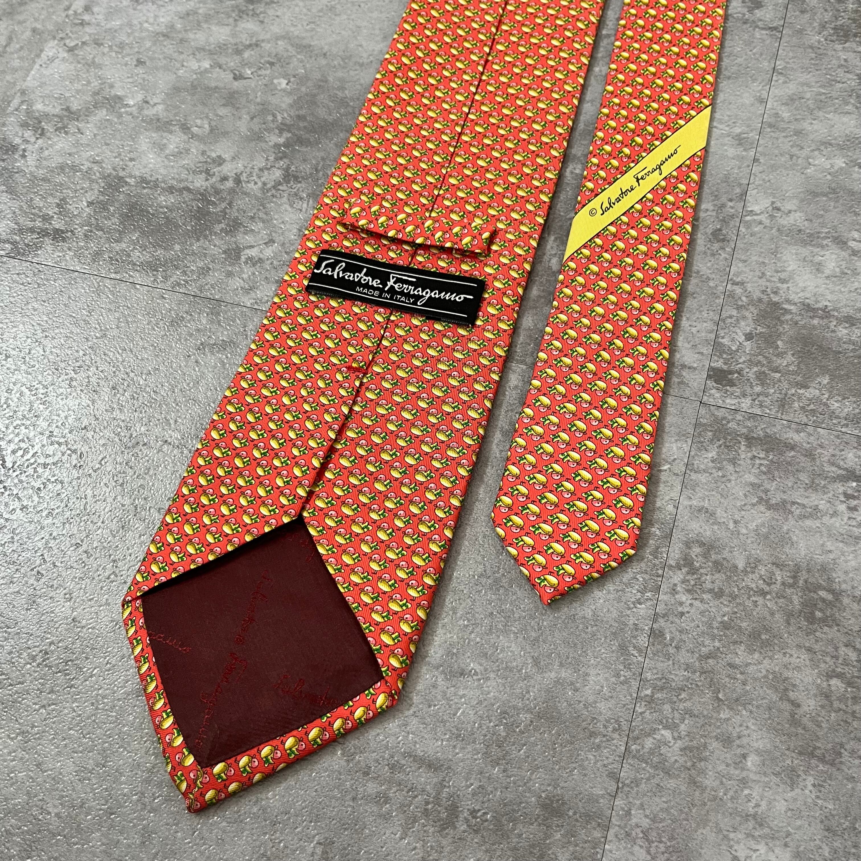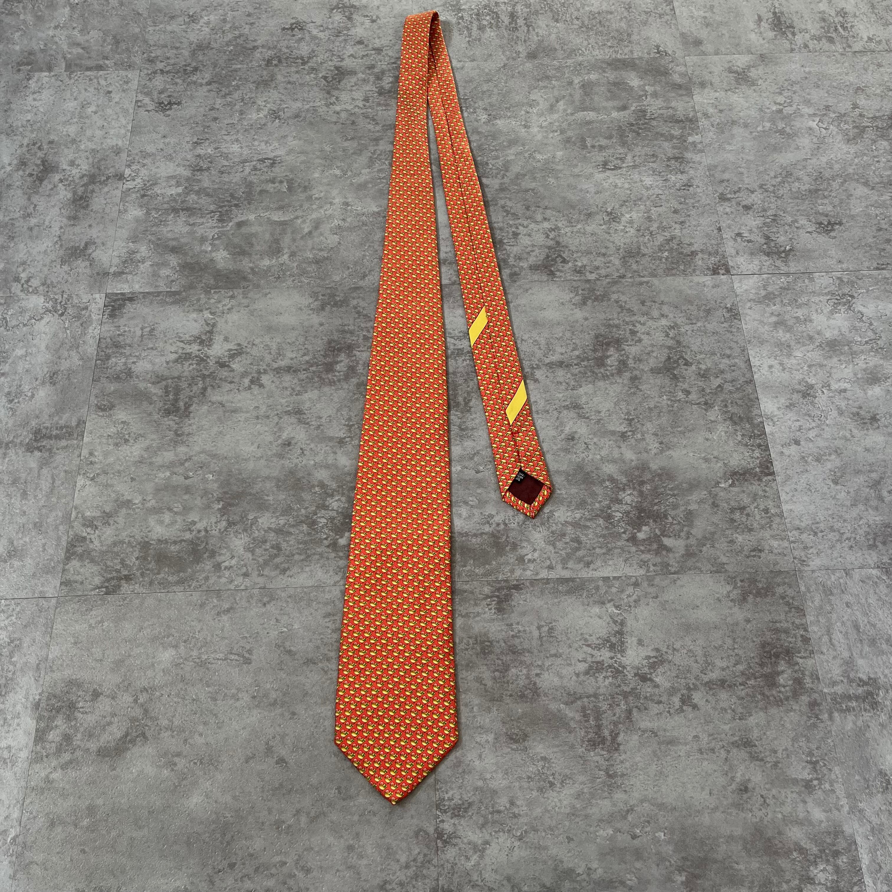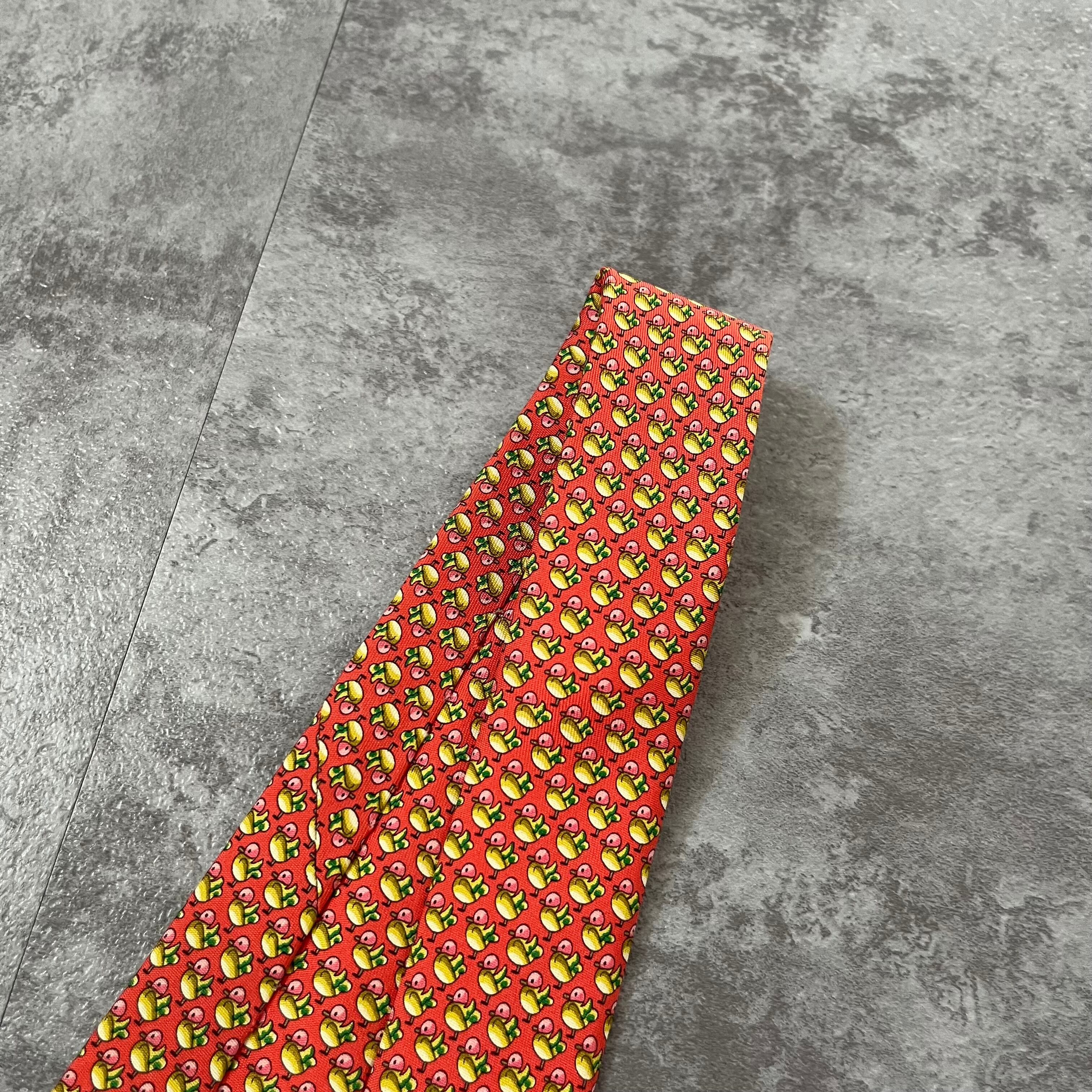 【Salvatore Ferragamo】小鳥柄ネクタイ アニマル柄 ひよこ オレンジ