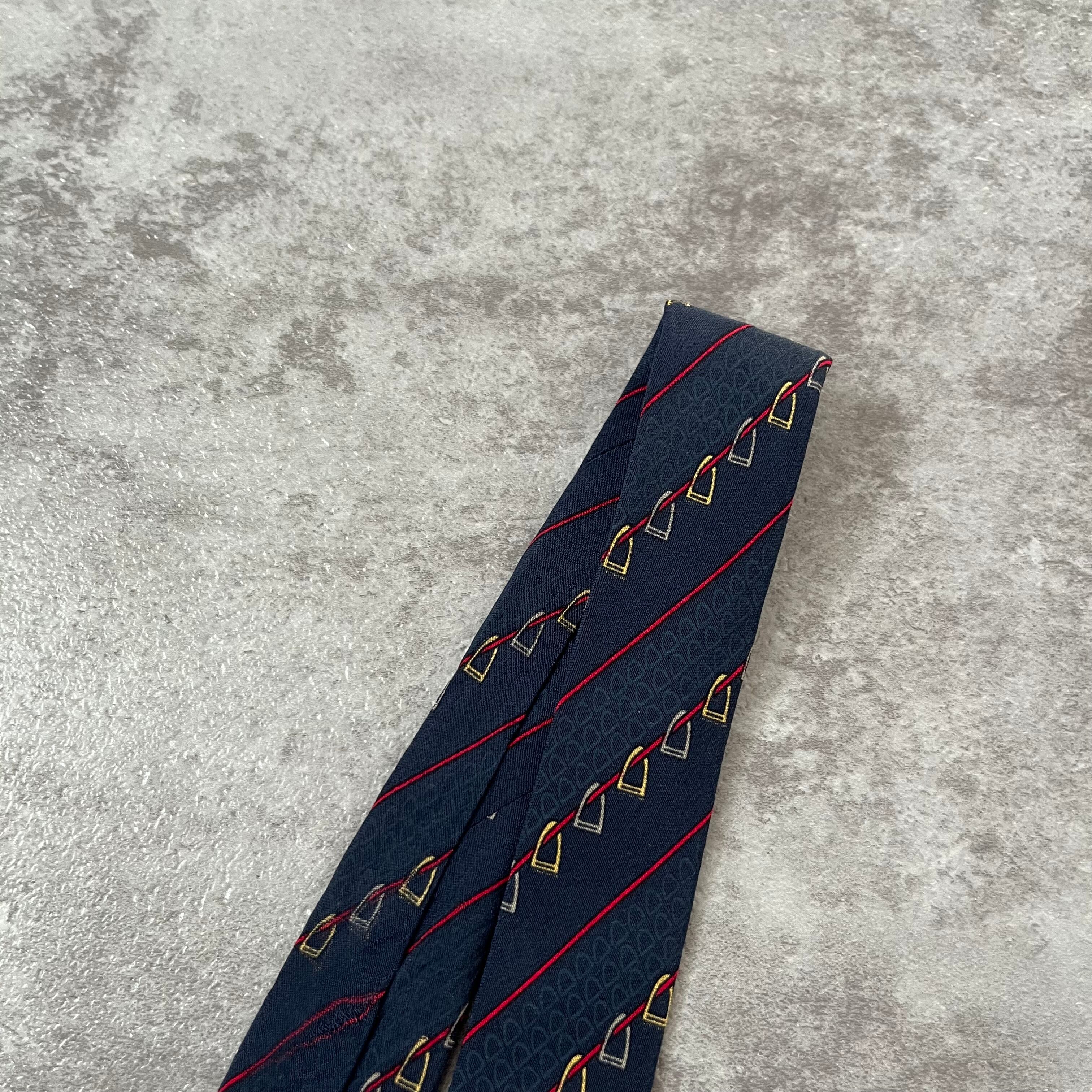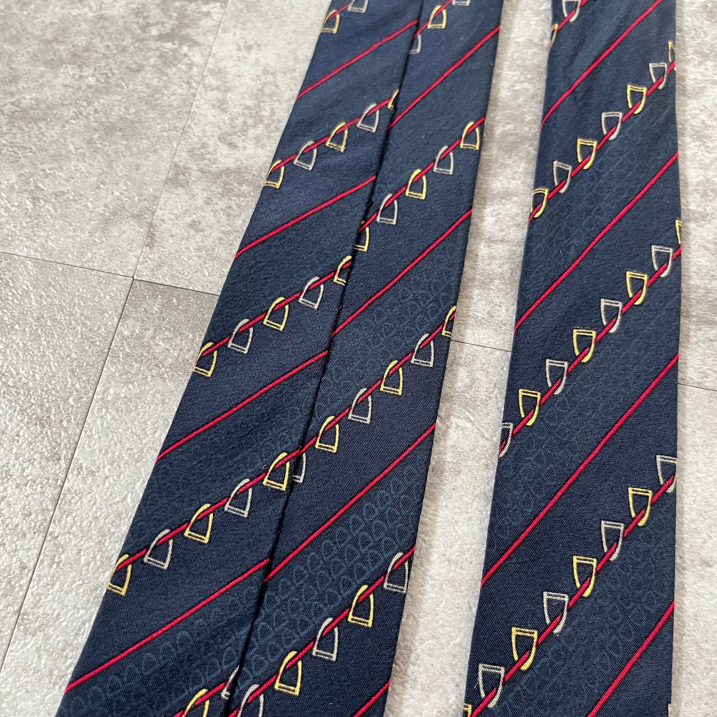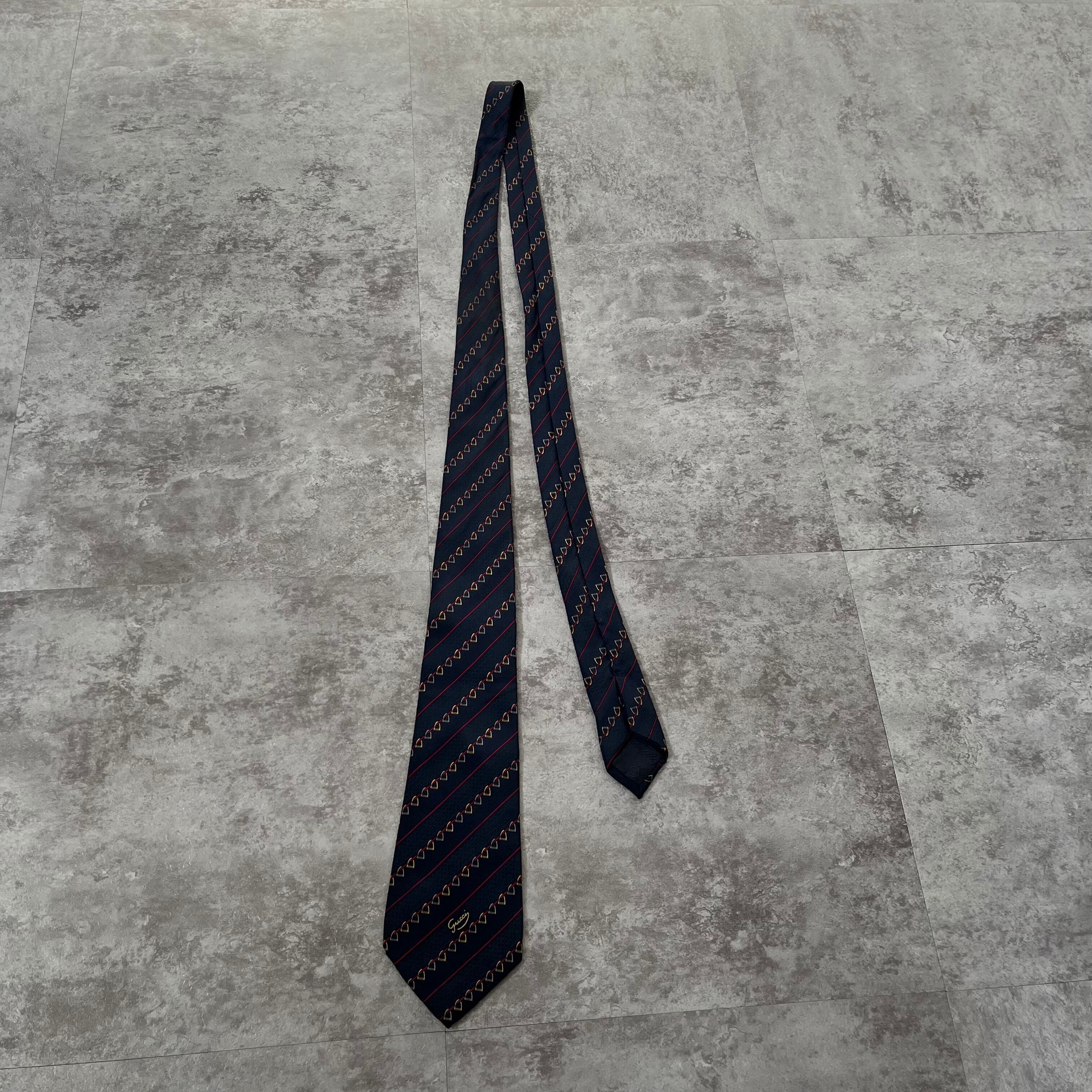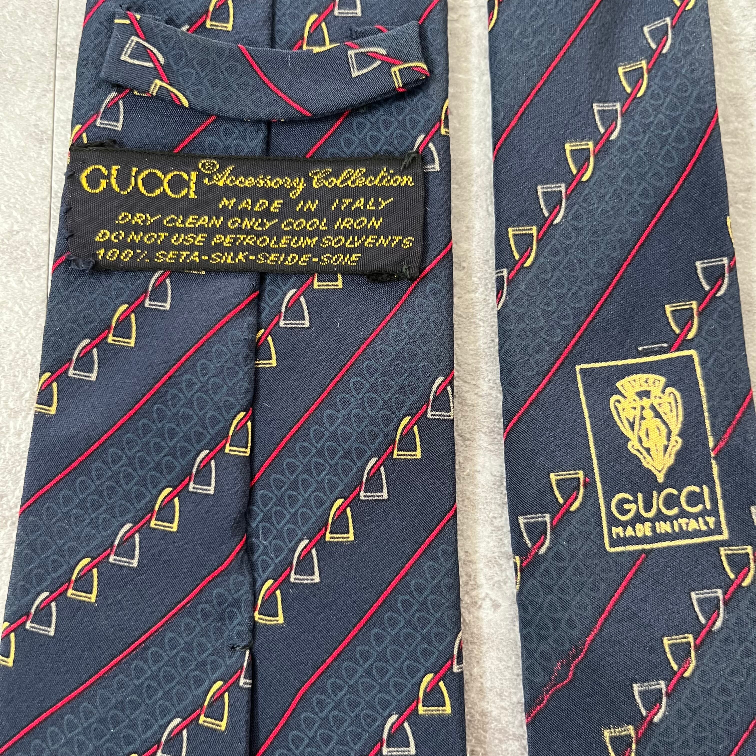 【GUCCI】ストライプネクタイ オールドグッチ ネイビー ロゴ入り