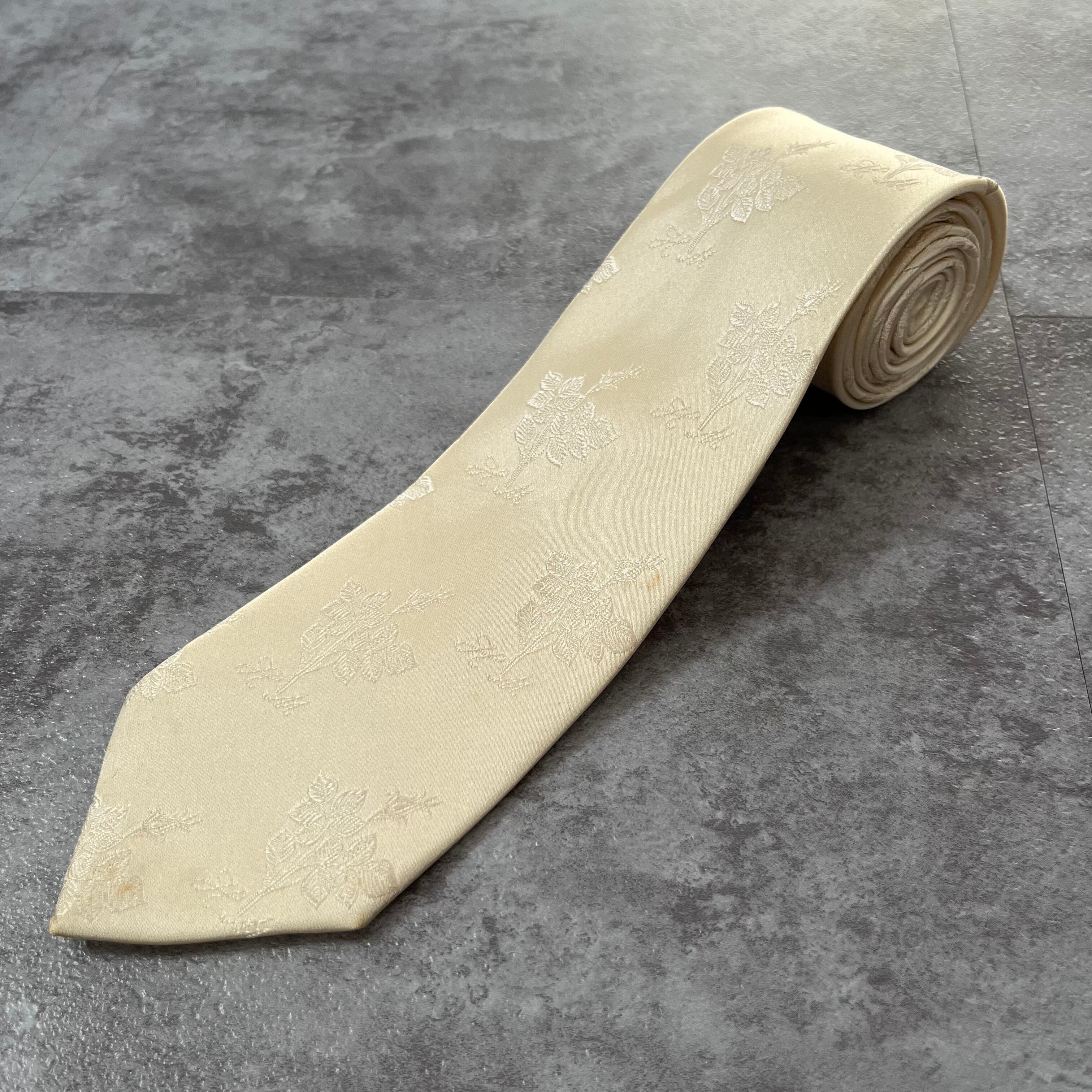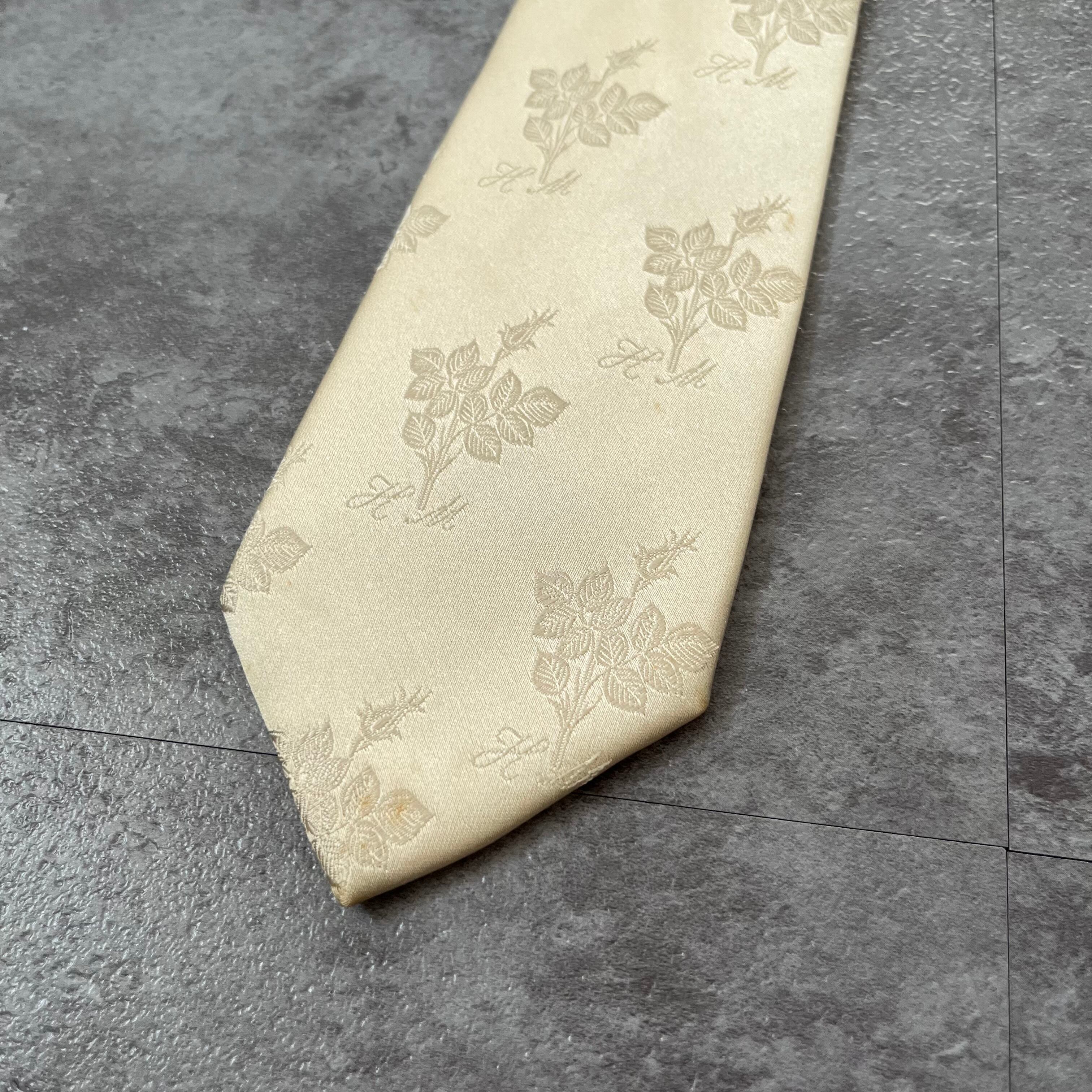 【HANAE MORI】花柄ホワイトシルクネクタイ お祝い事にどうぞ