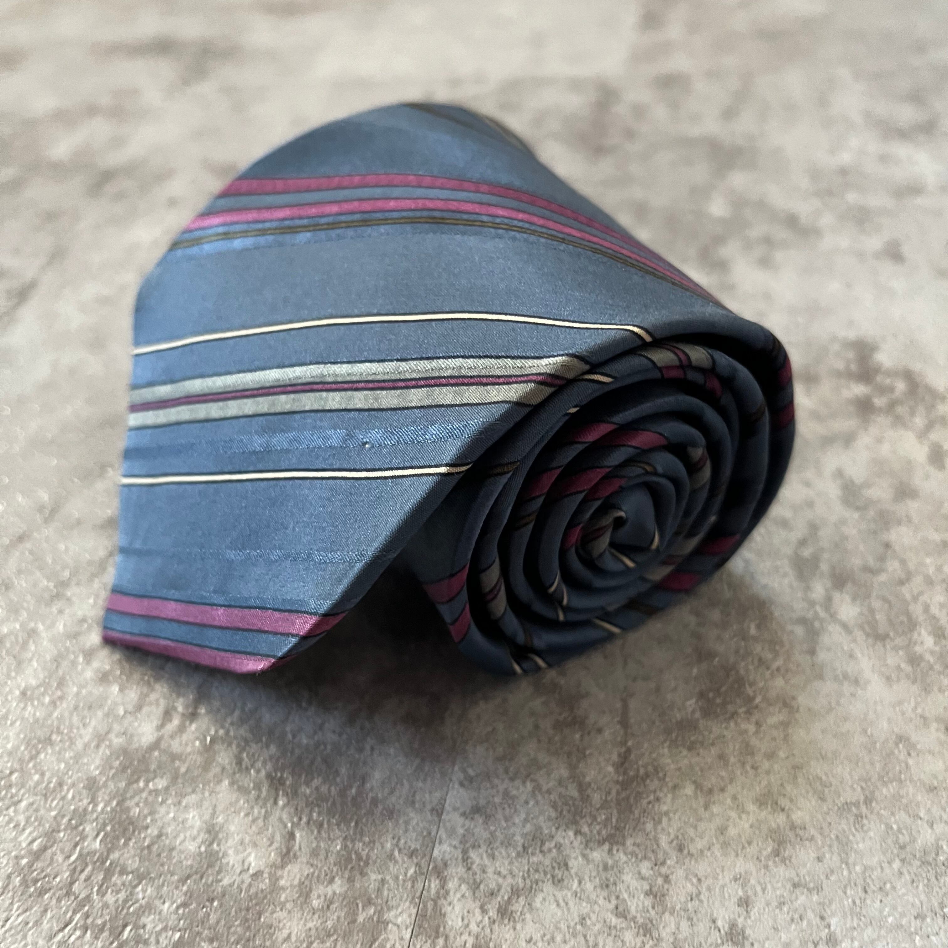 【Yves Saint Laurent】レジメンタルストライプ 光沢ブルー