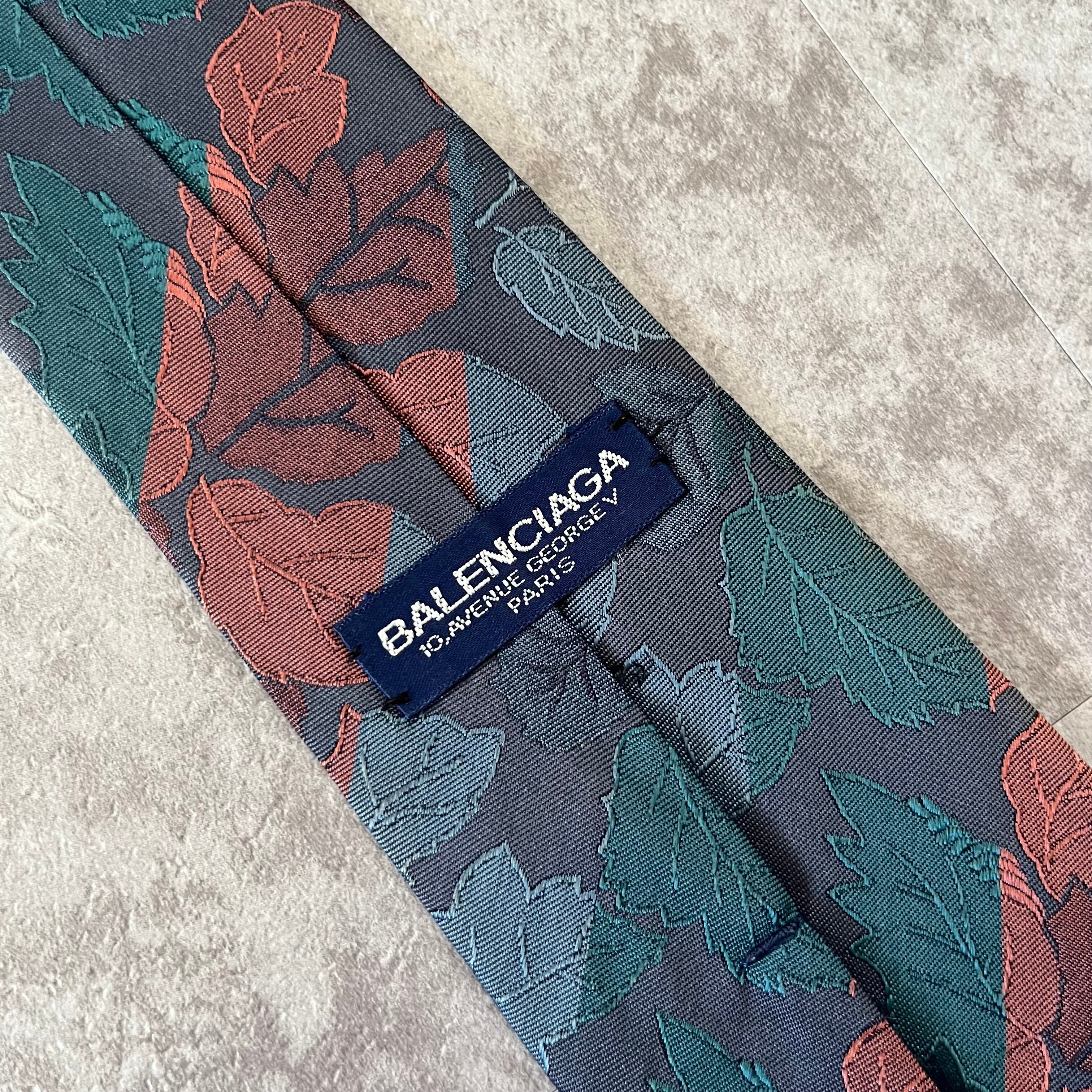 【BALENCIAGA】花柄×ストライプ 光沢ネクタイ マルチカラー