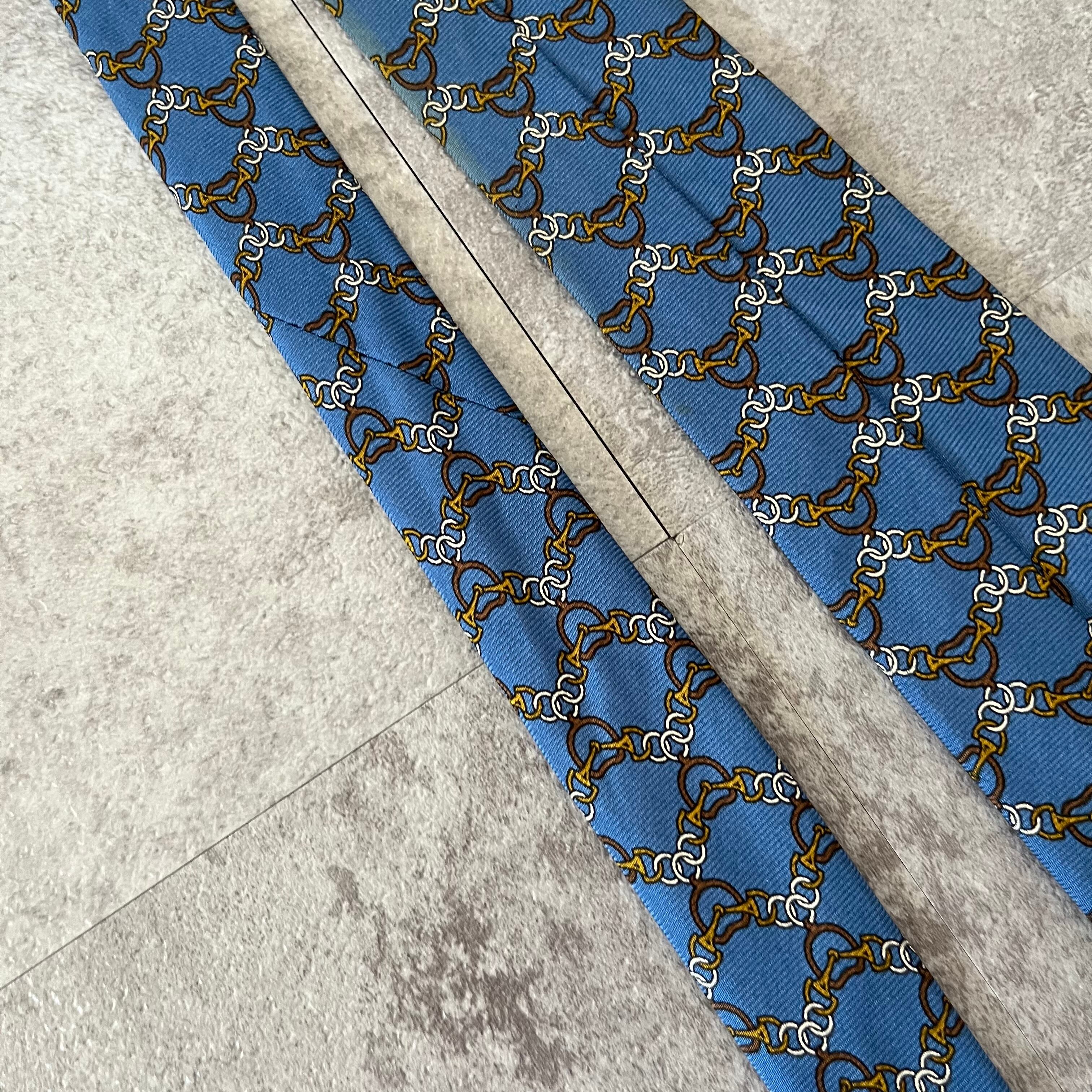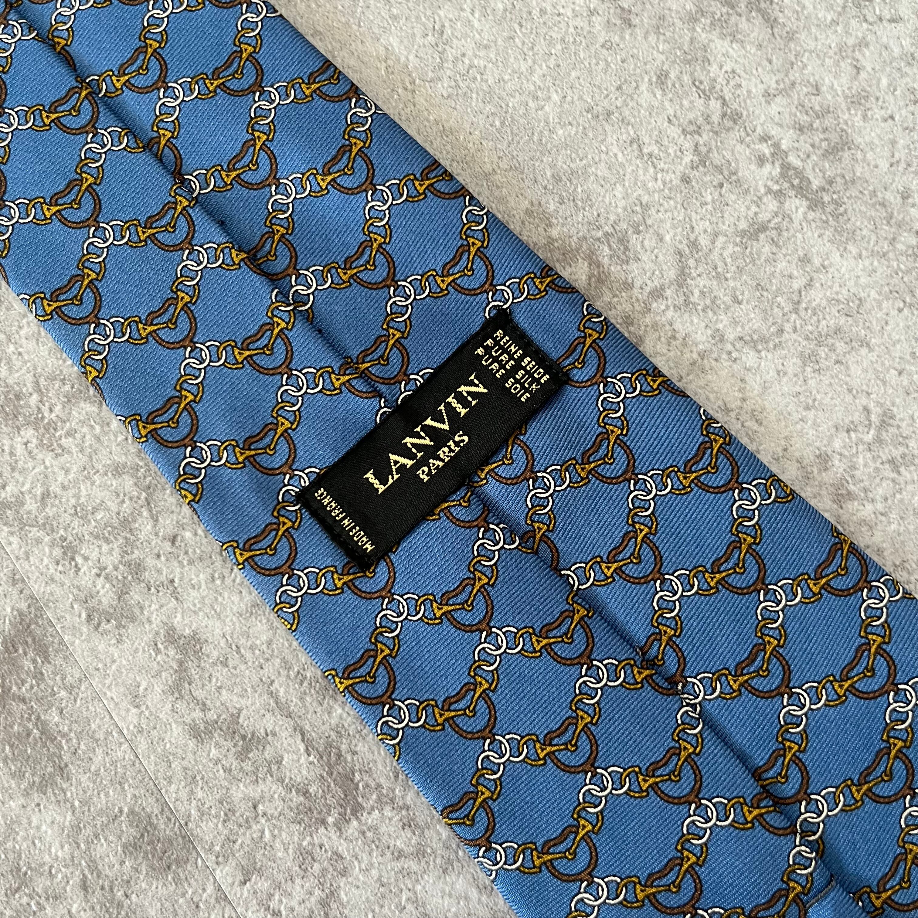 【LANVIN】幾何学チェーンモチーフネクタイ ブルー