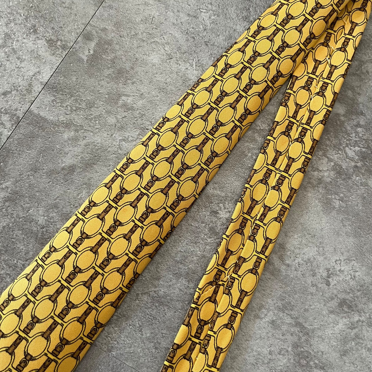 【HERMES】ベルトチェーン柄ネクタイ イエロー