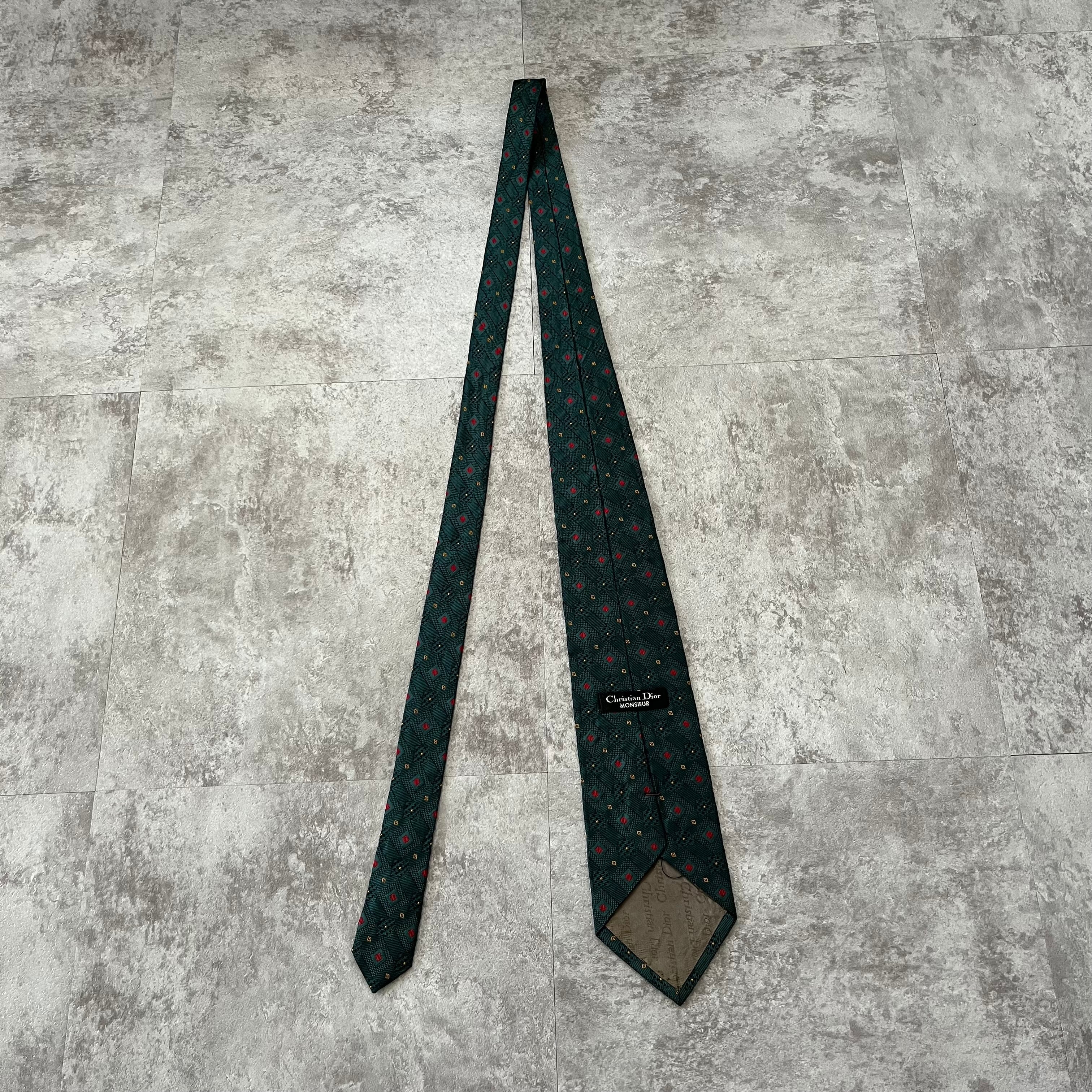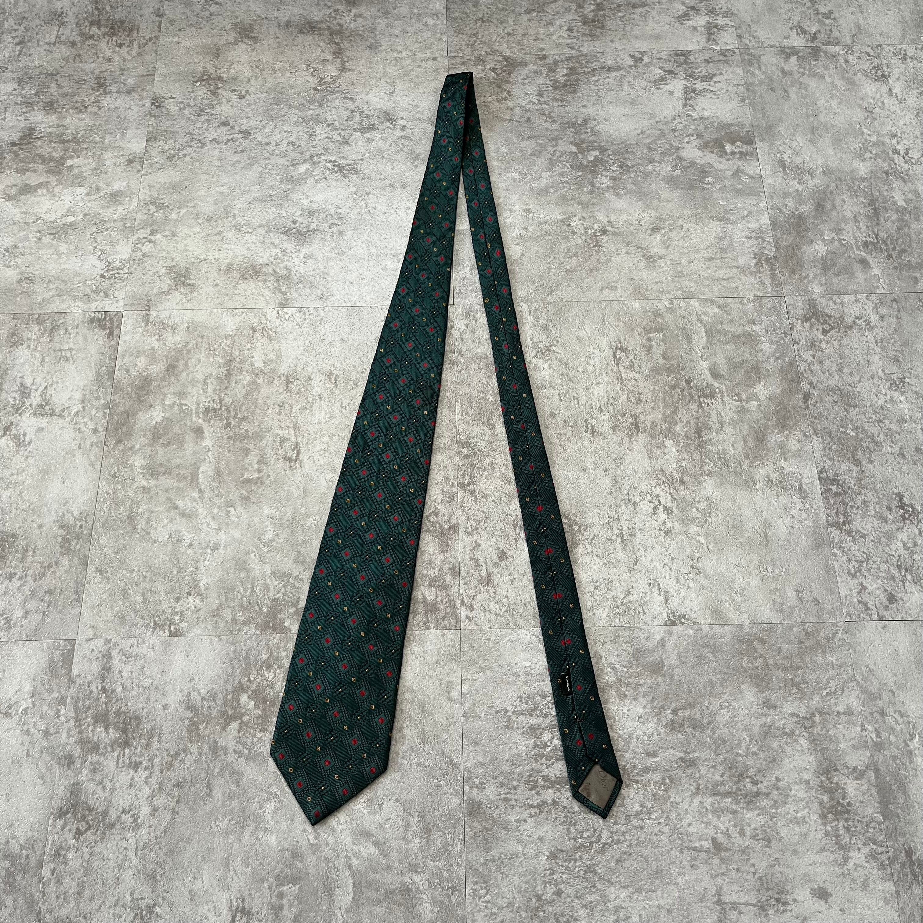 【Christian Dior】チェック柄ネクタイ グリーン レッド