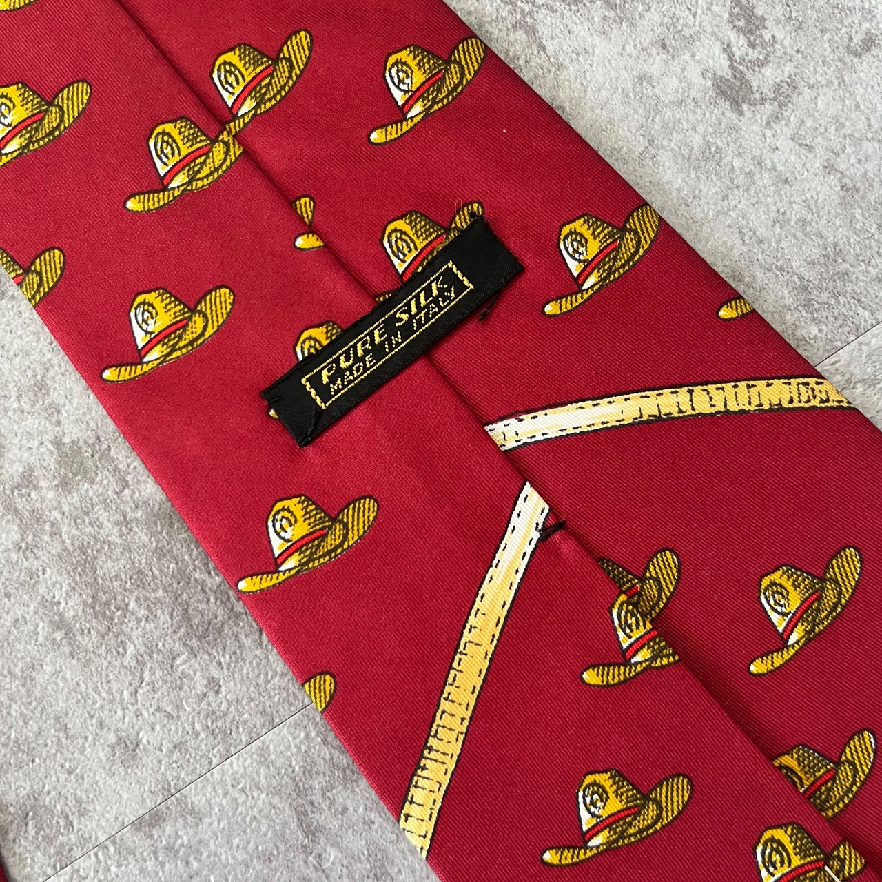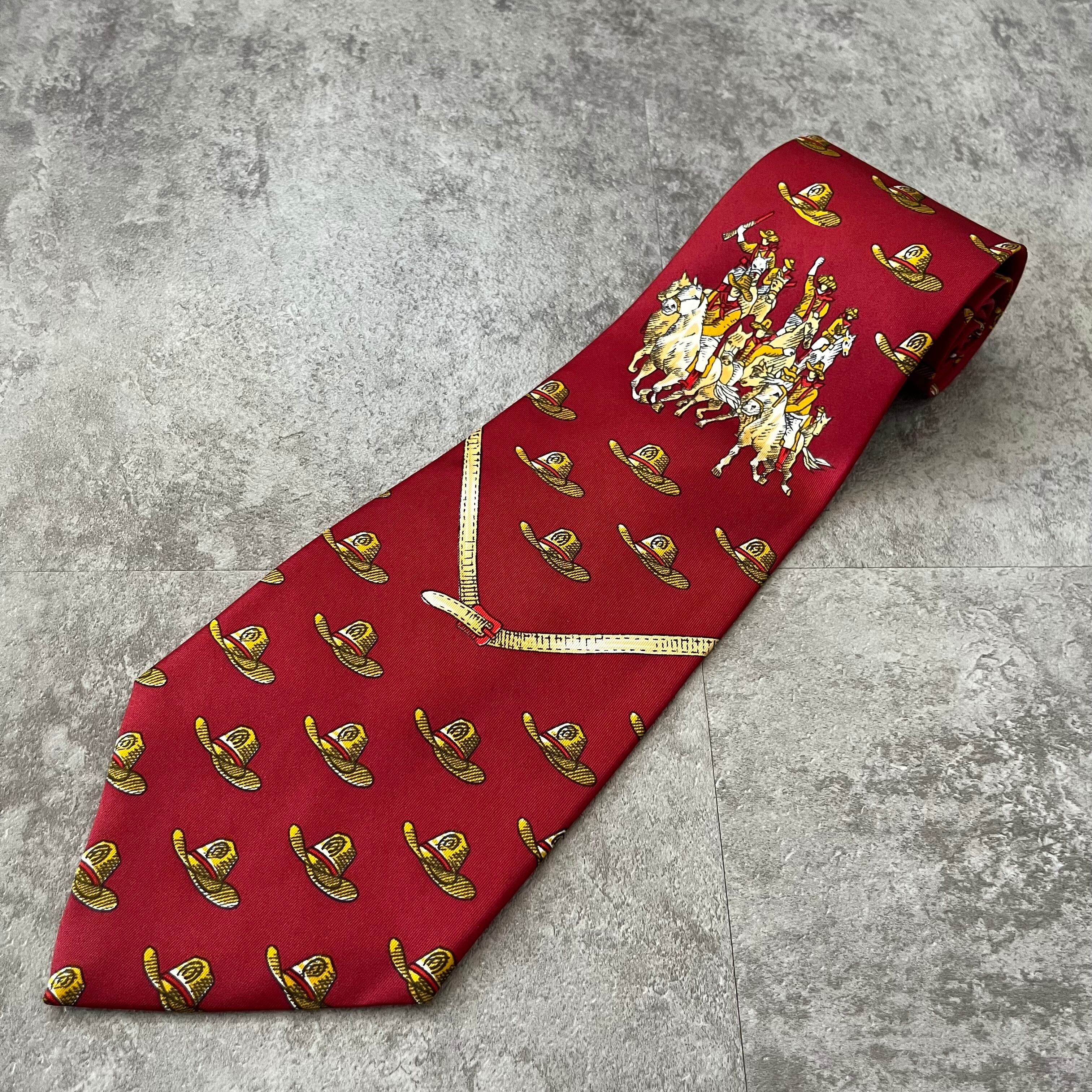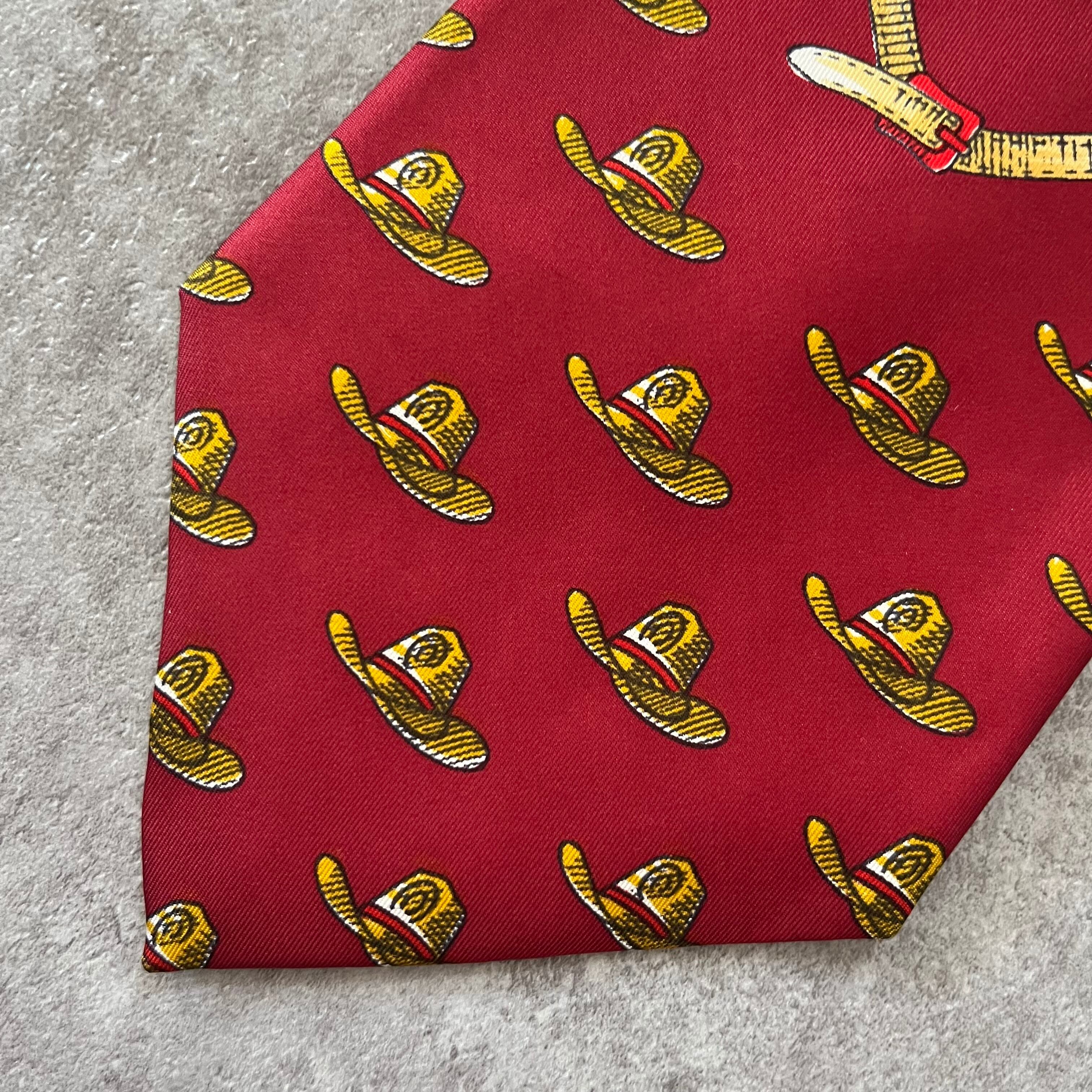【帽子柄】カウボーイ柄ネクタイ 馬と帽子とベルト レッド