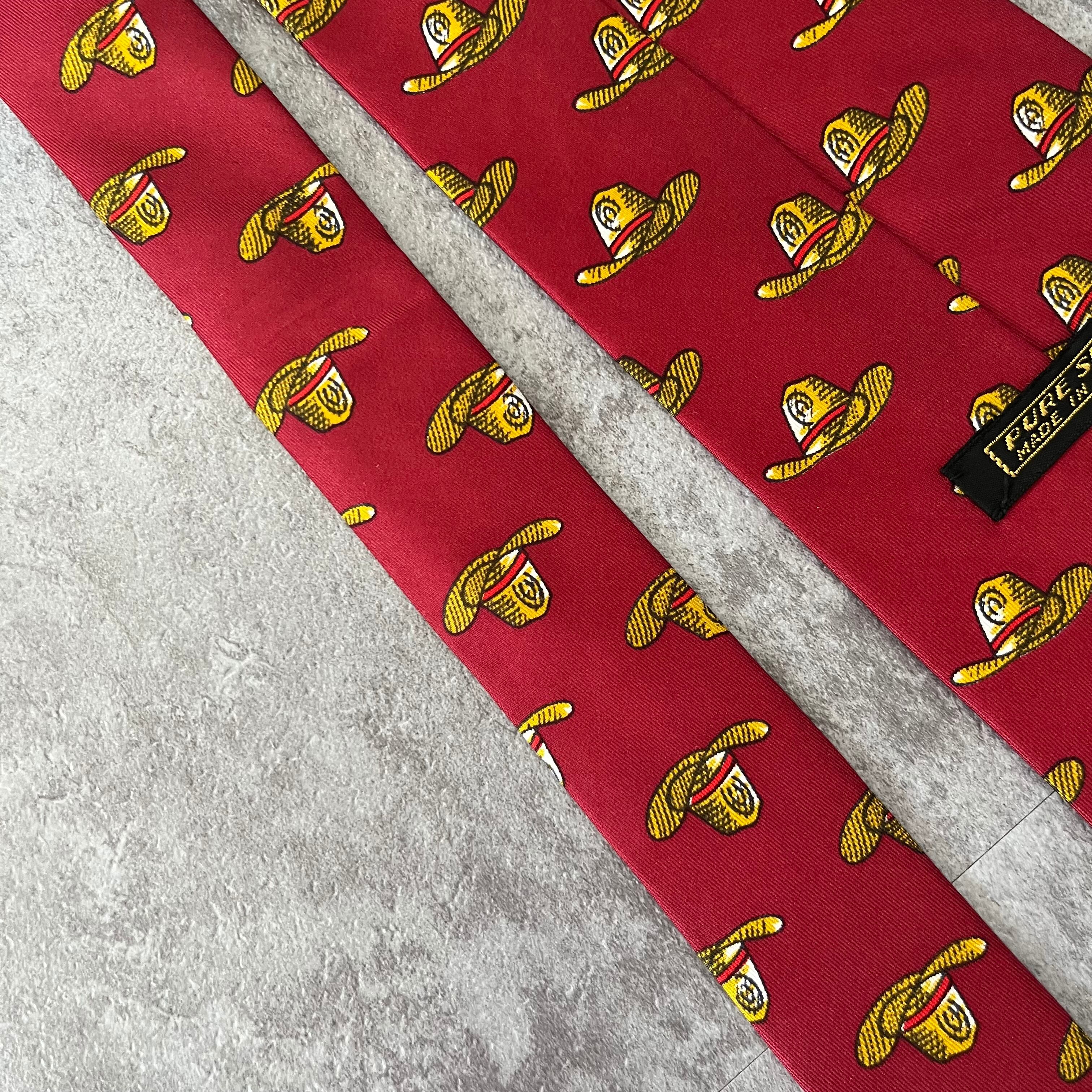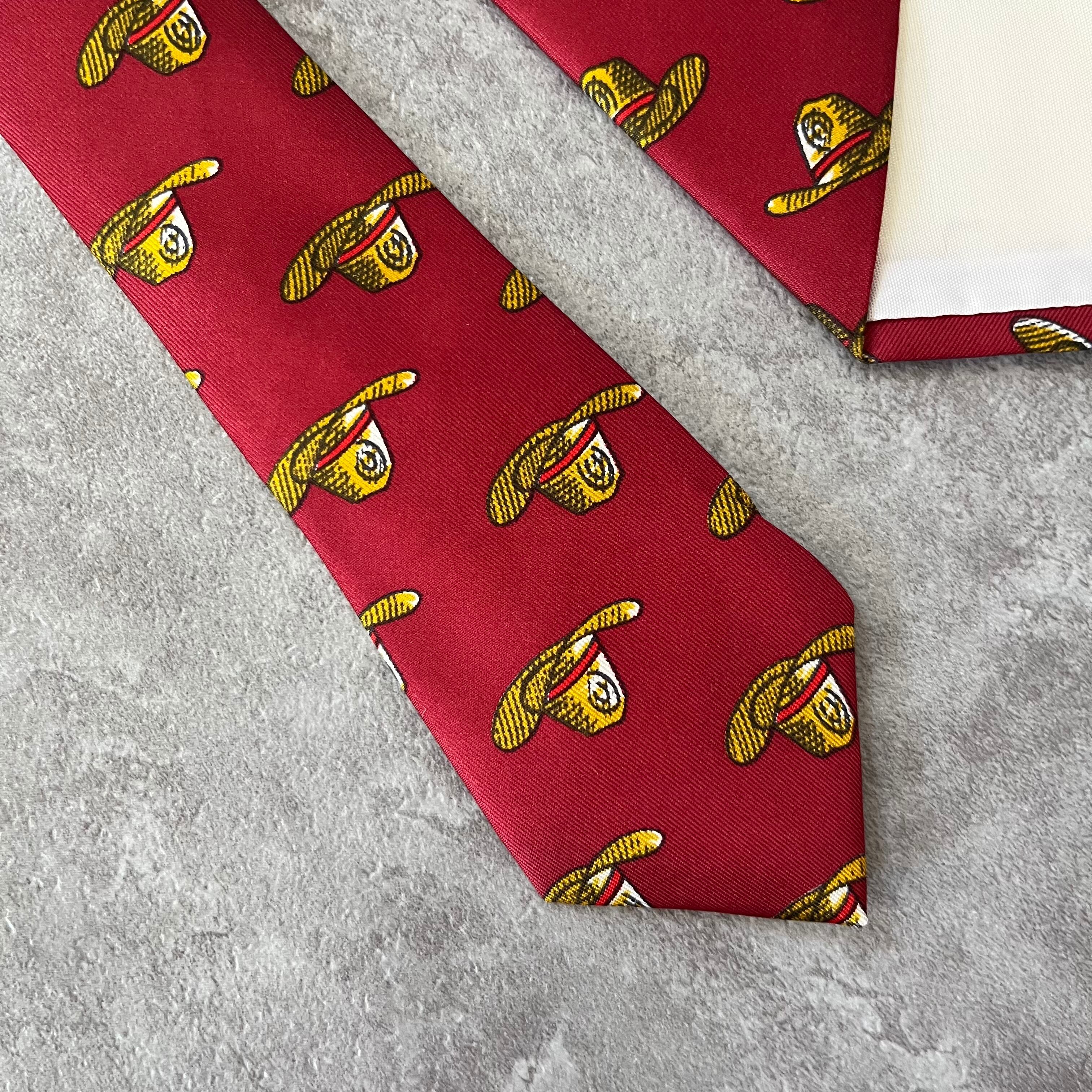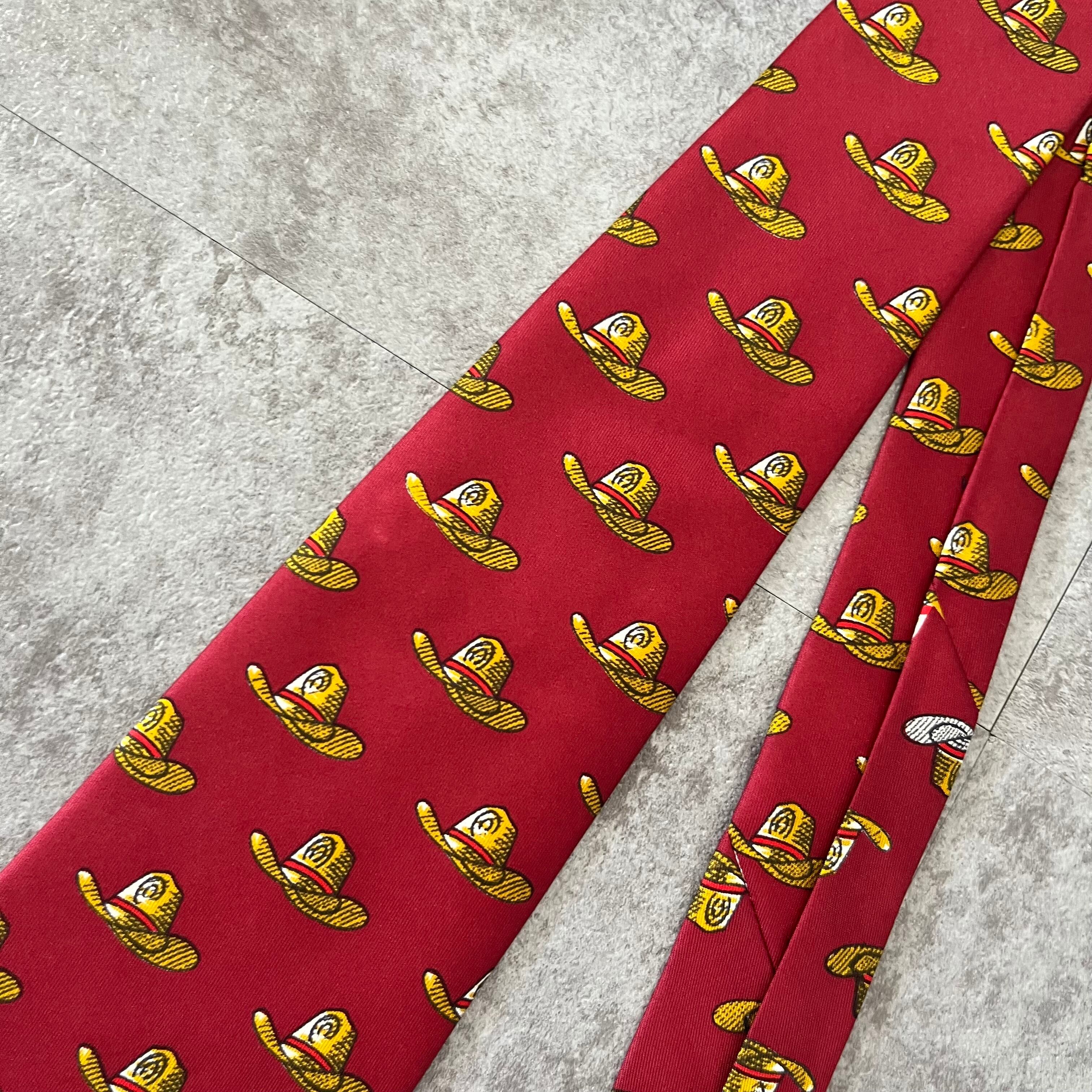 【帽子柄】カウボーイ柄ネクタイ 馬と帽子とベルト レッド