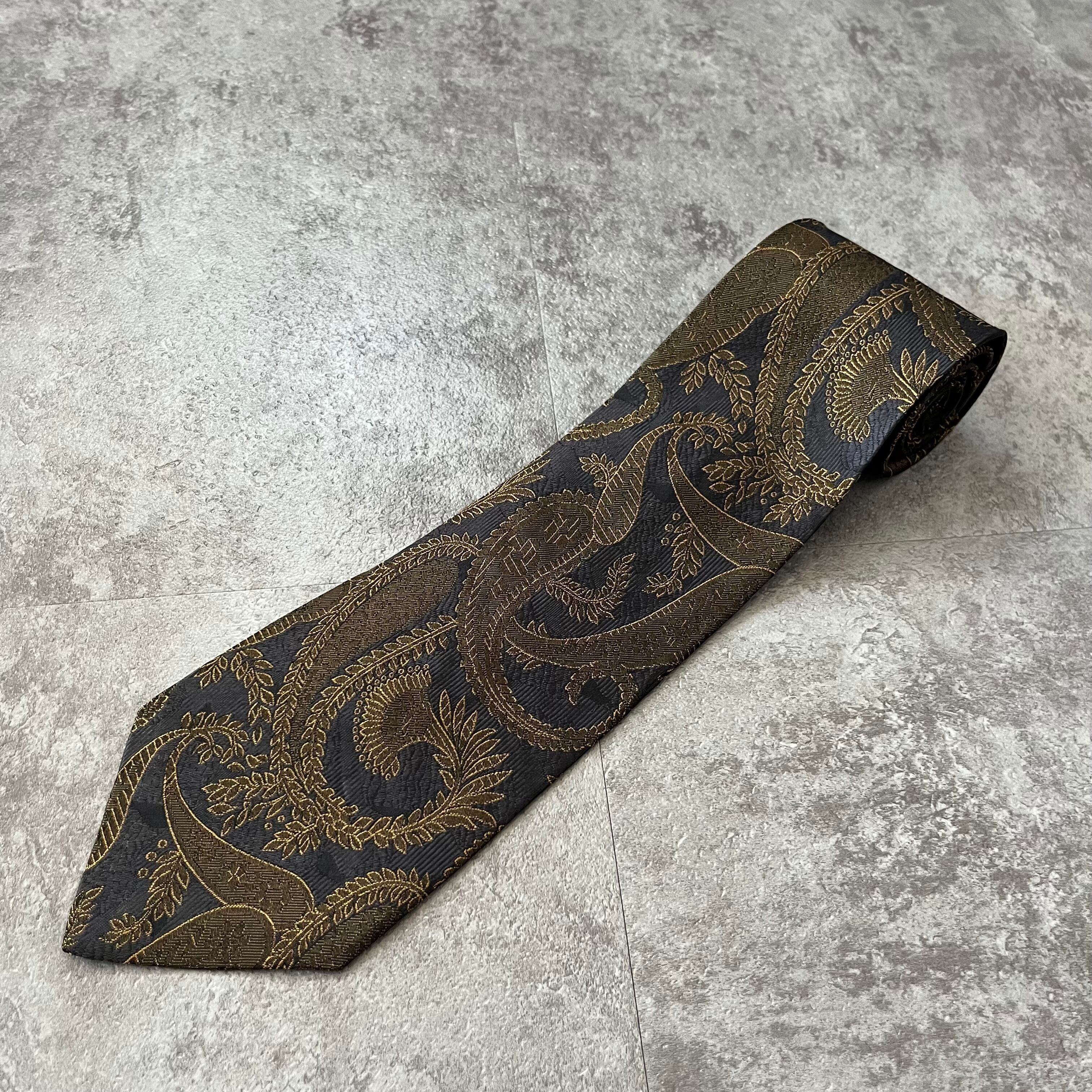 【ペイズリー柄】バイカラーネクタイ ネイビー×ゴールド 光沢