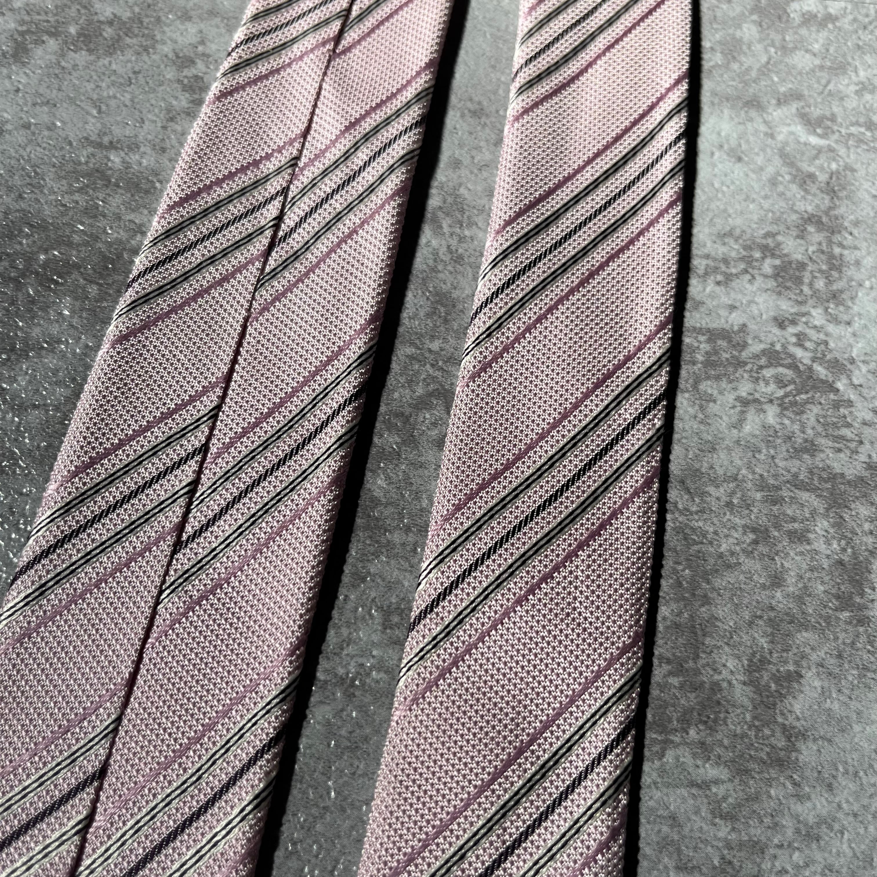【Burberry】レジメンタルストライプネクタイ ロゴ入り 細め ピンク