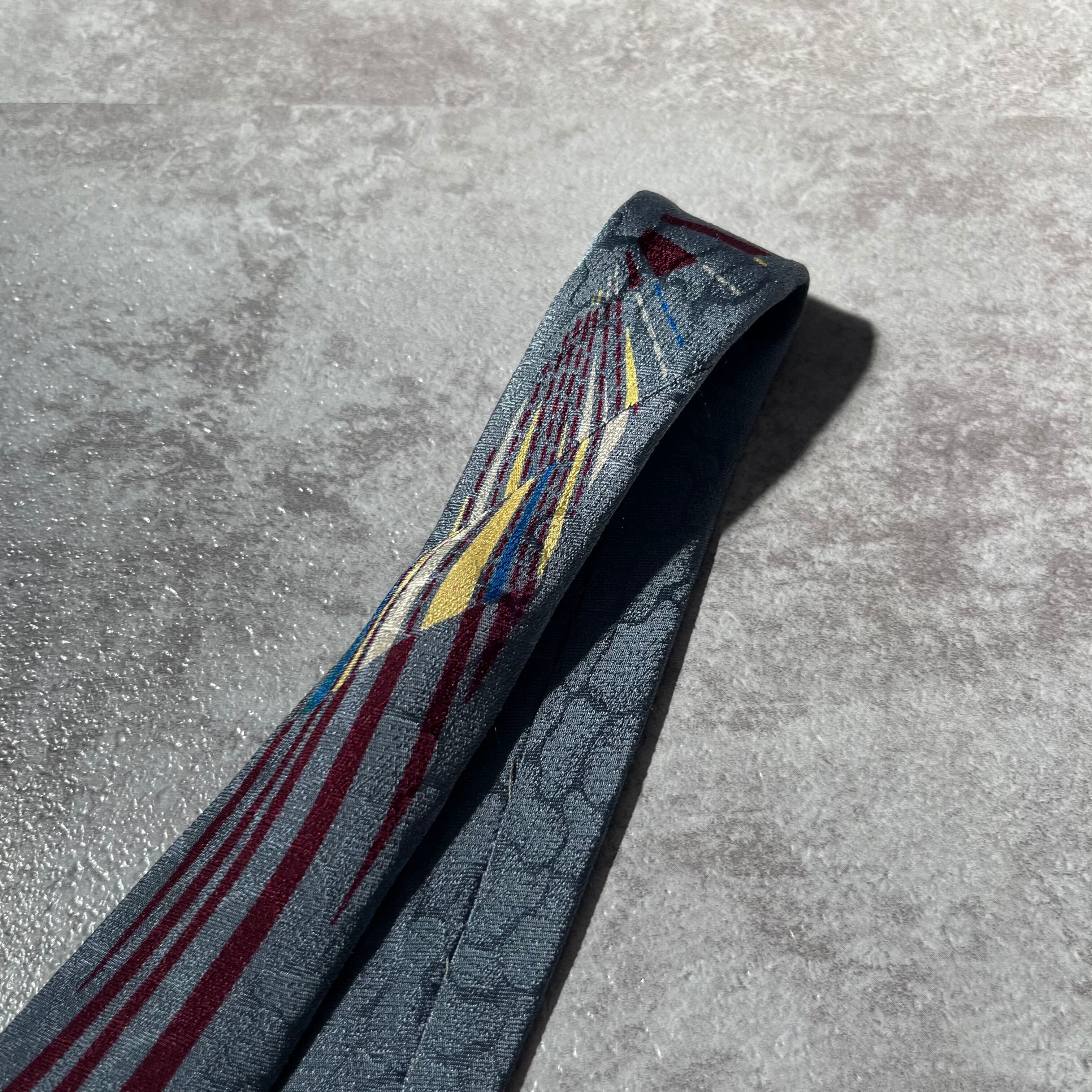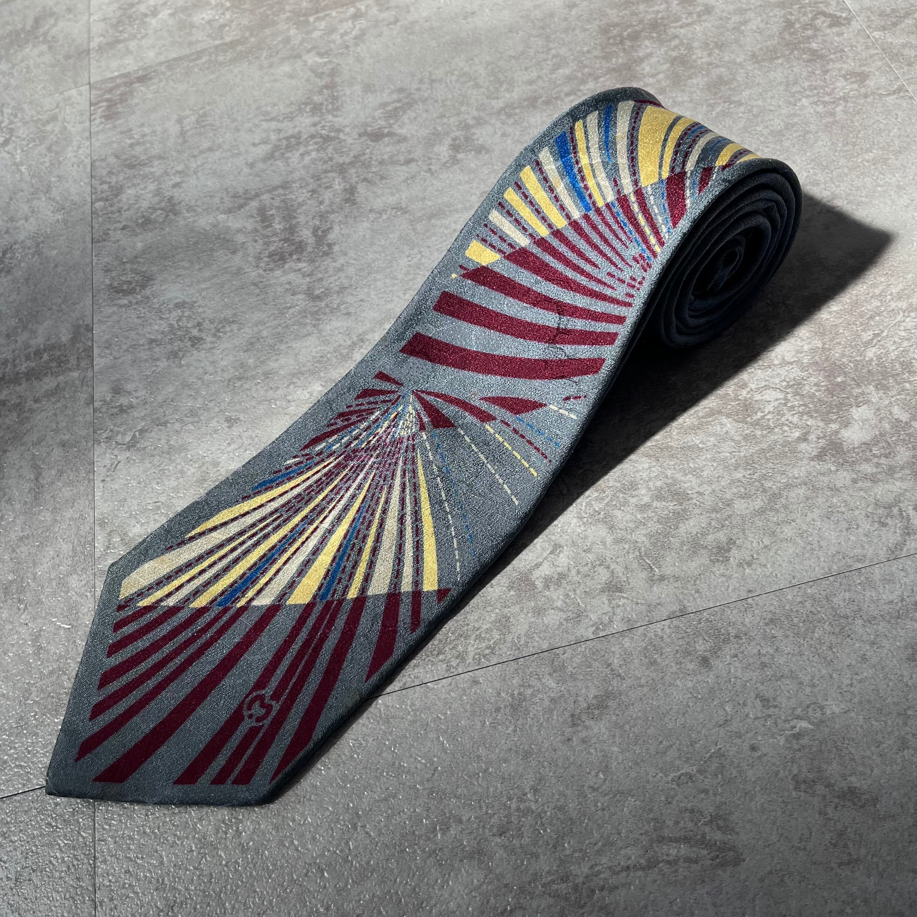 【Mila Schon】ストライプ×放射ラインデザイン シャドウドットネクタイ グレー ワインレッド イエロー