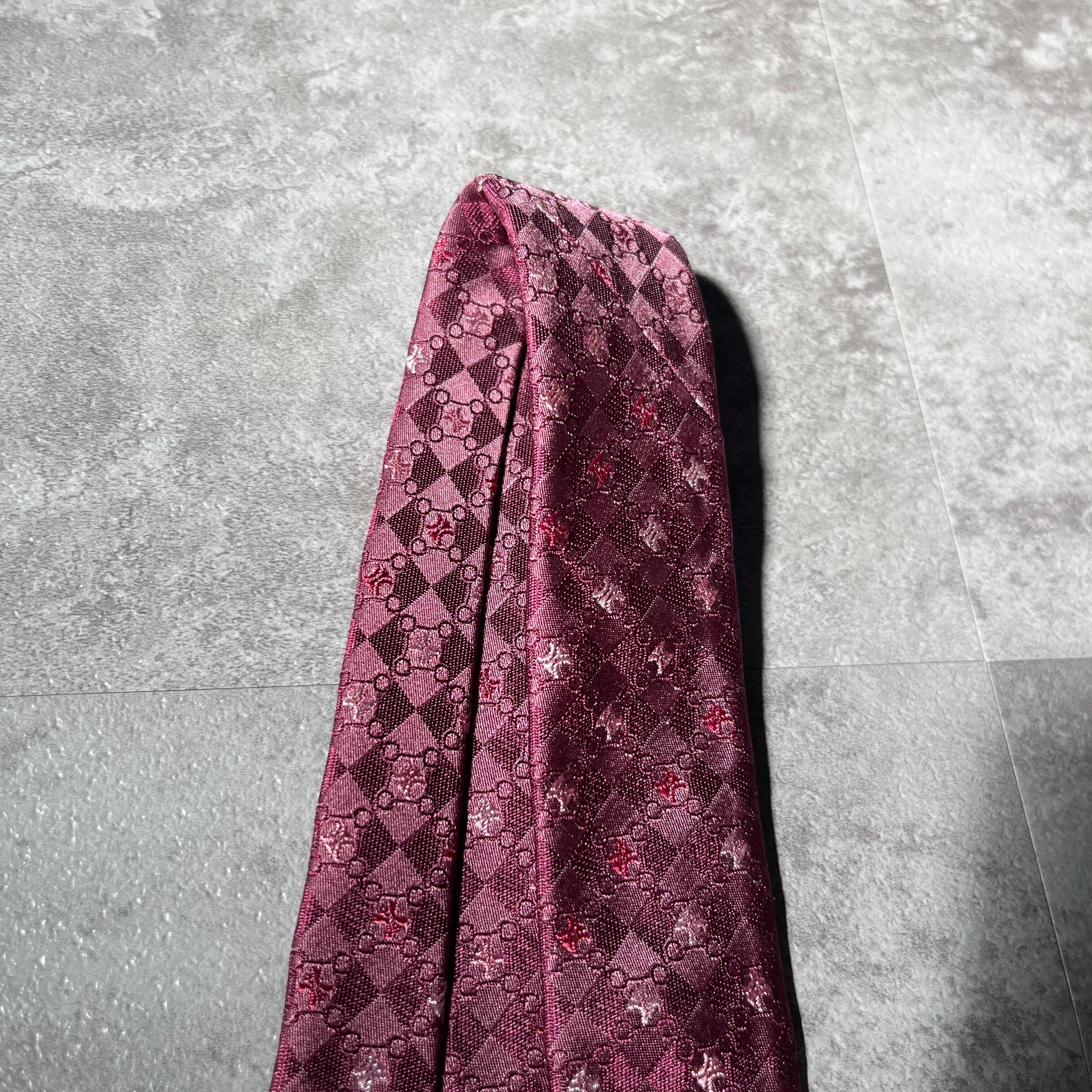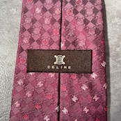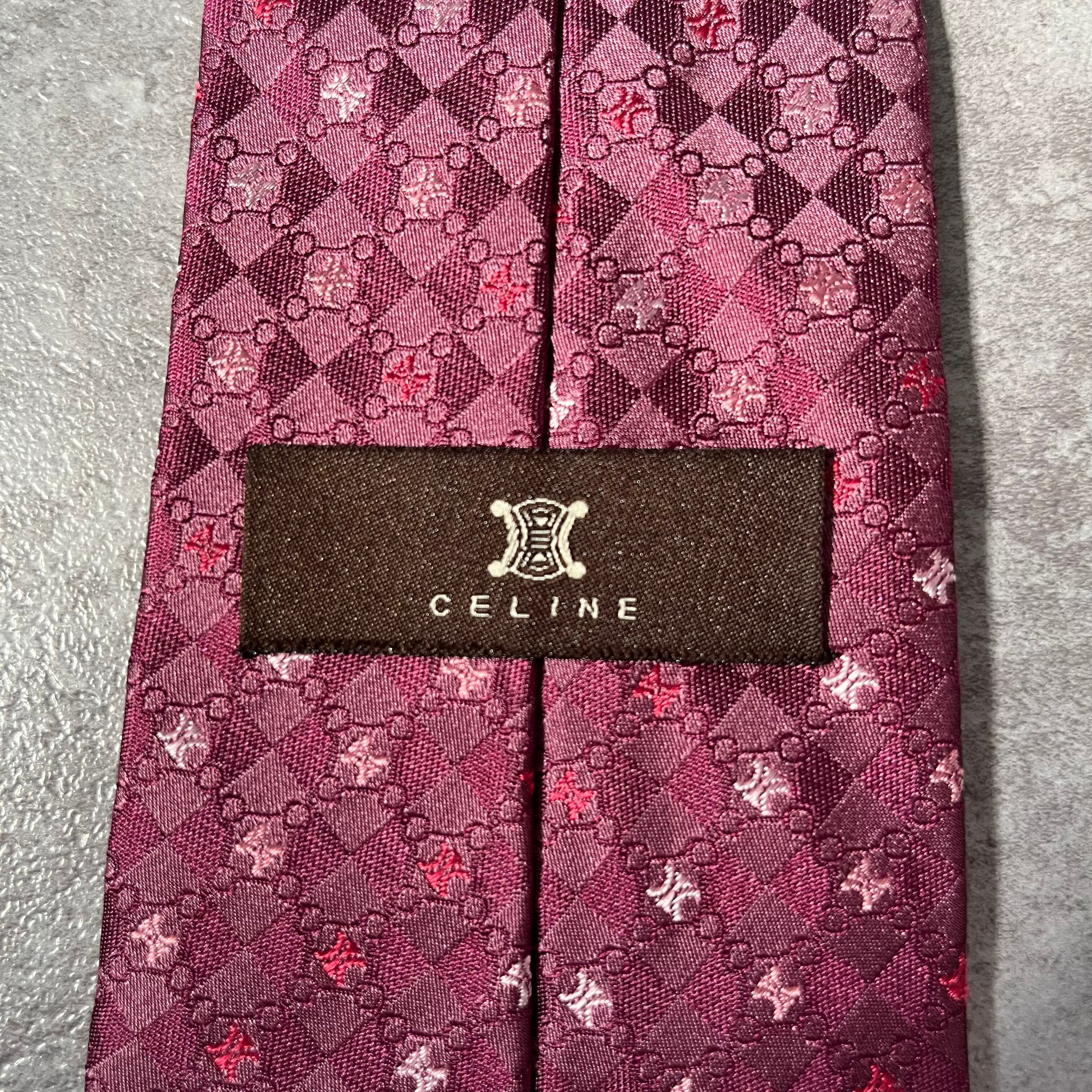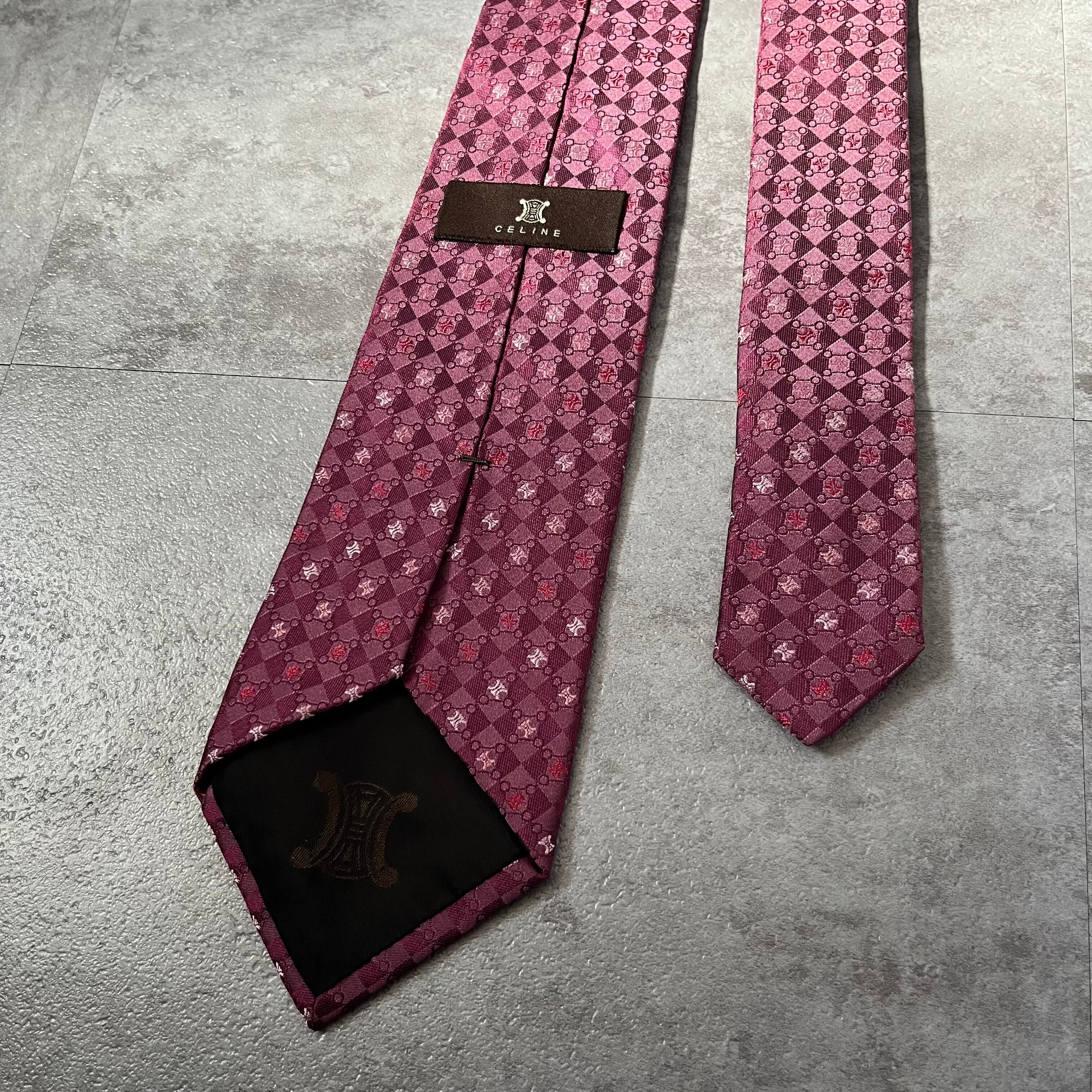 【CELINE】総ロゴデザインネクタイ ピンク トリオンフロゴ ストライプ シャドウブロックチェック マカダム