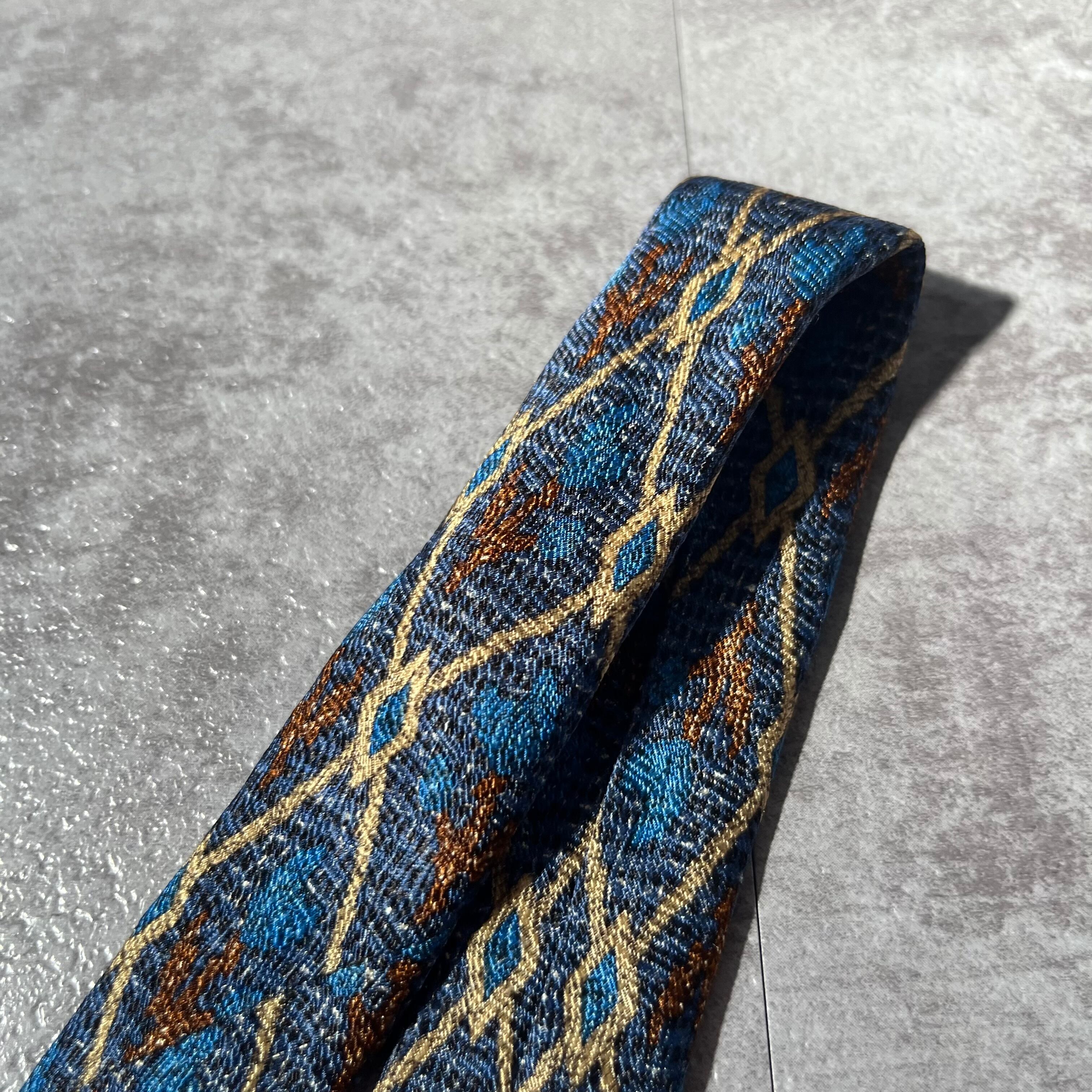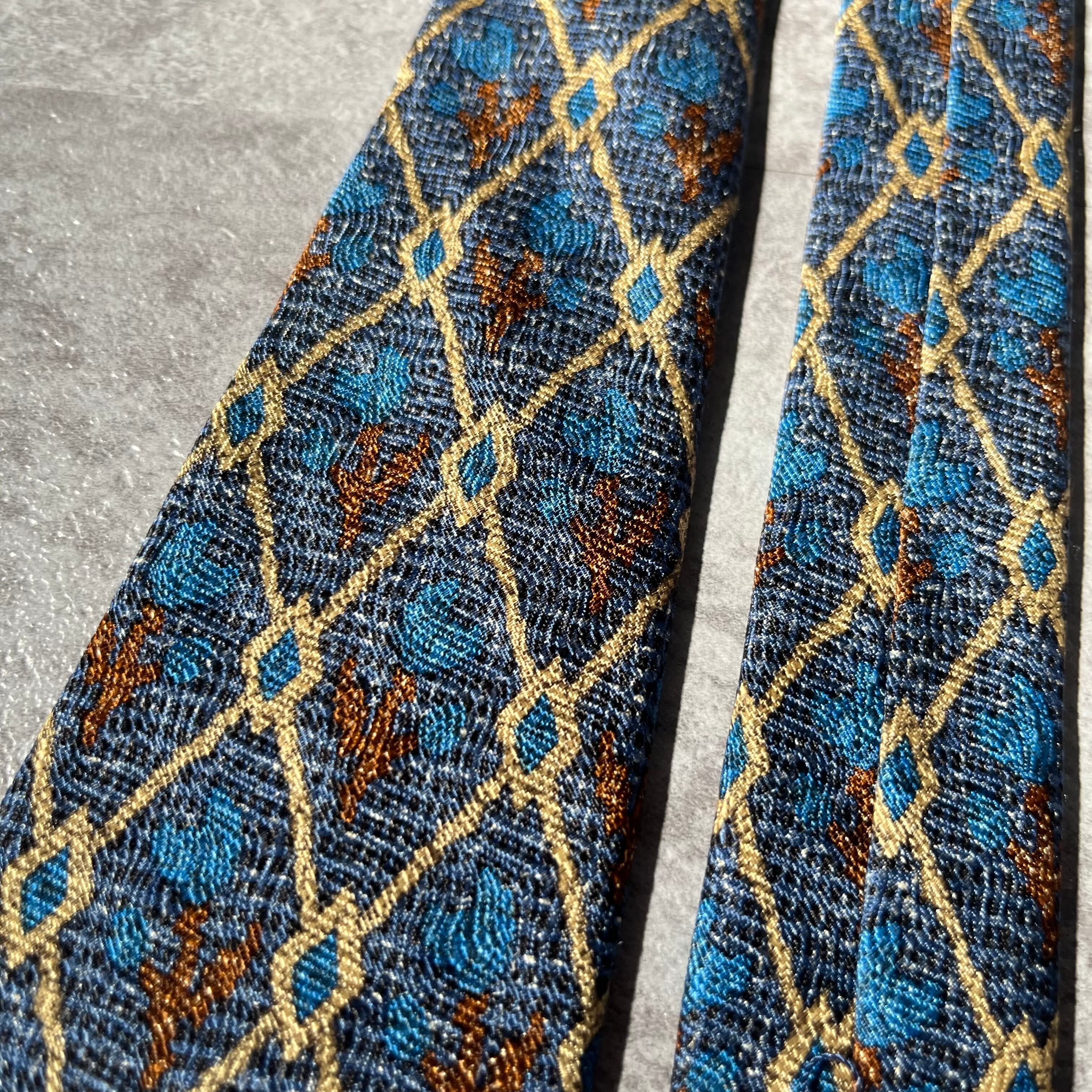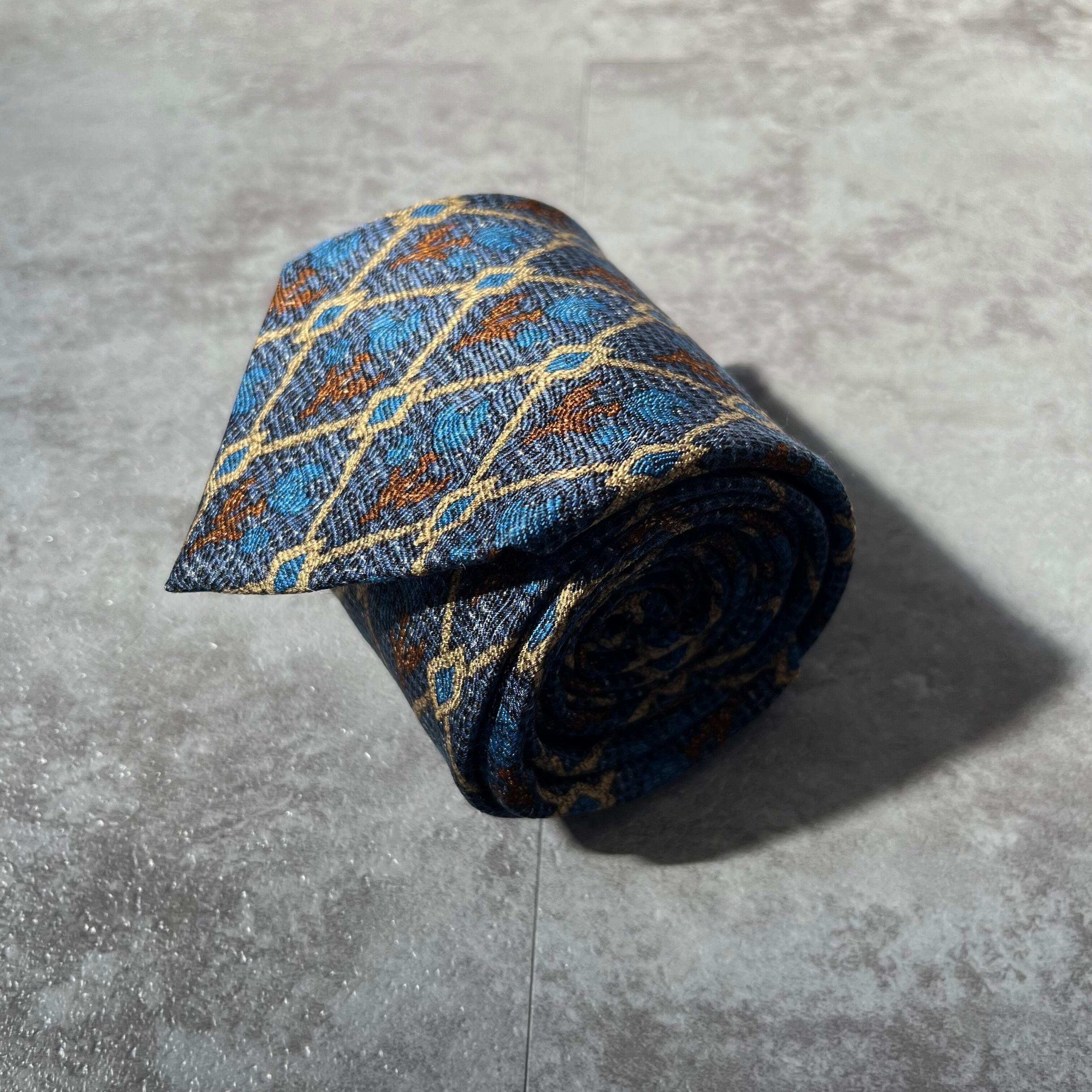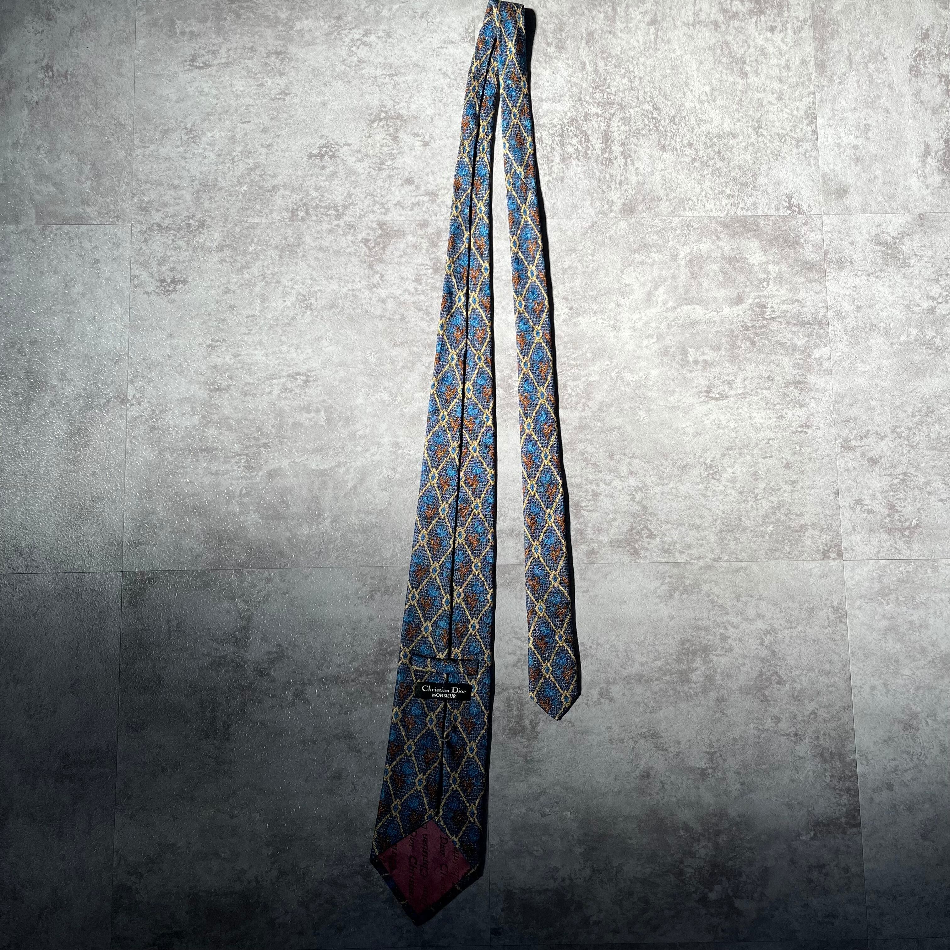 【Christian Dior】モチーフパターンネクタイ チェック柄 ネイビー 植物モチーフ