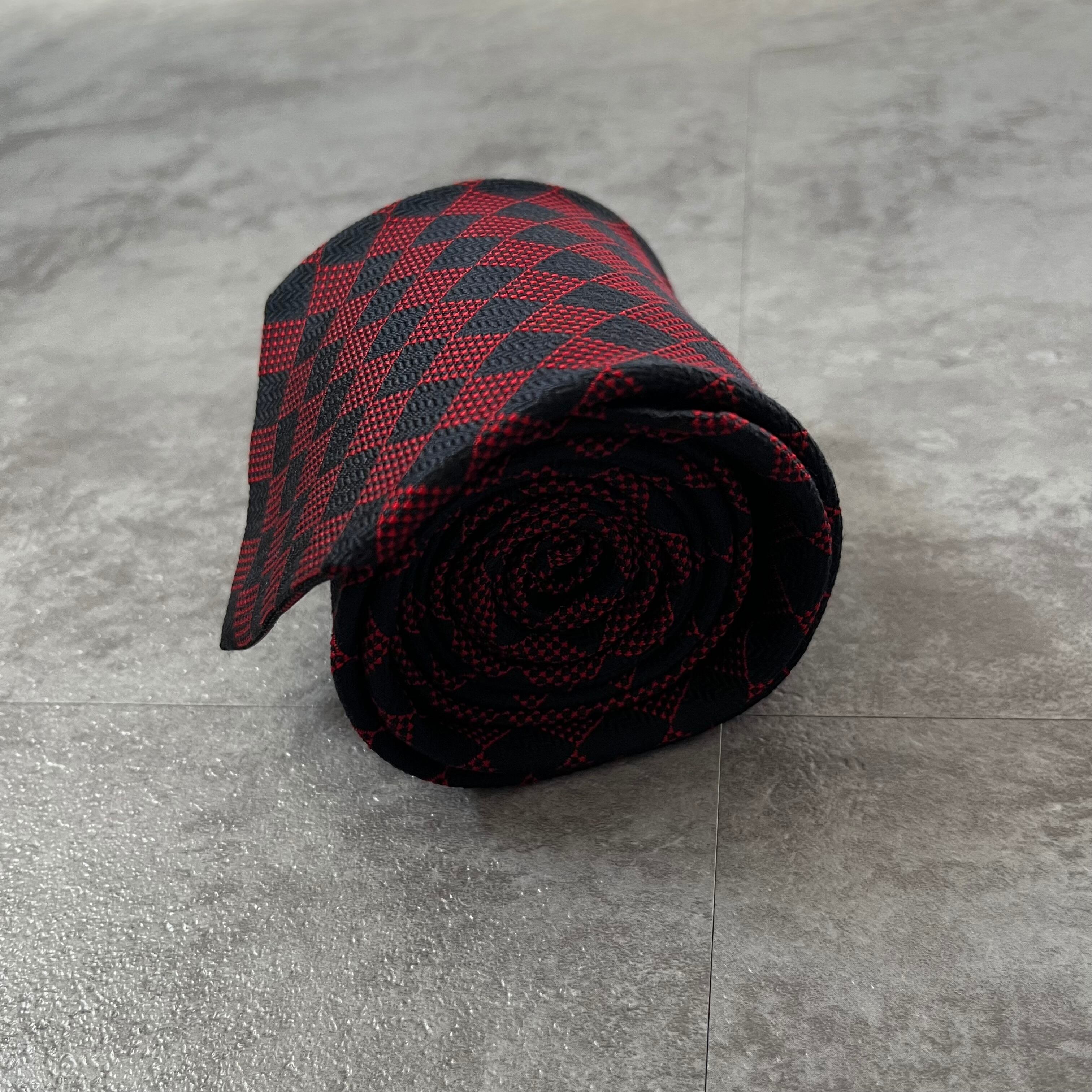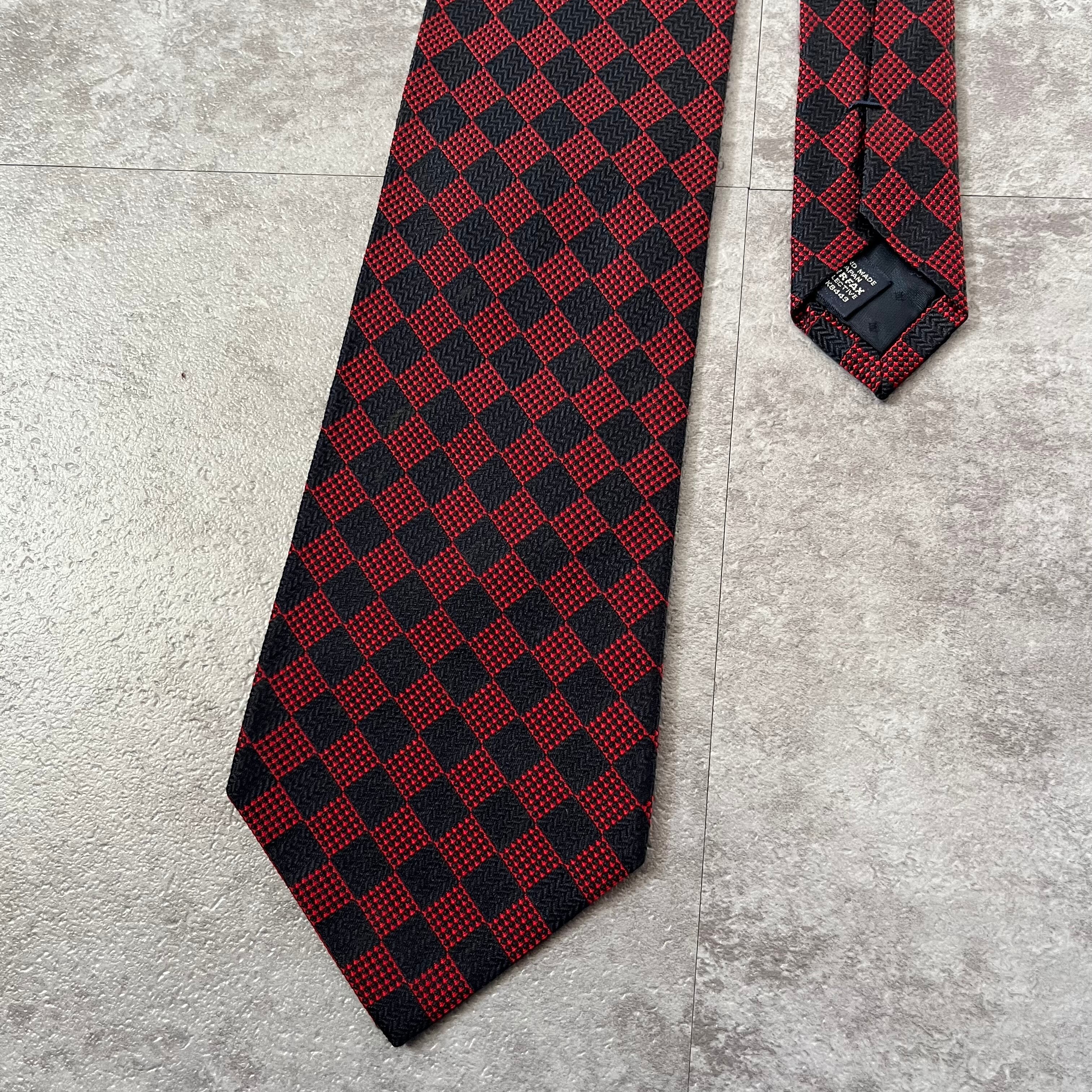 【FAIRFAX】バイカラーブロックチェックネクタイ ネイビー×レッド