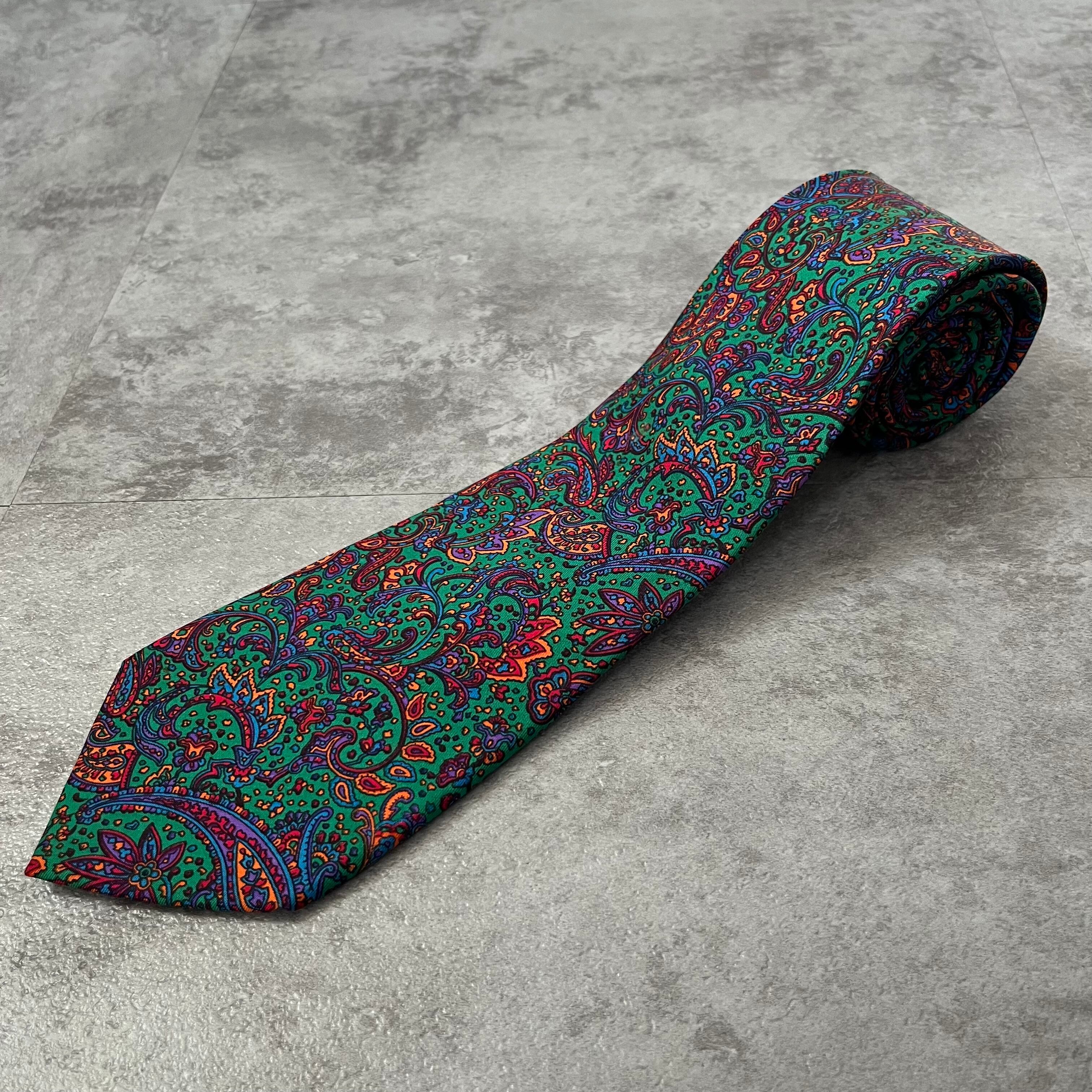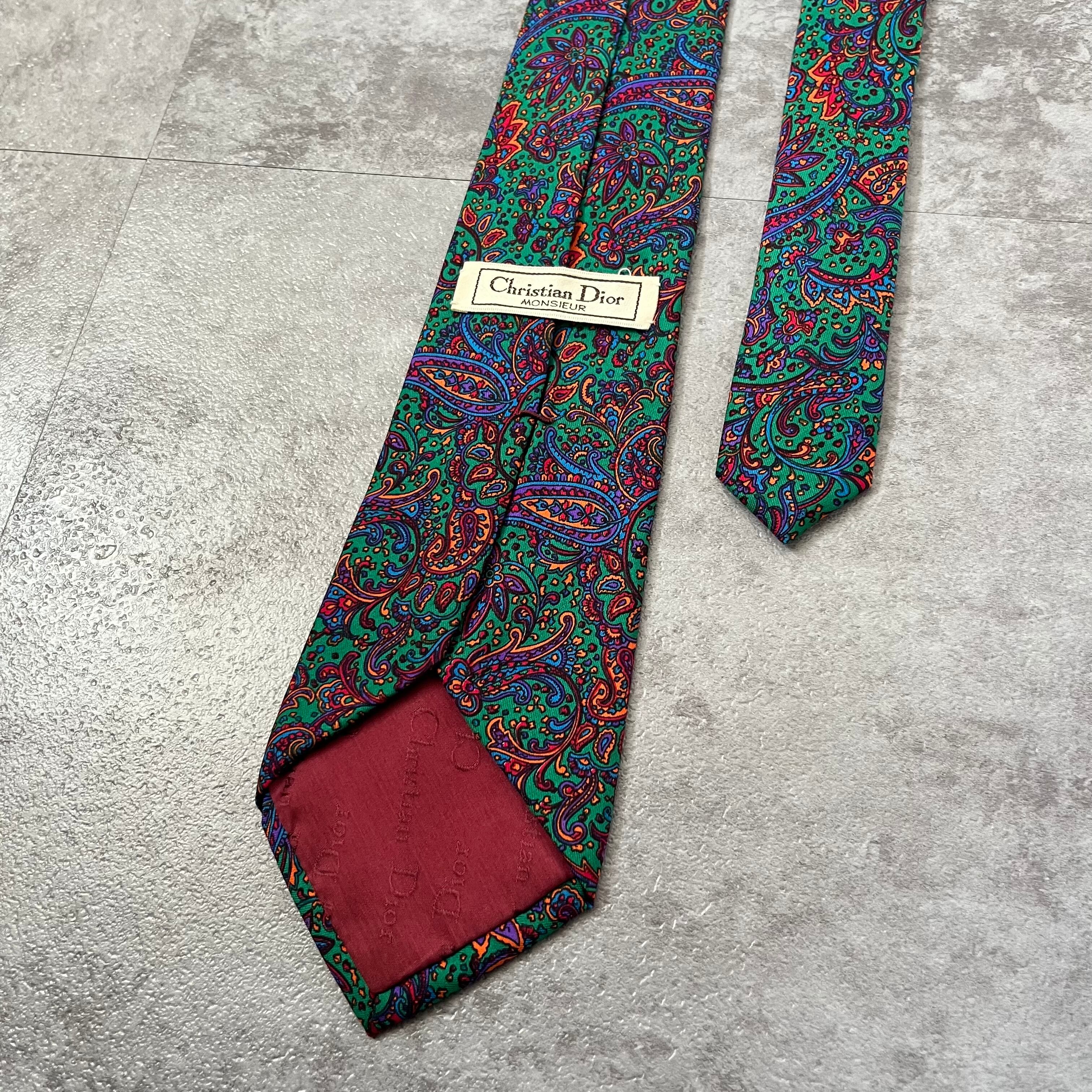 【Christian Dior】ペイズリー柄ネクタイ グリーン×レッド