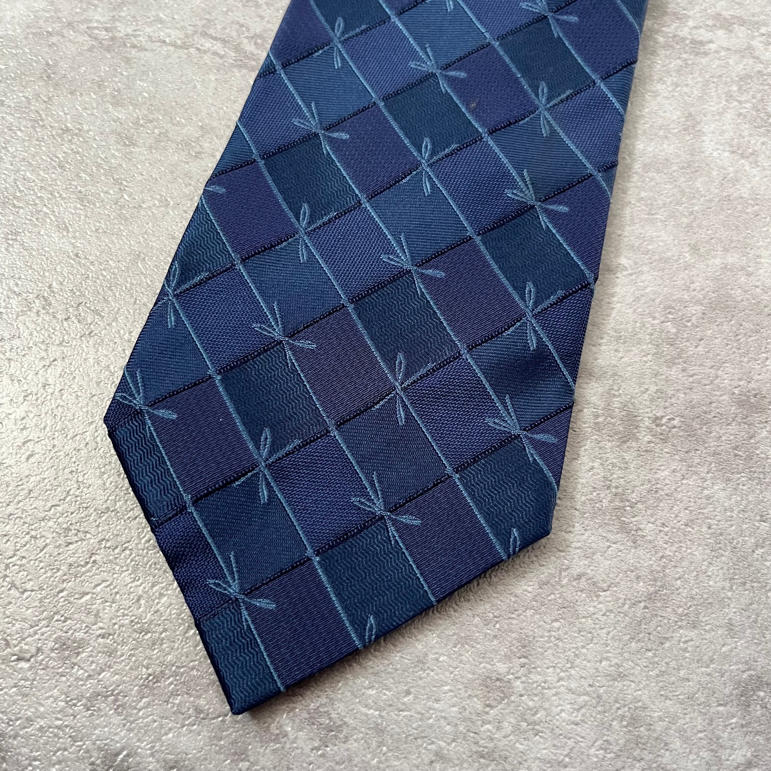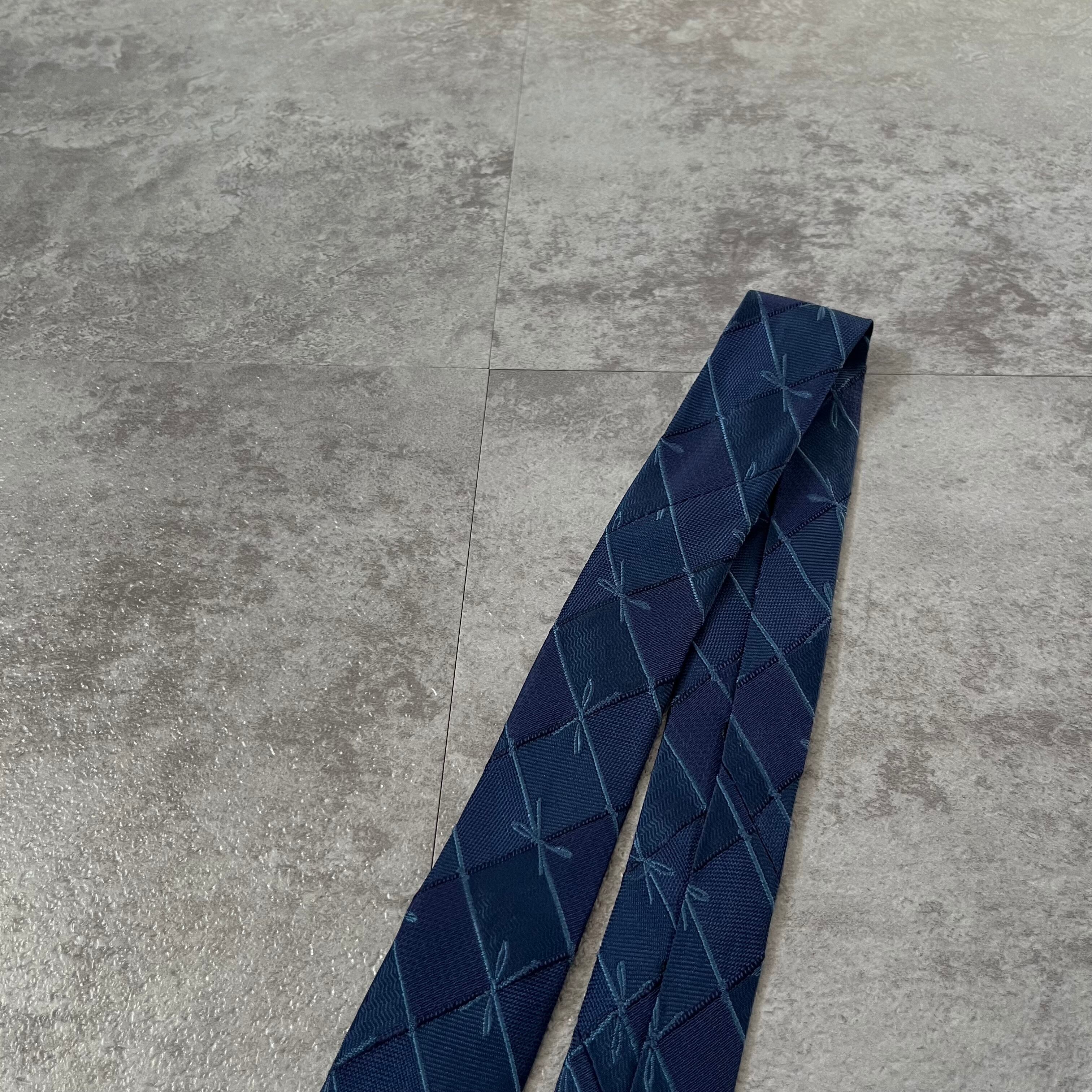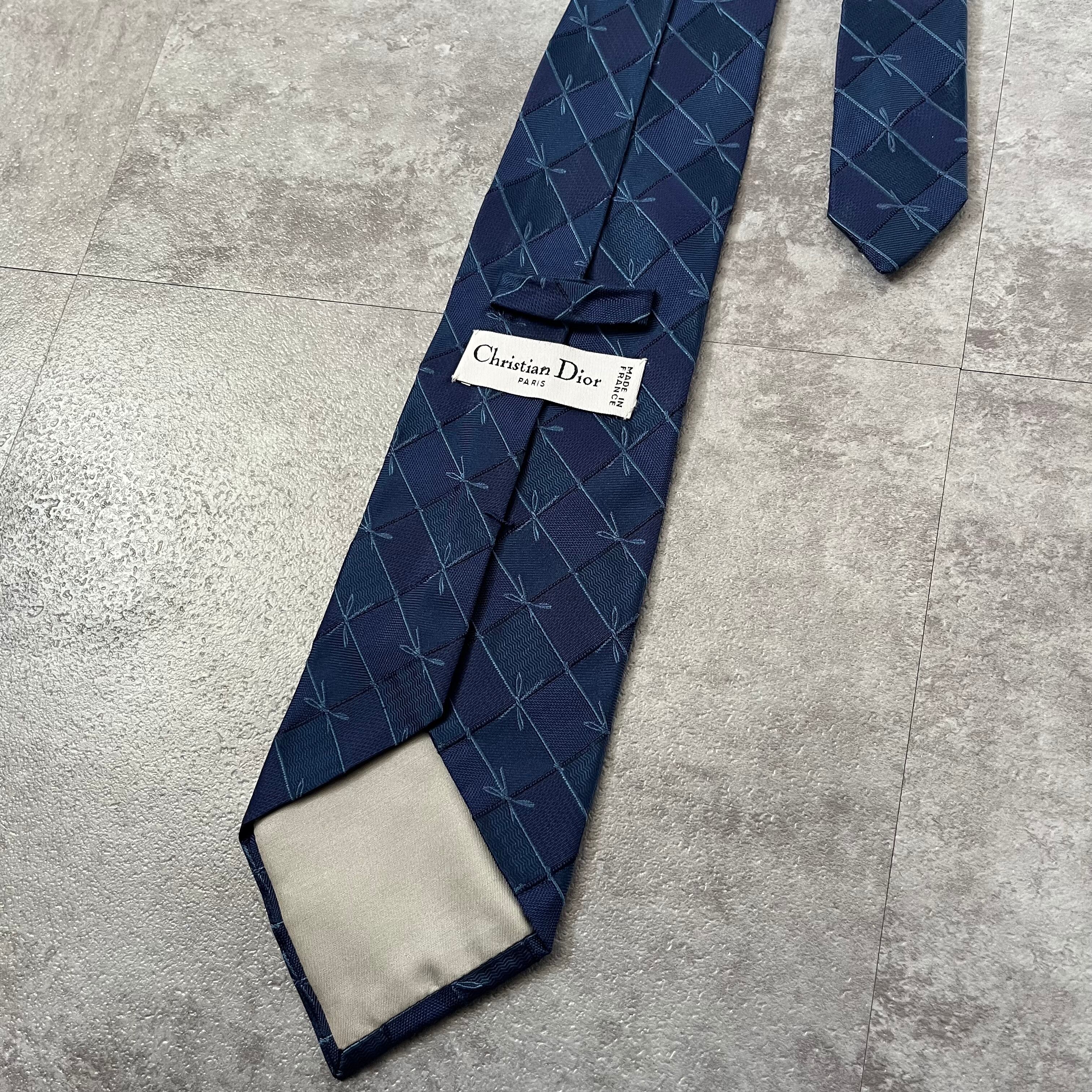 【Christian Dior】リボン柄 チェック柄ネクタイ ネイビー