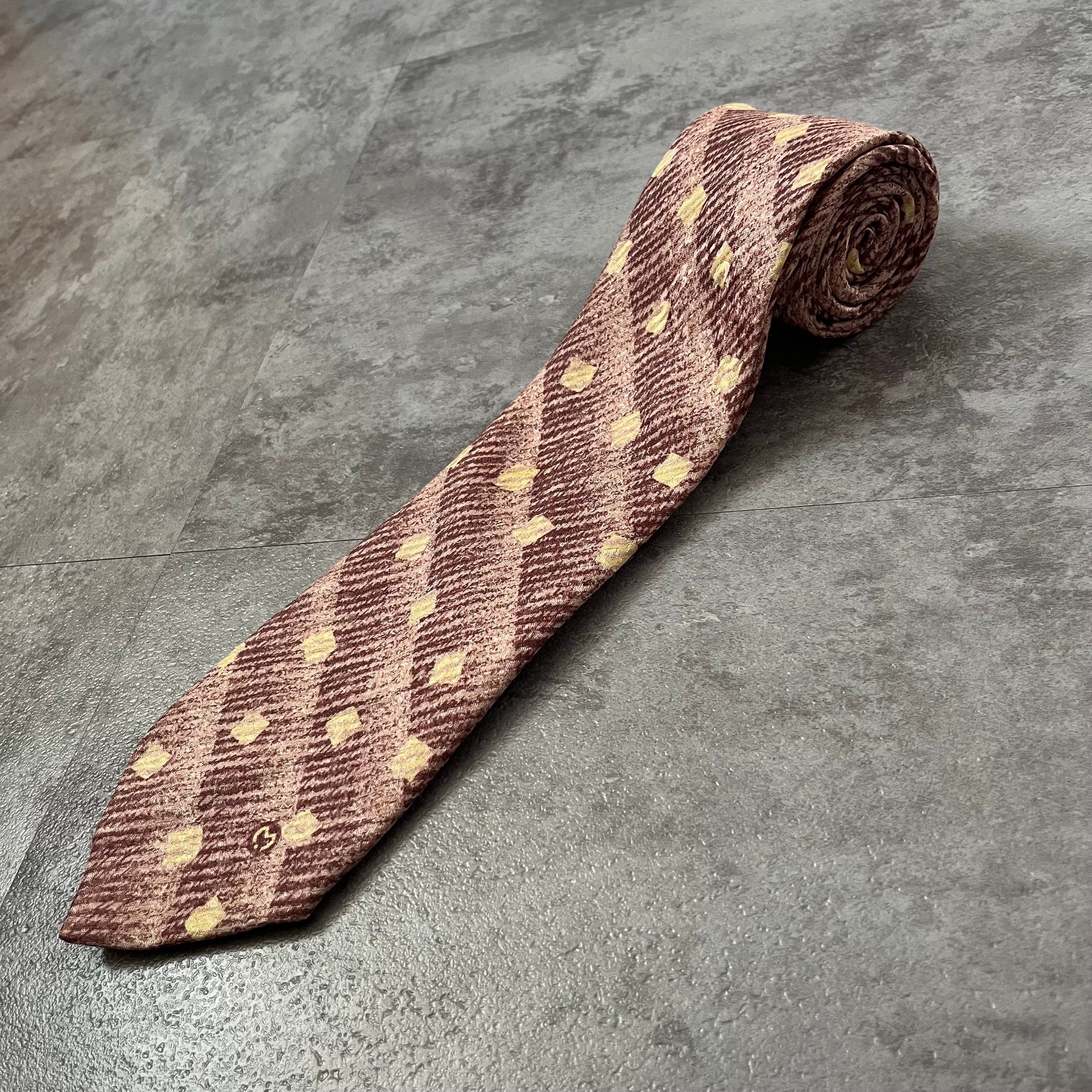 【Mila Schon】ツイード風ストライプ柄ネクタイ 小紋柄 ピンクベージュ