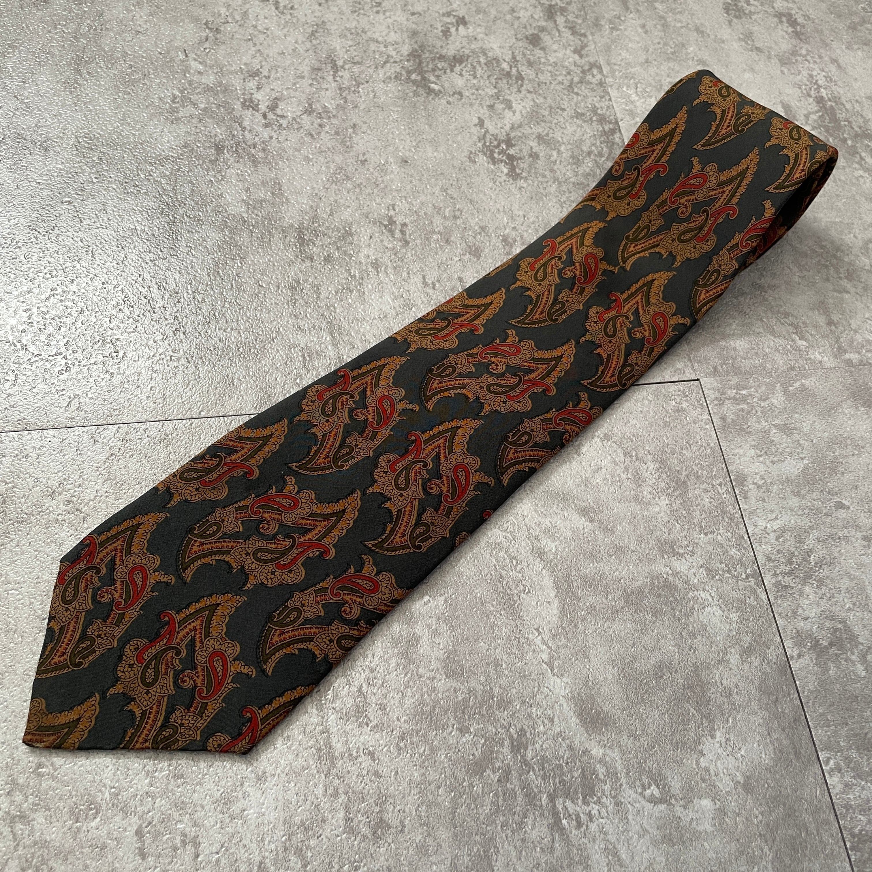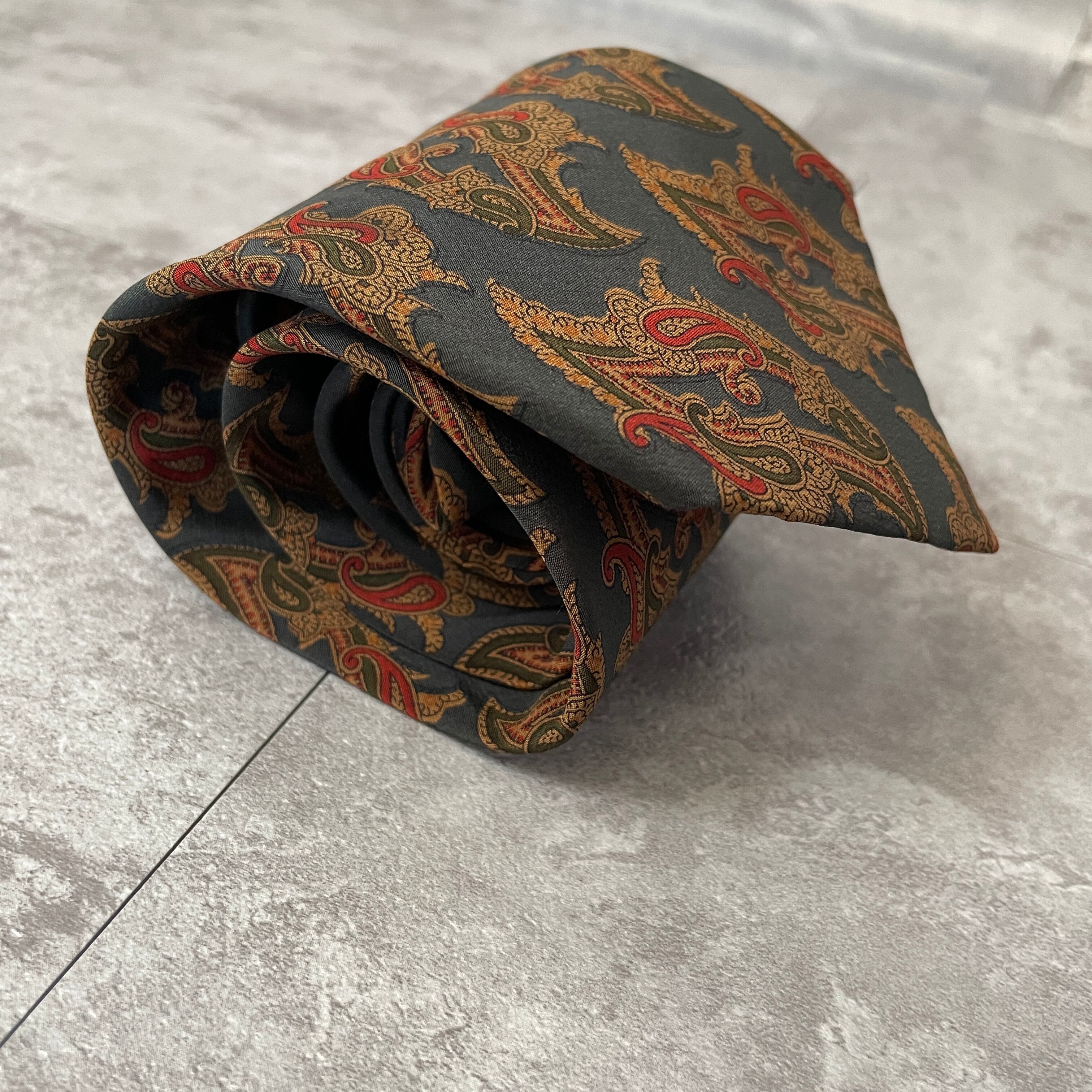 【Christian Dior】ペイズリー柄ネクタイ グリーン ボタニカル