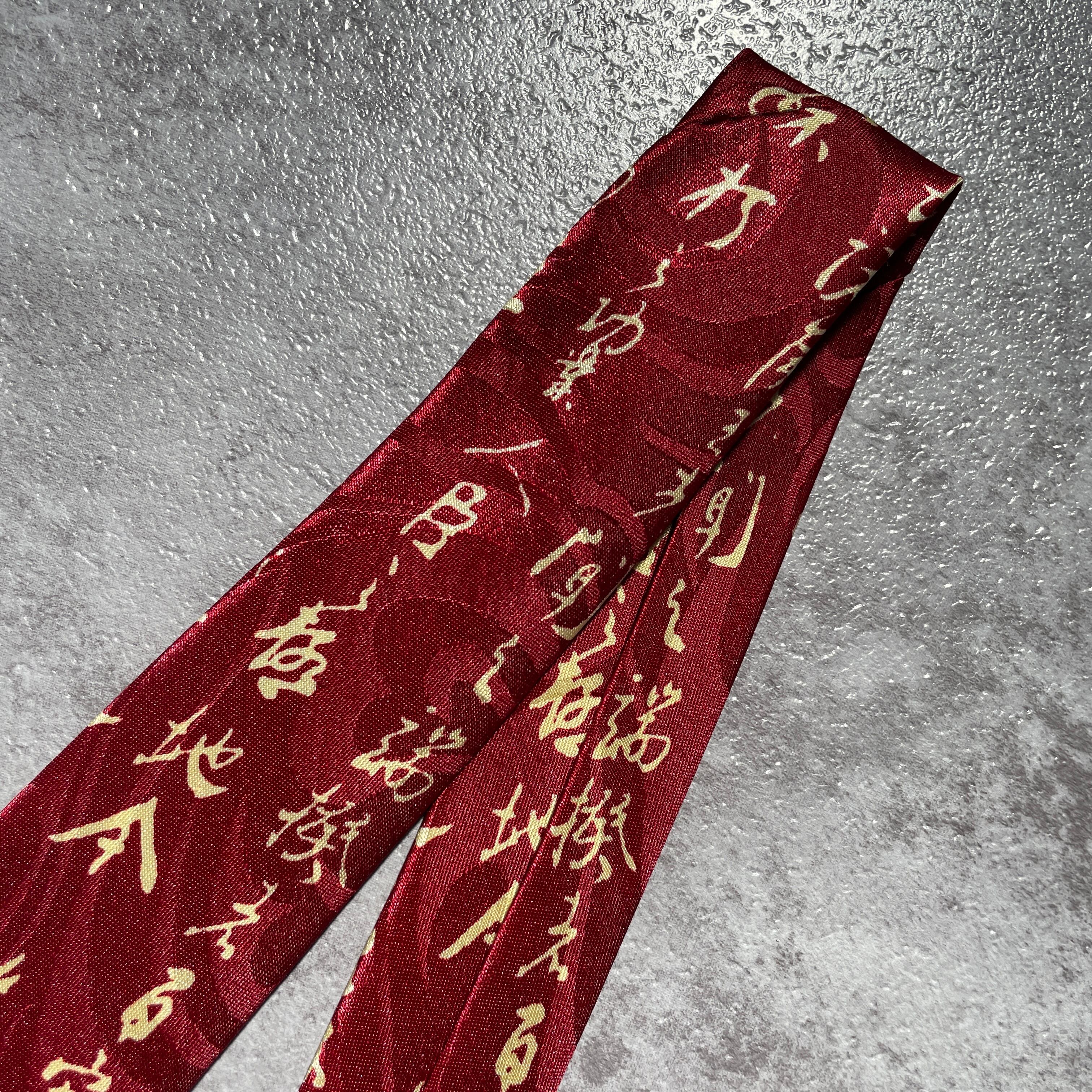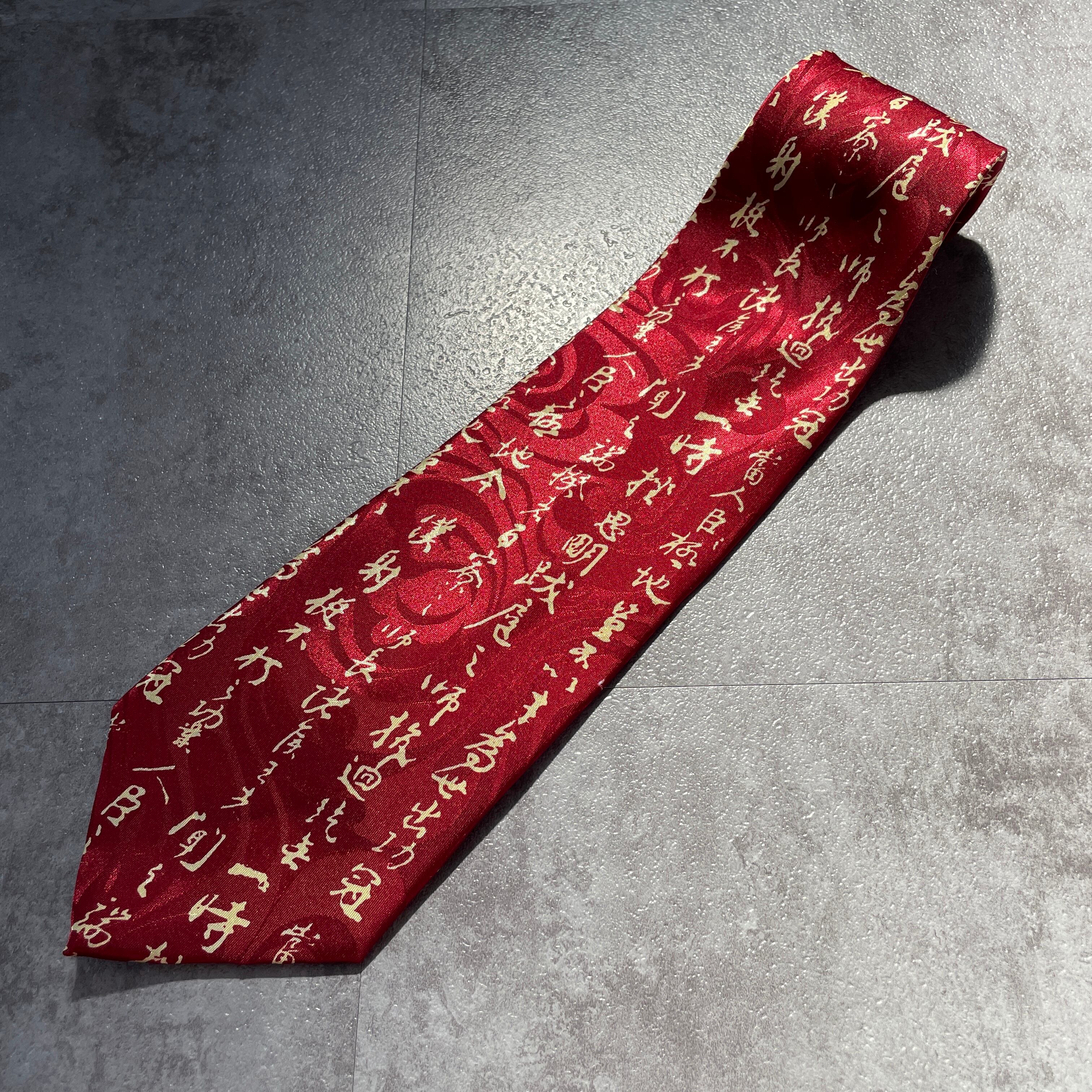 【書体モチーフ】中華風漢文モチーフネクタイ レッド 光沢 シャドウ