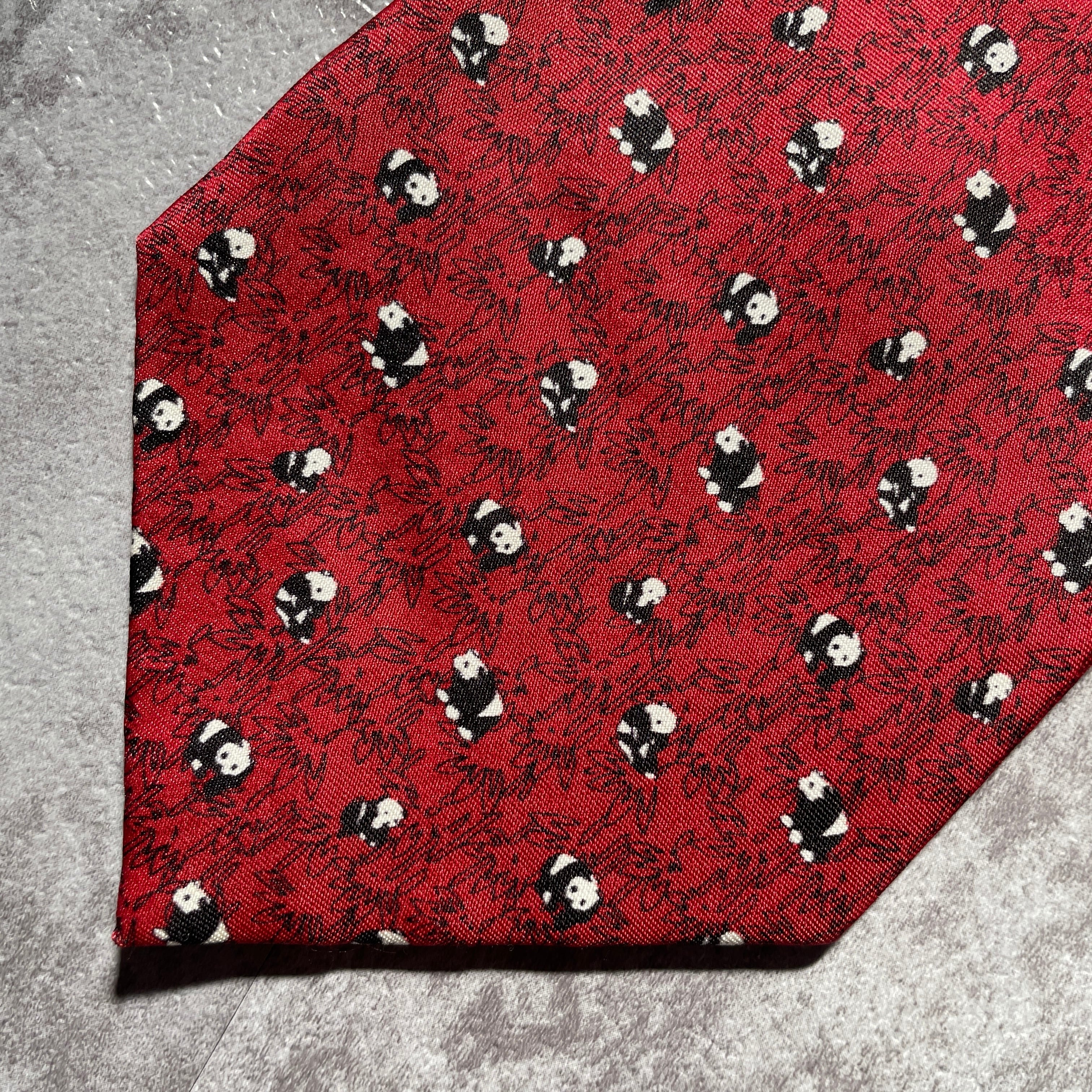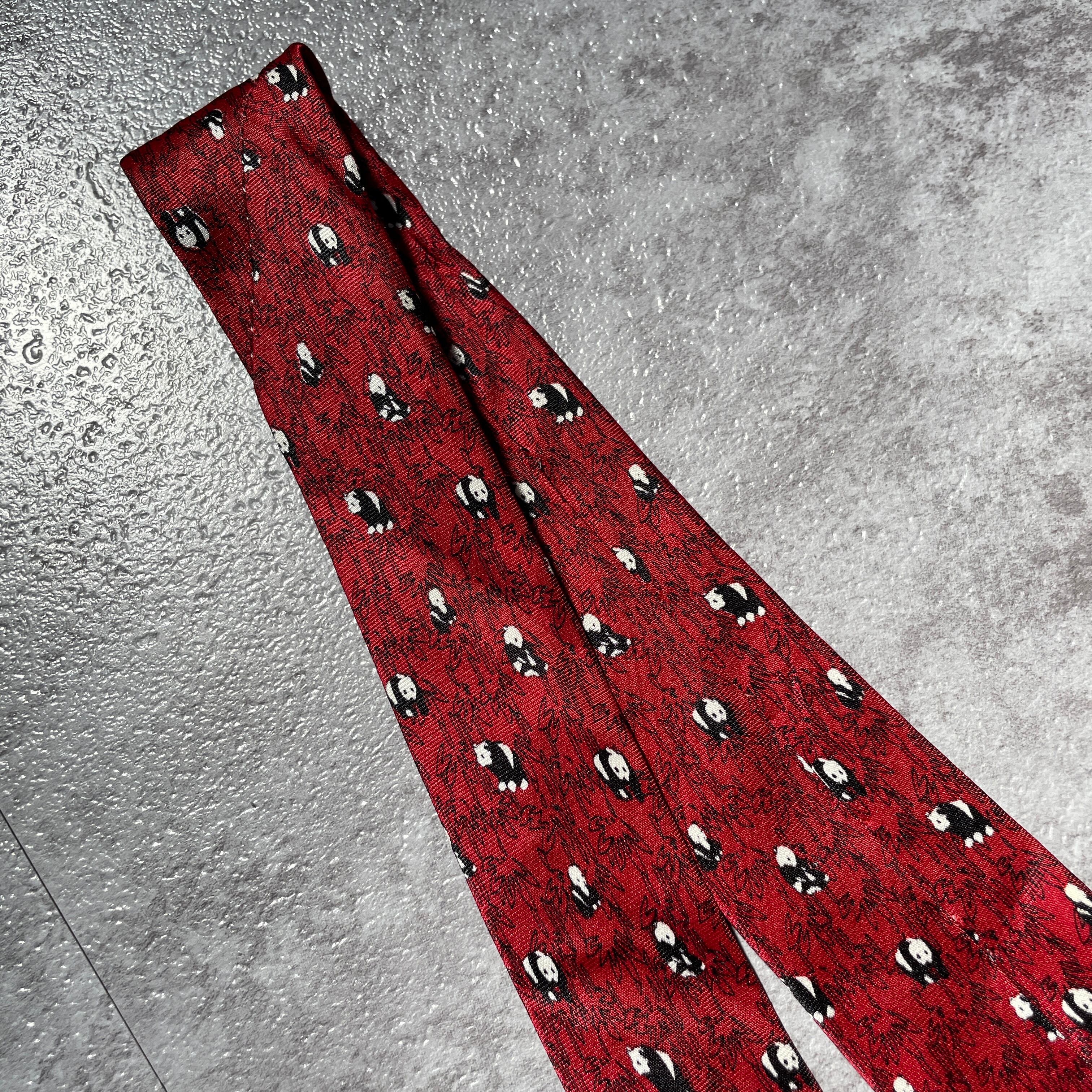 【アニマル柄】パンダ柄ネクタイ レッド 中華風