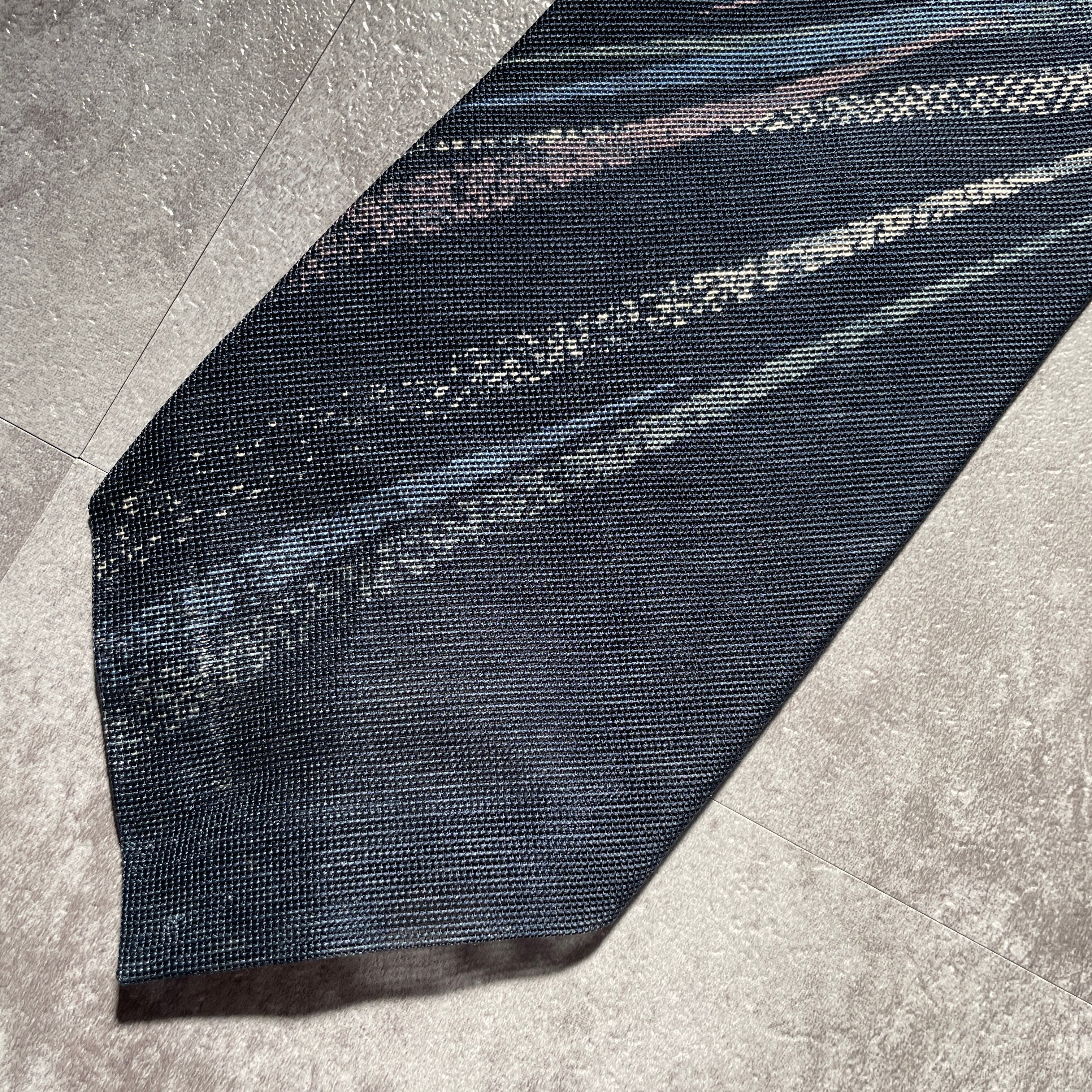 【和柄】薄織メッシュネクタイ ネイビー アート柄