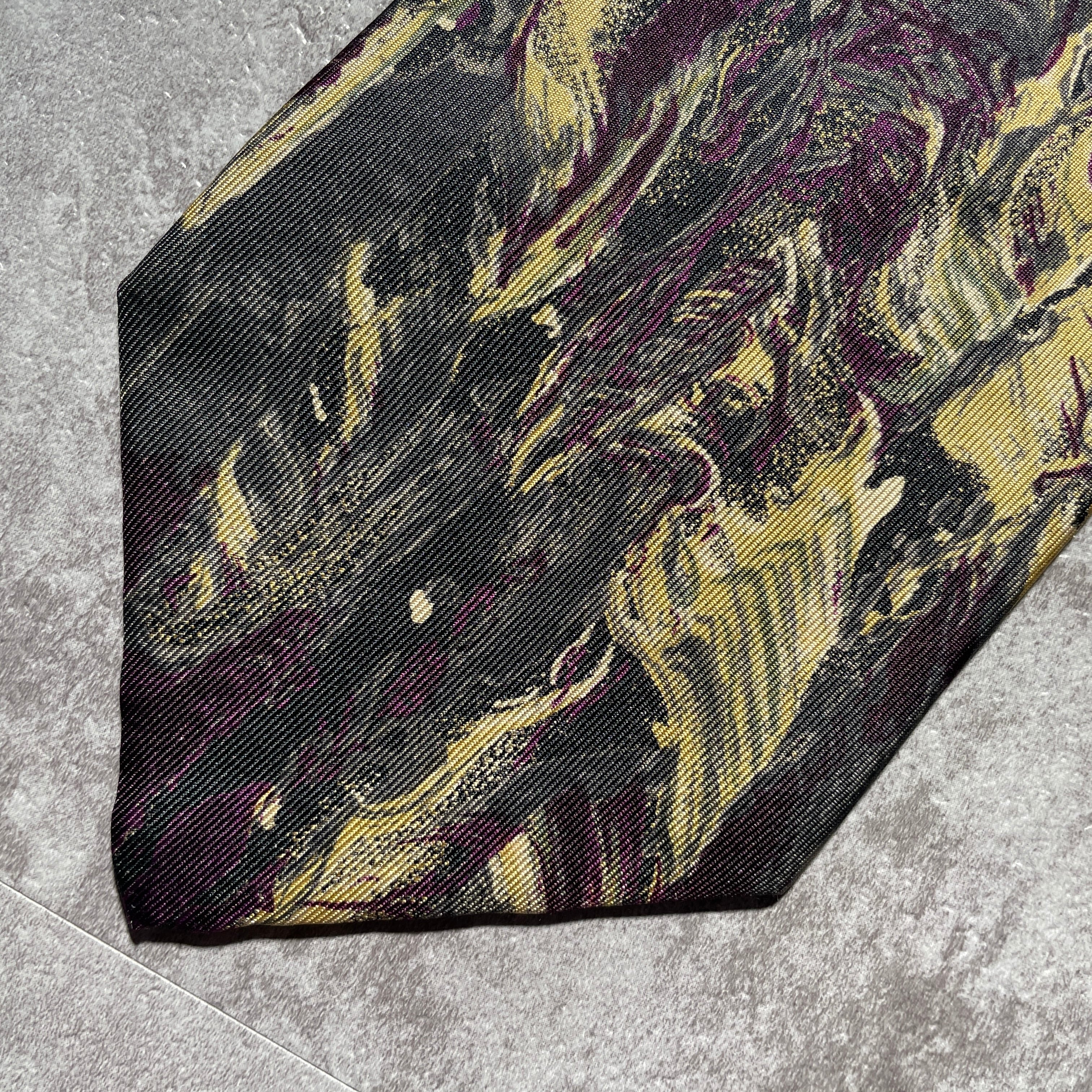 【アート柄】マルチカラーネクタイ 多色 紫 黄色 グレー