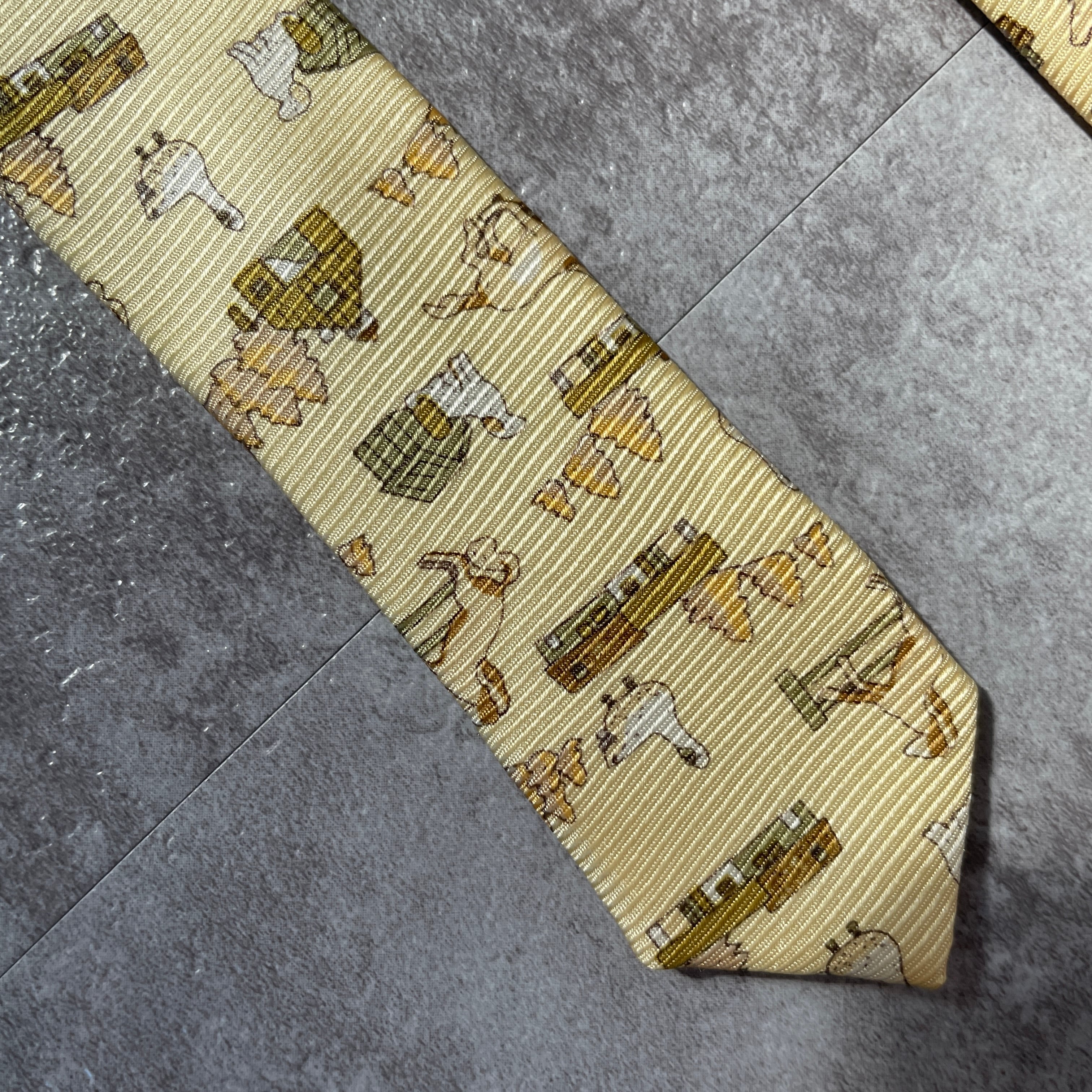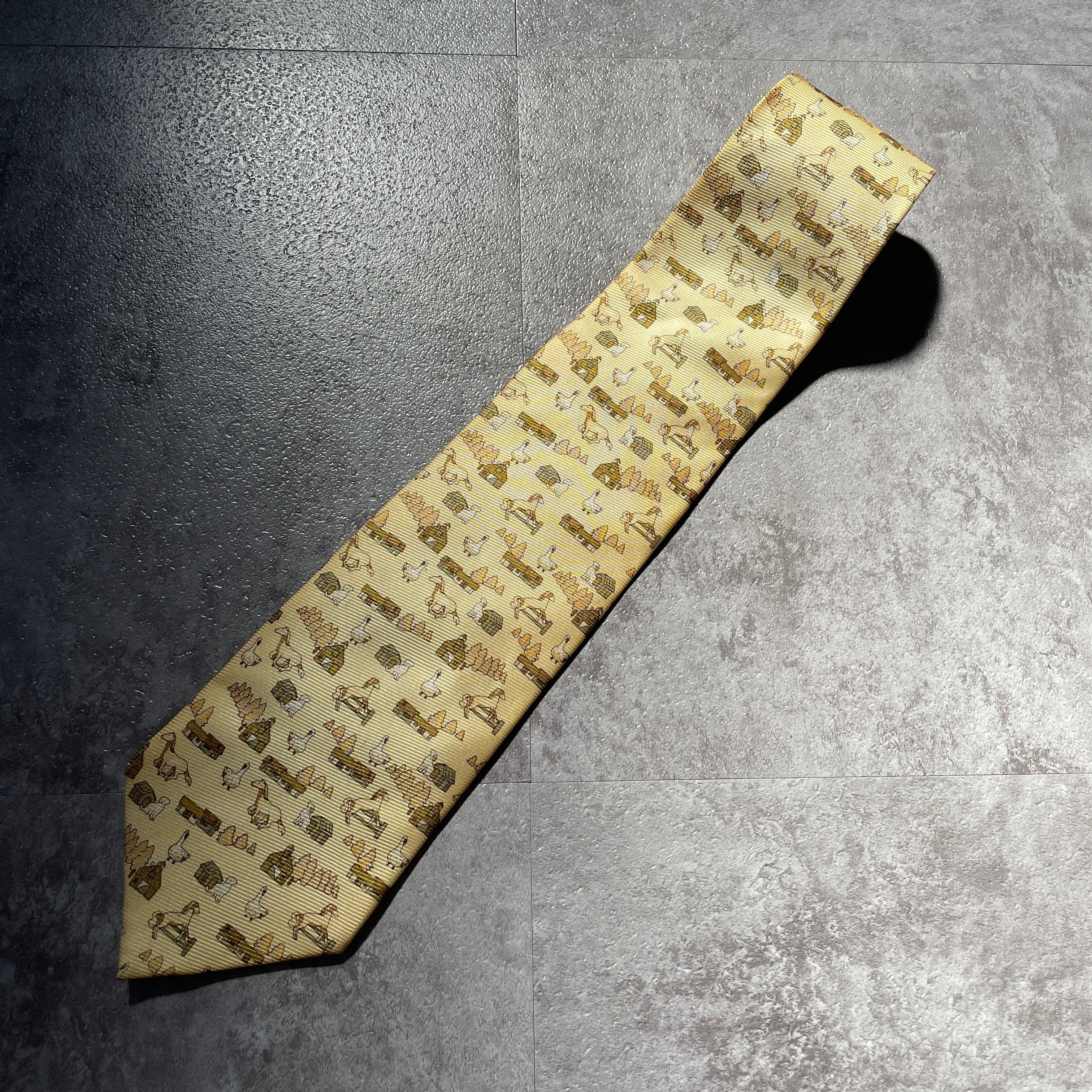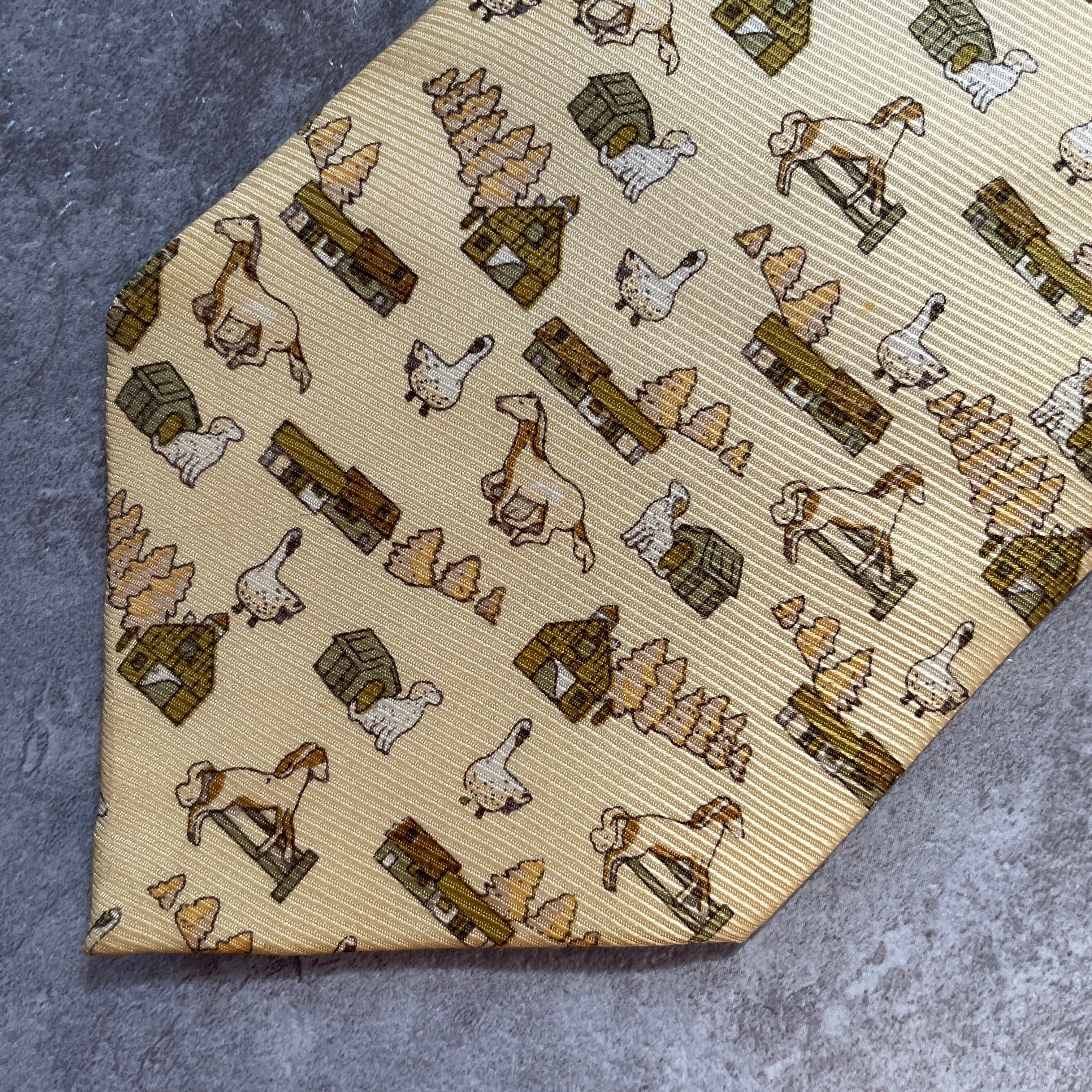 【アニマル柄】ネクタイ イエロー アヒル 馬 犬 牧場