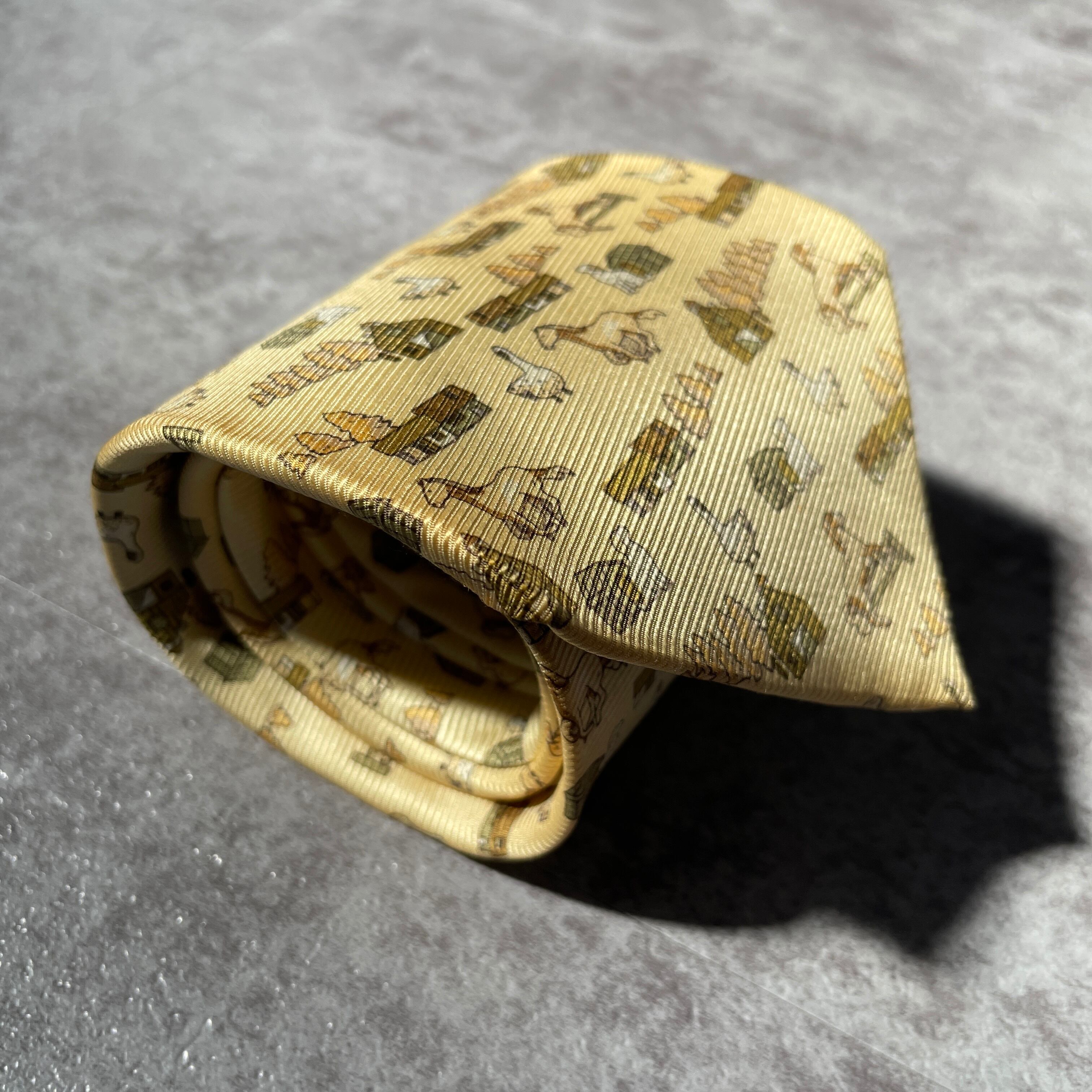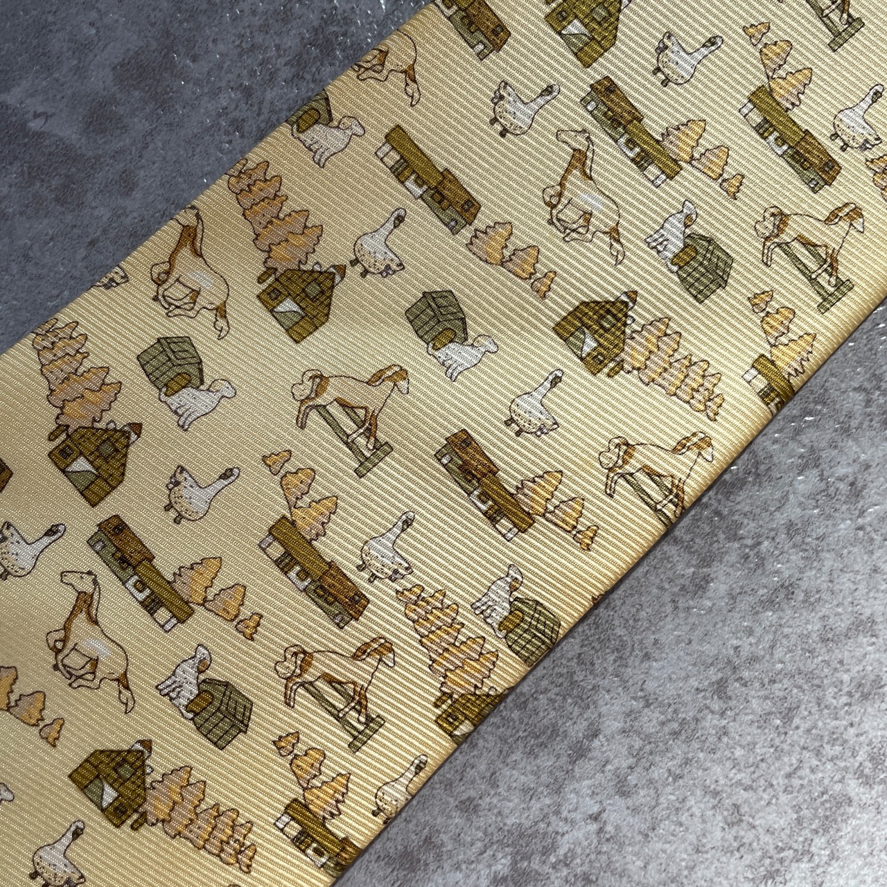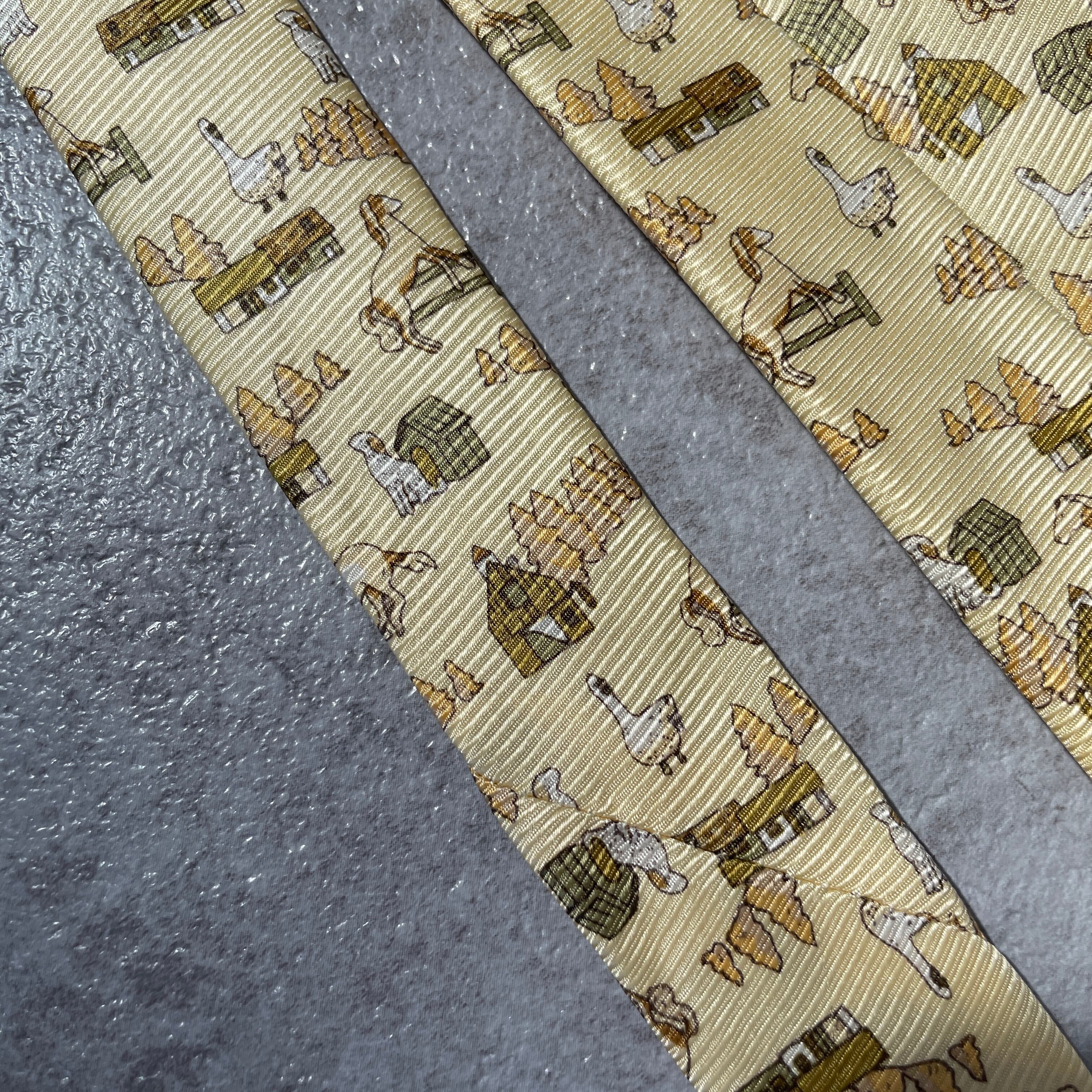 【アニマル柄】ネクタイ イエロー アヒル 馬 犬 牧場
