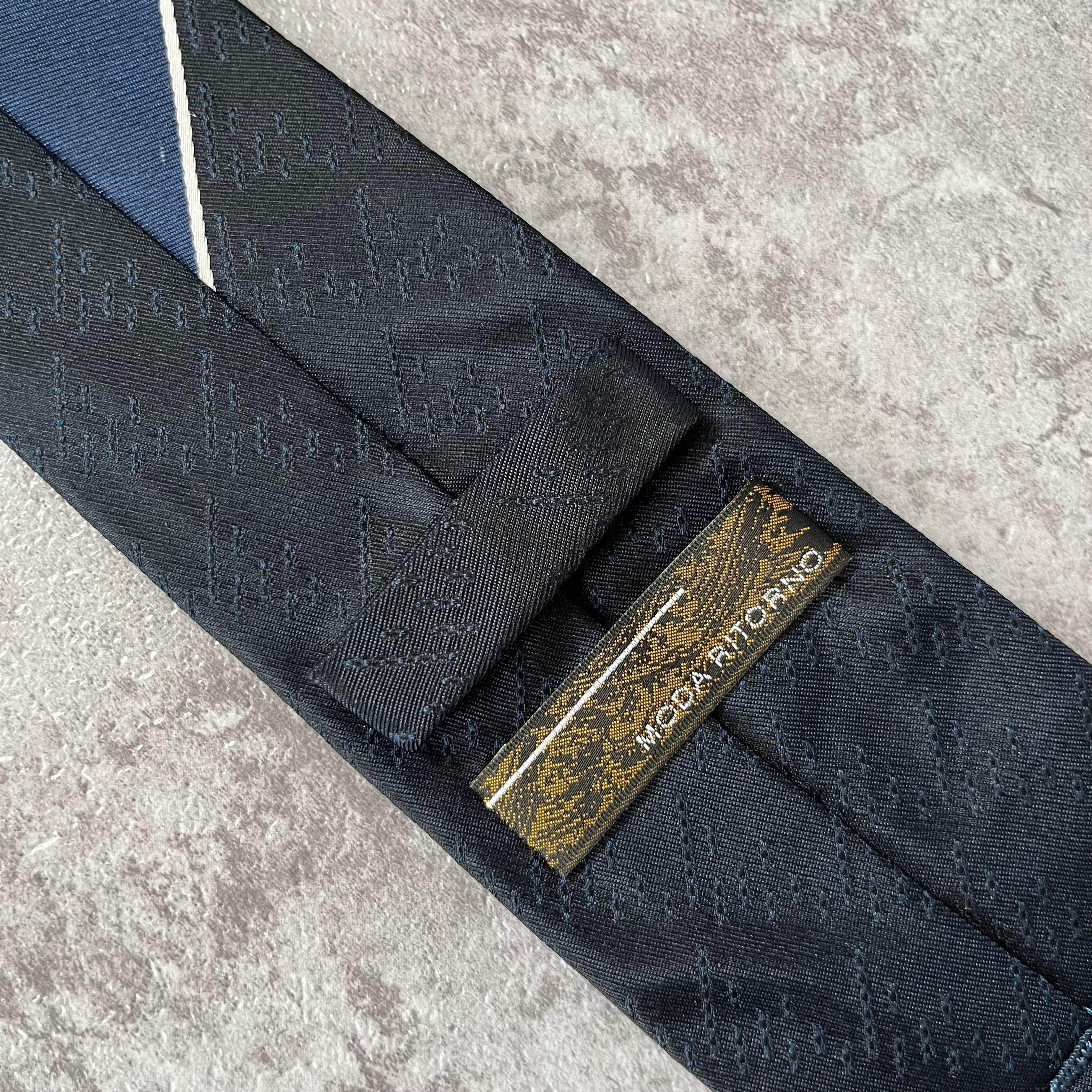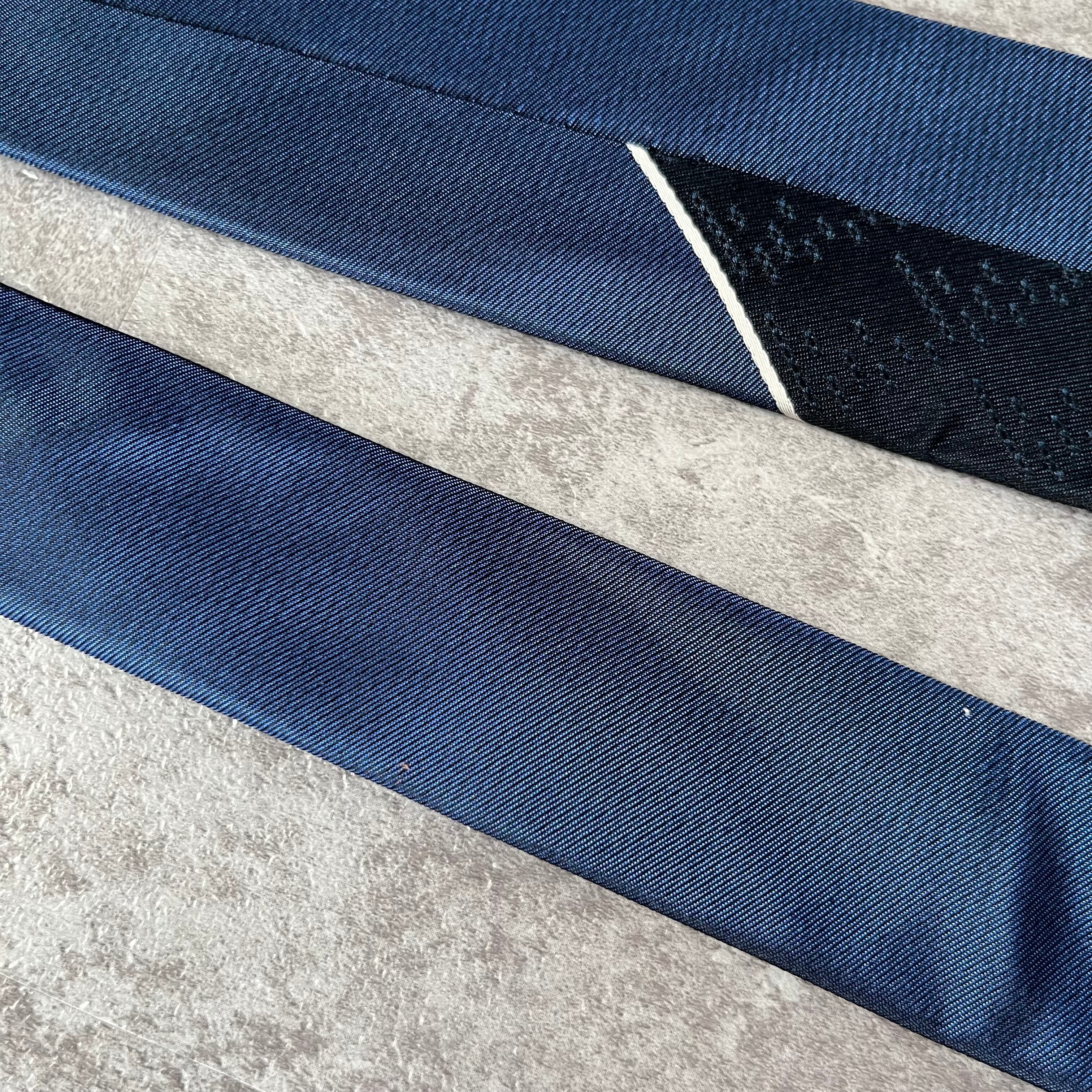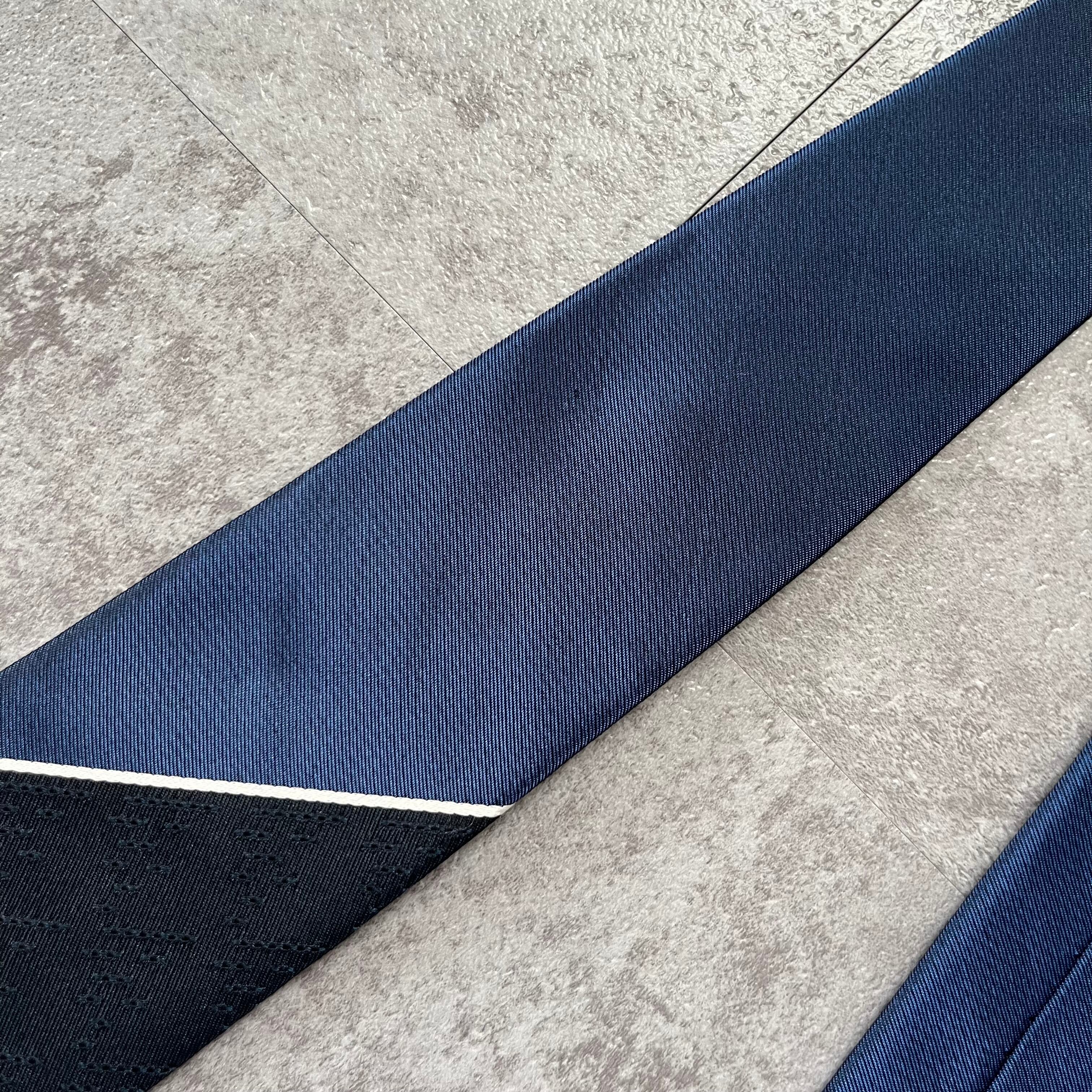 【切り替えデザイン】シャドウチェックカラー切り替えネクタイ ネイビー