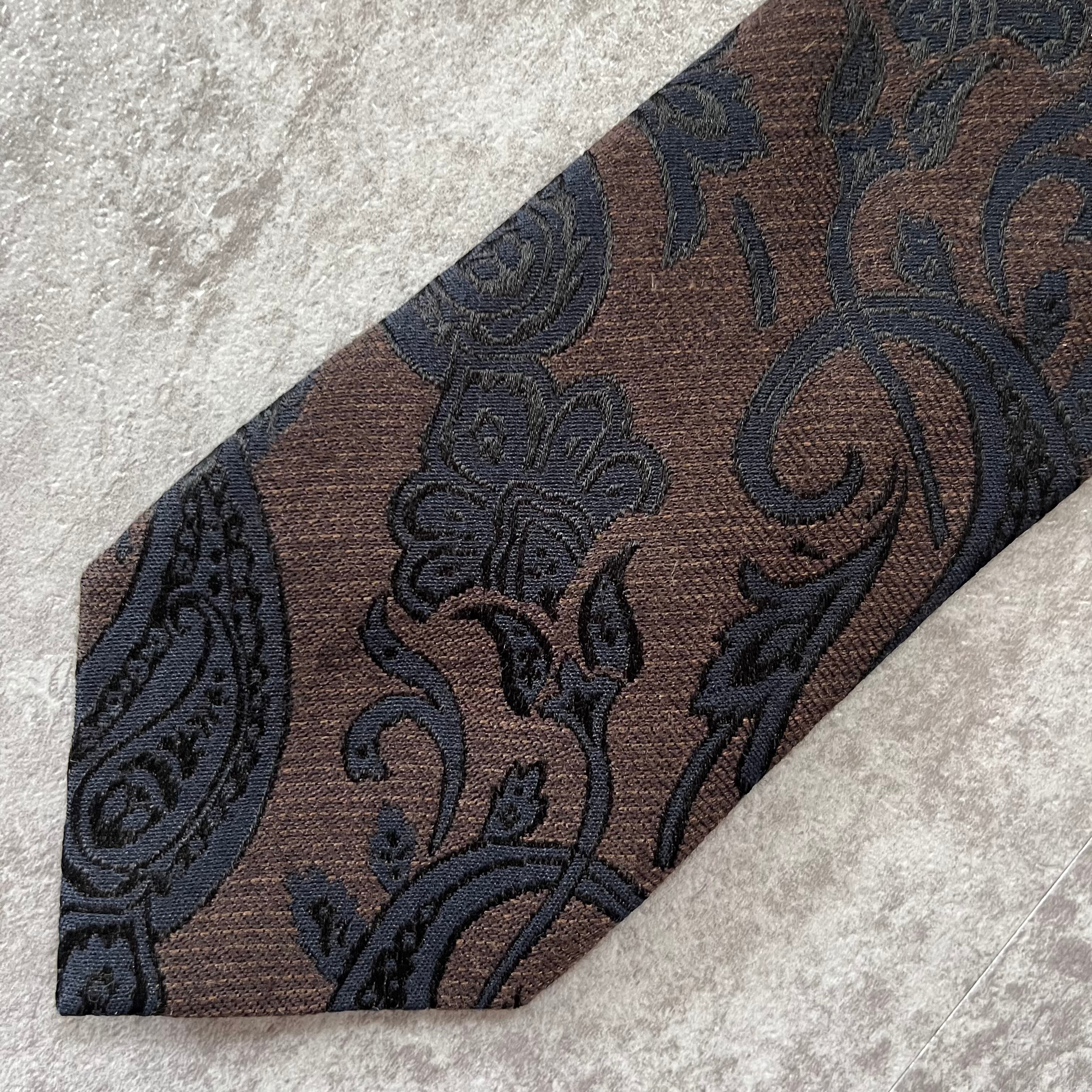 【ペイズリー柄】バイカラーニットタイ ブラウン ネイビー ボタニカル
