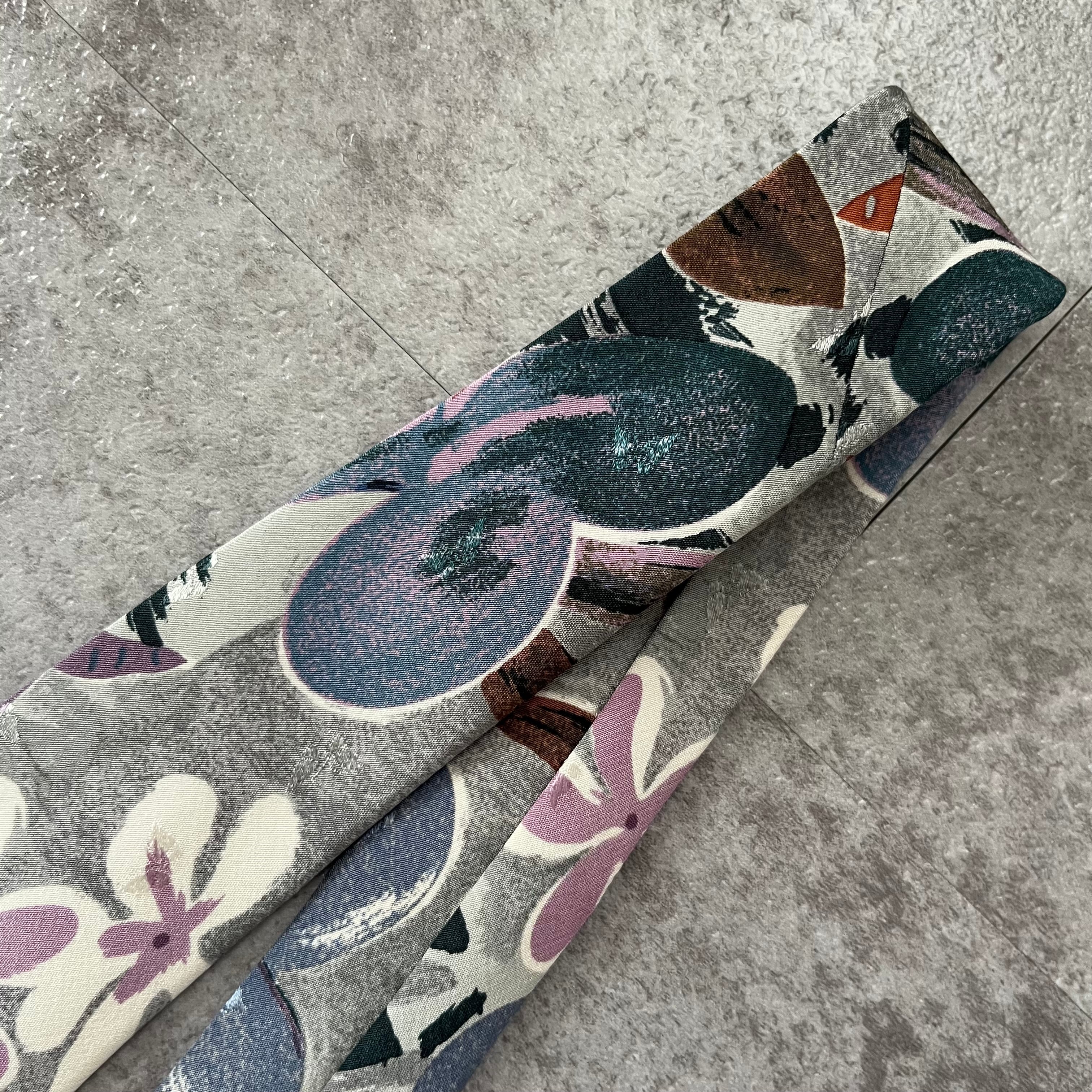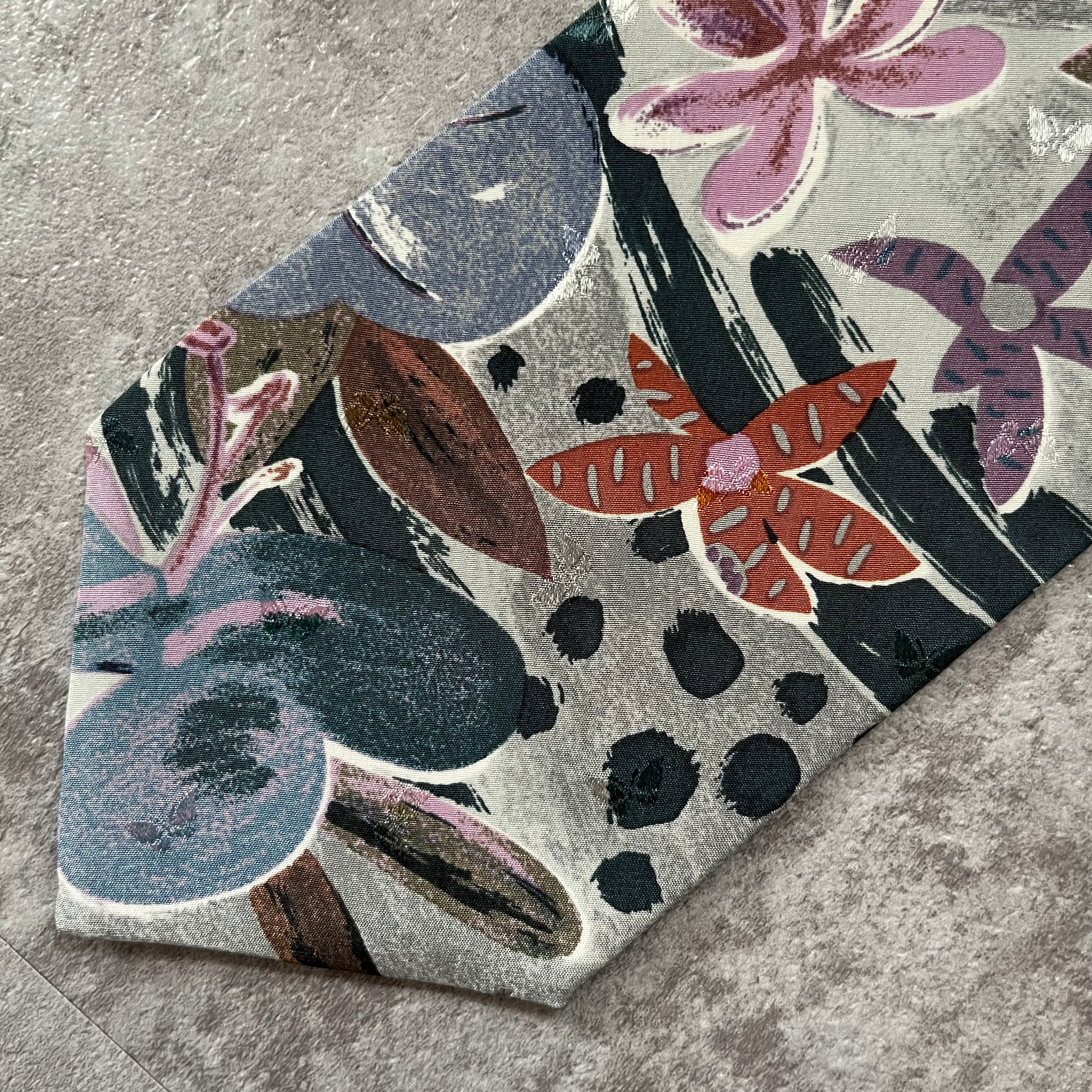 【HANAE MORI】ボタニカルネクタイ 筆書き調 和風 グレー 多色