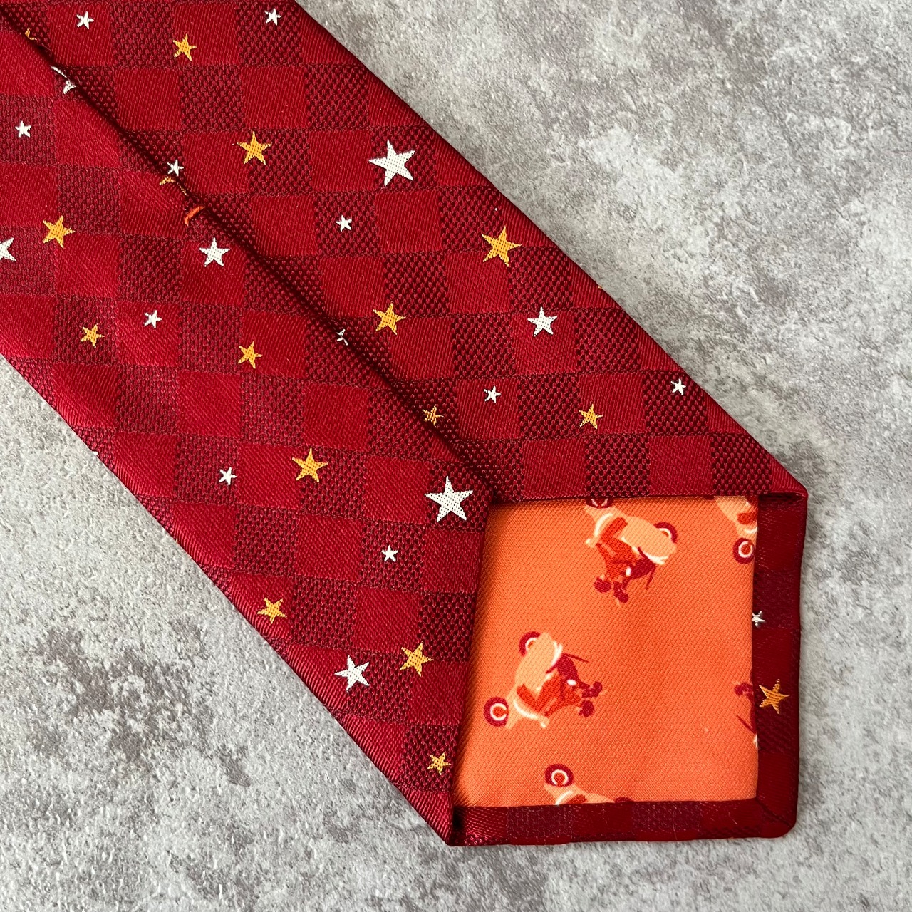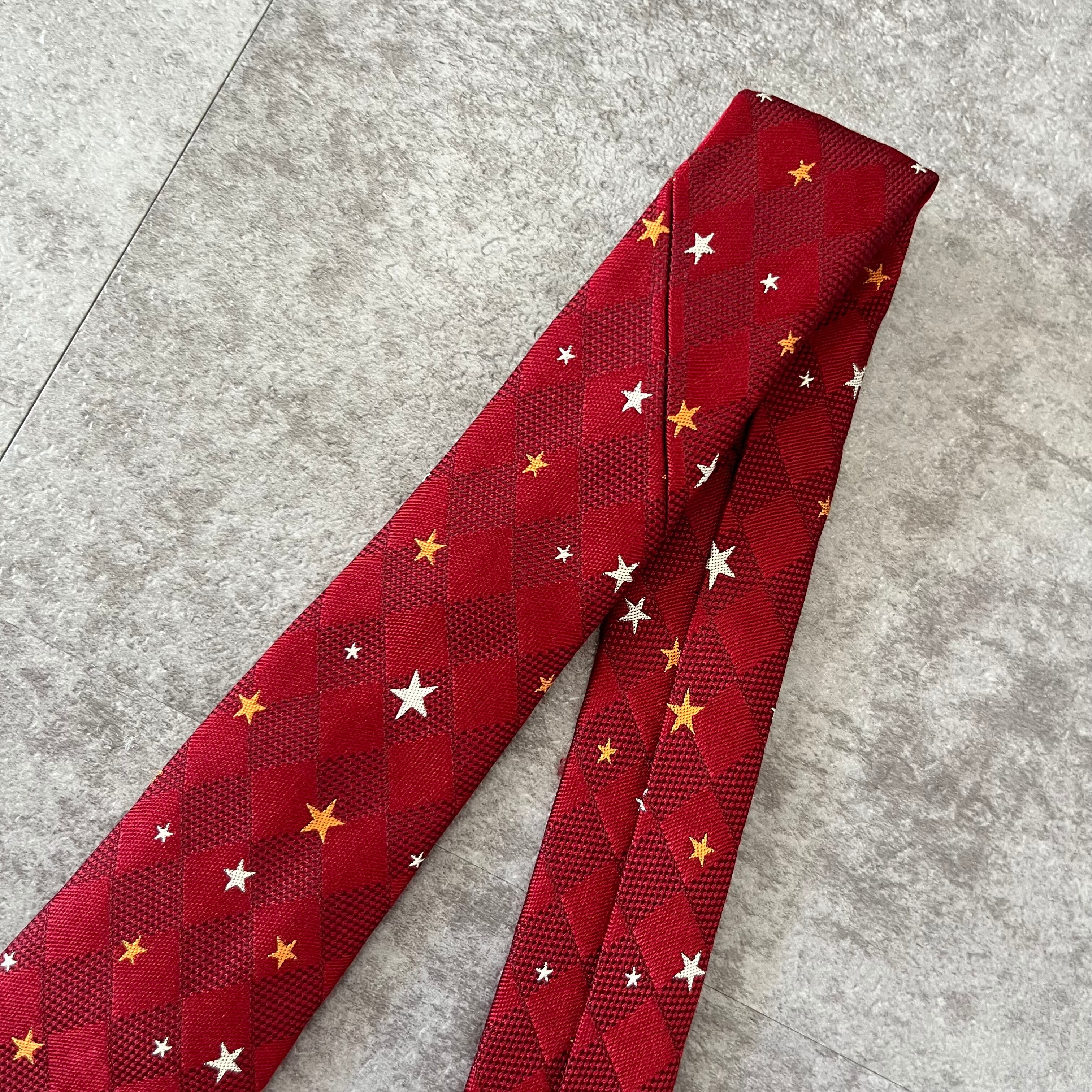 【星柄】総柄小紋柄ネクタイ シャドウチェック レッド