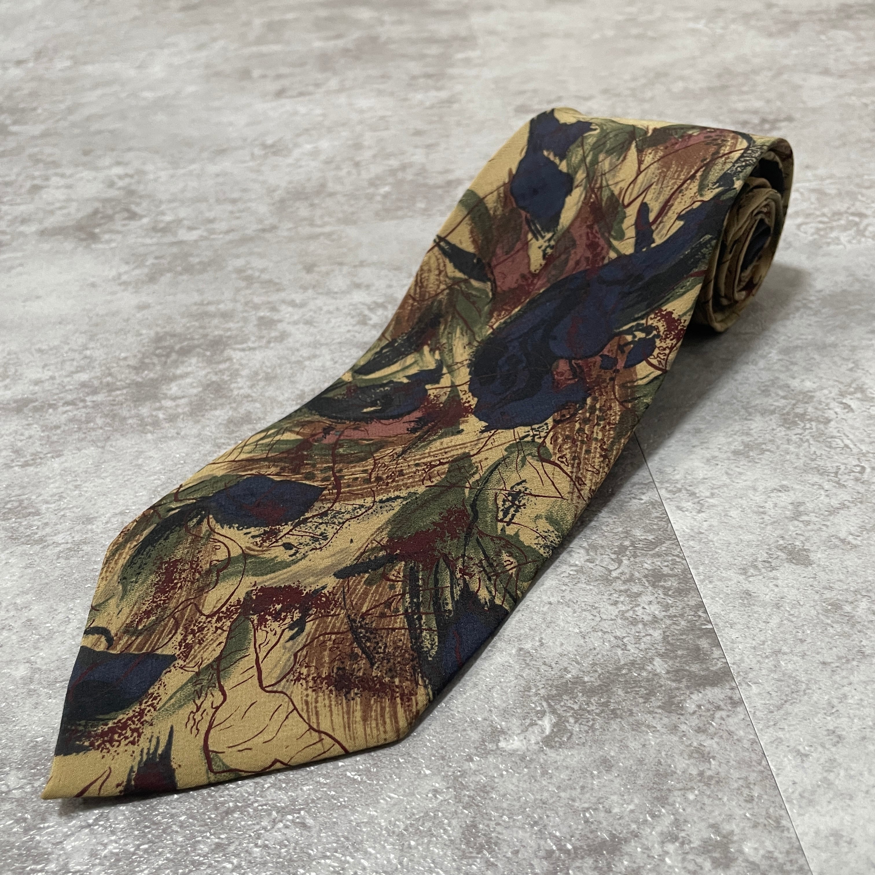 【アート柄】ボタニカルアートネクタイ ブラック ブラウン