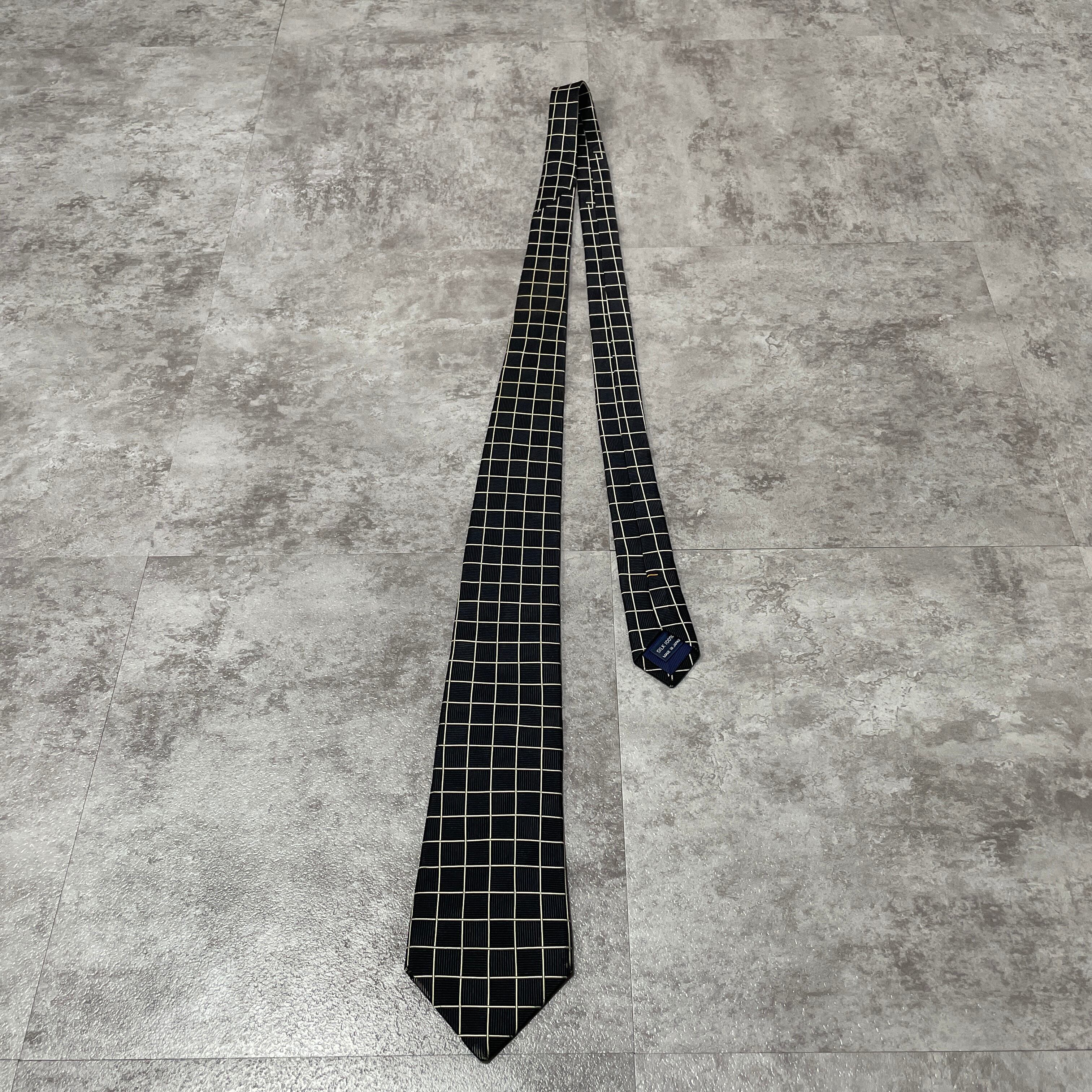 【CHAPS】チェック柄ネクタイ ネイビー 白線 バイカラー
