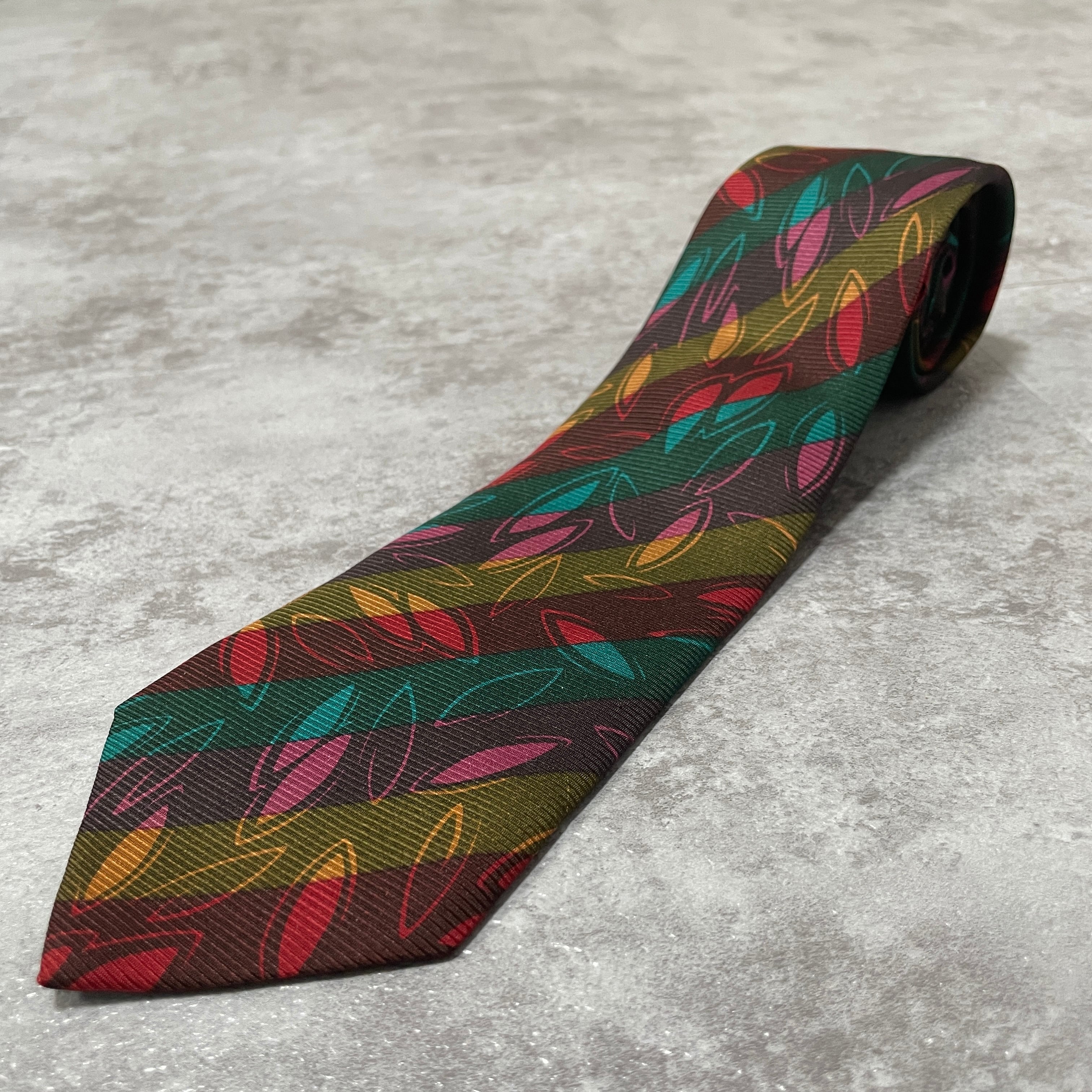 【VALENTINO】マルチカラーストライプネクタイ レジメンタルストライプ ブルー イエロー オレンジ レッド 植物柄