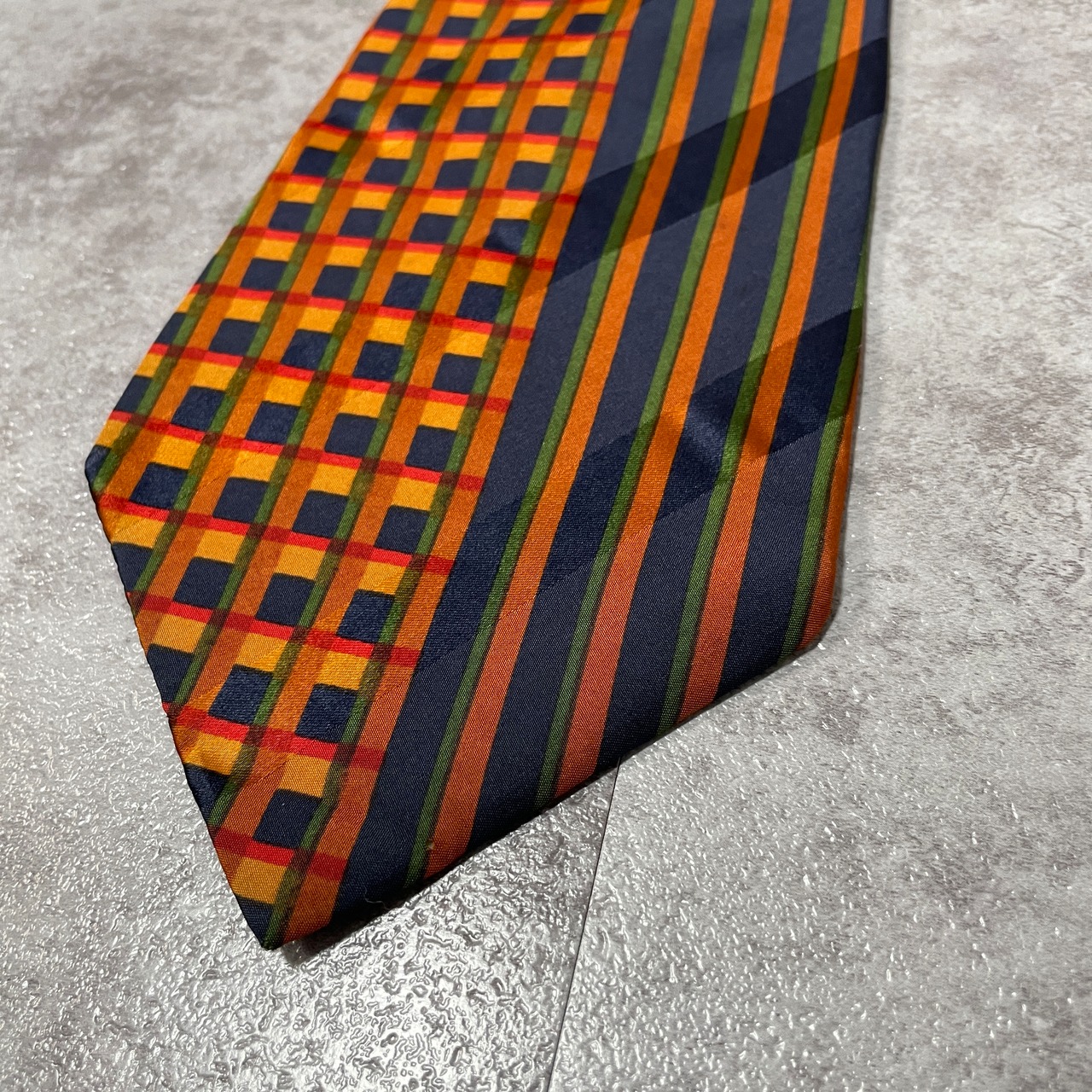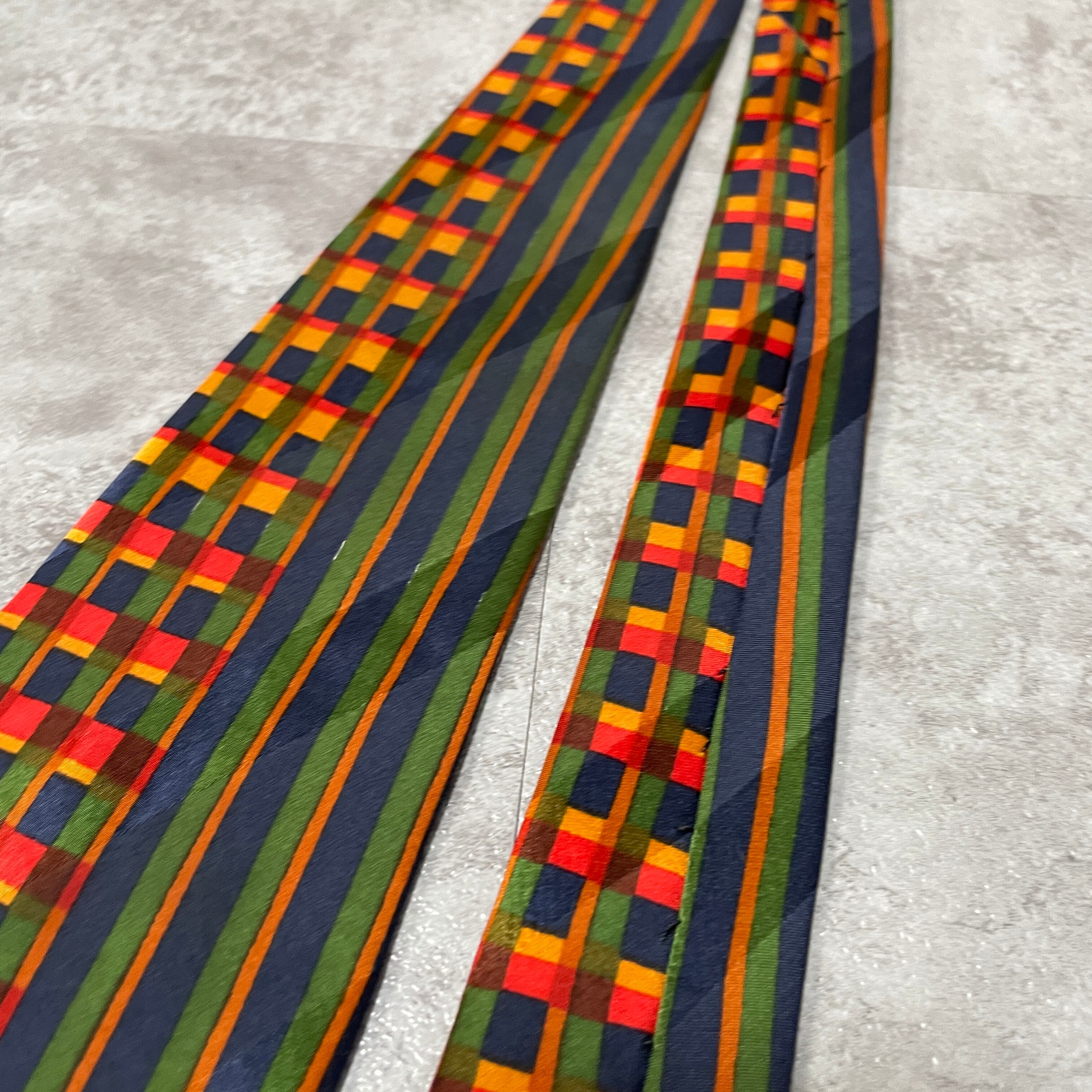 【pierre cardin】切り替えパターンネクタイ シャドウストライプ オレンジ ネイビー グリーン