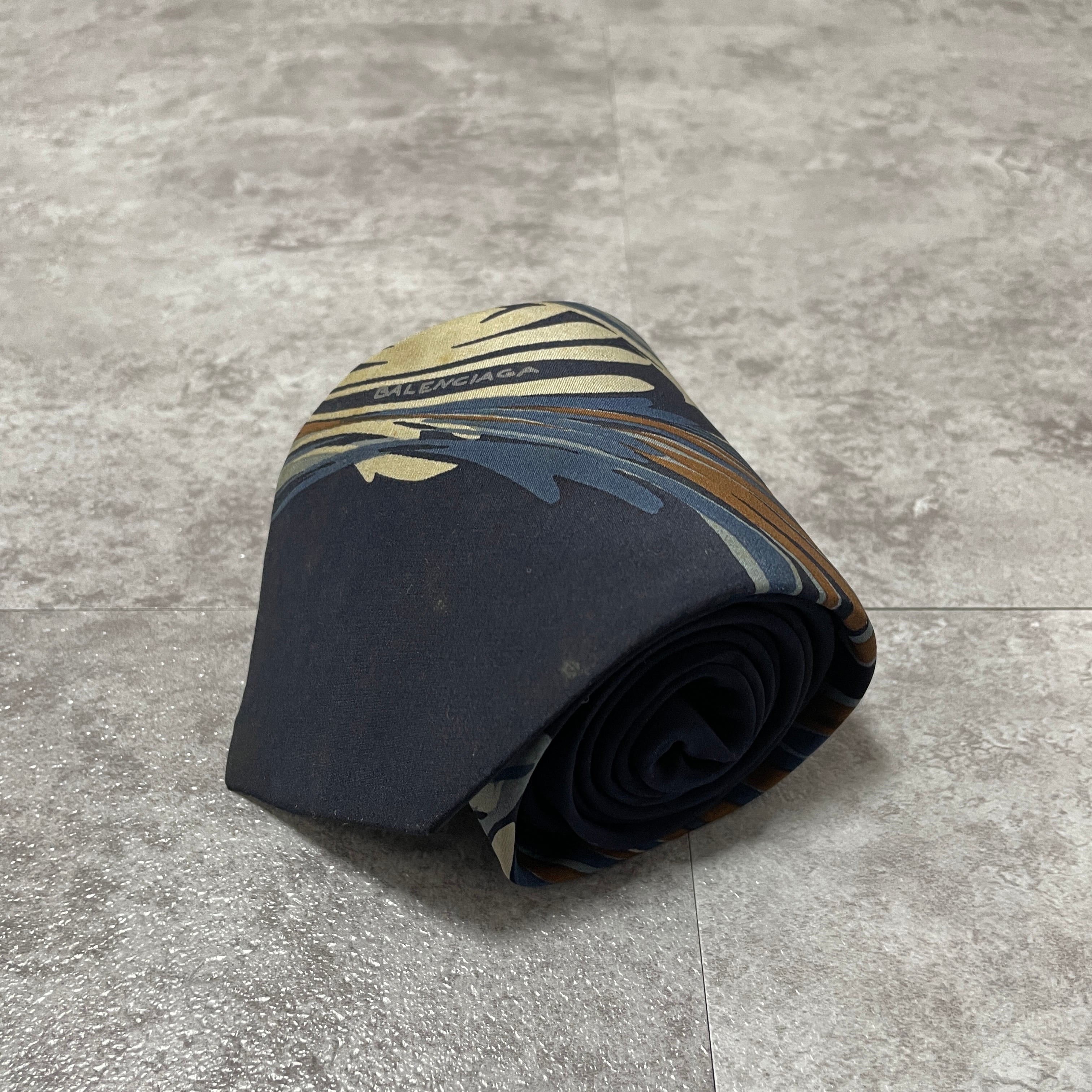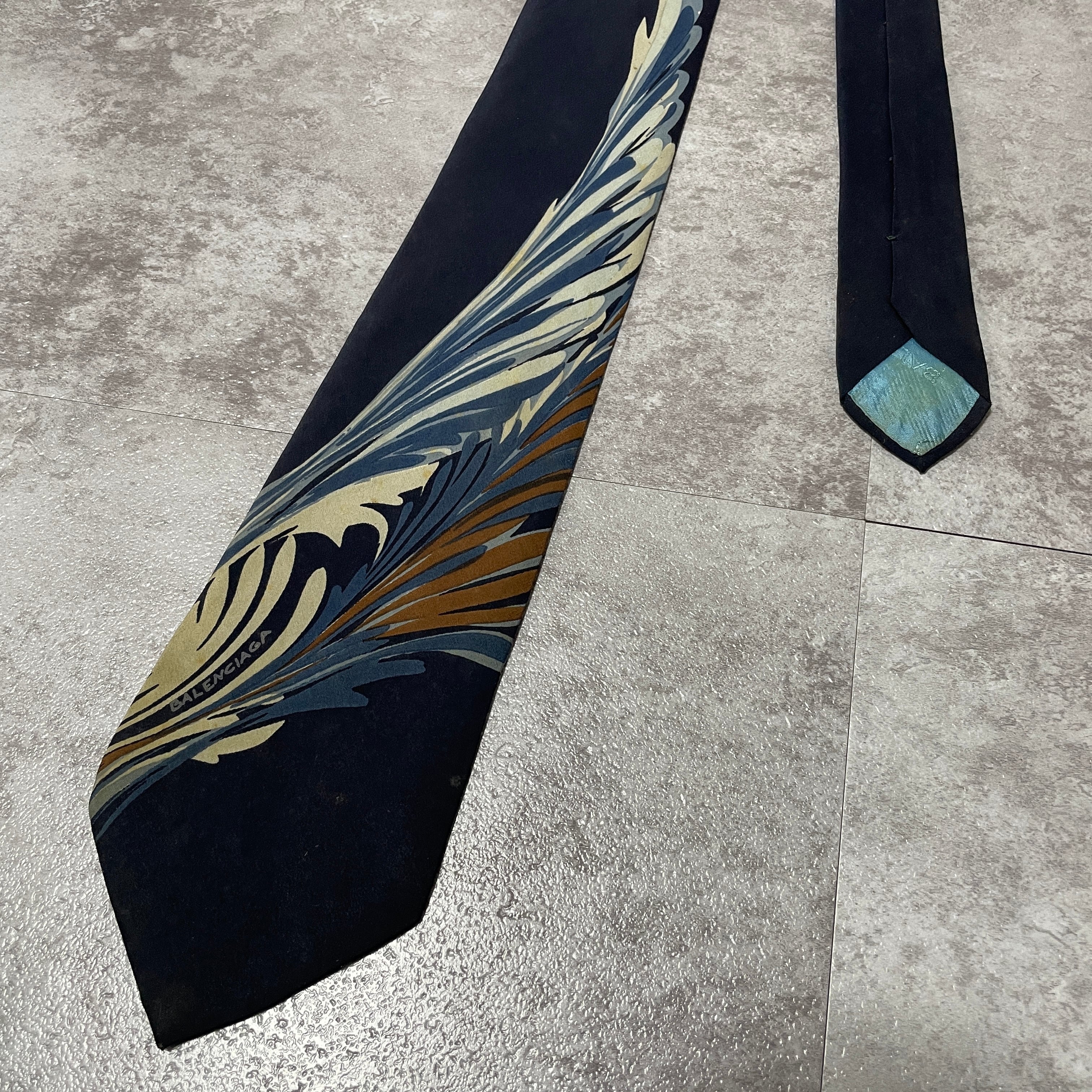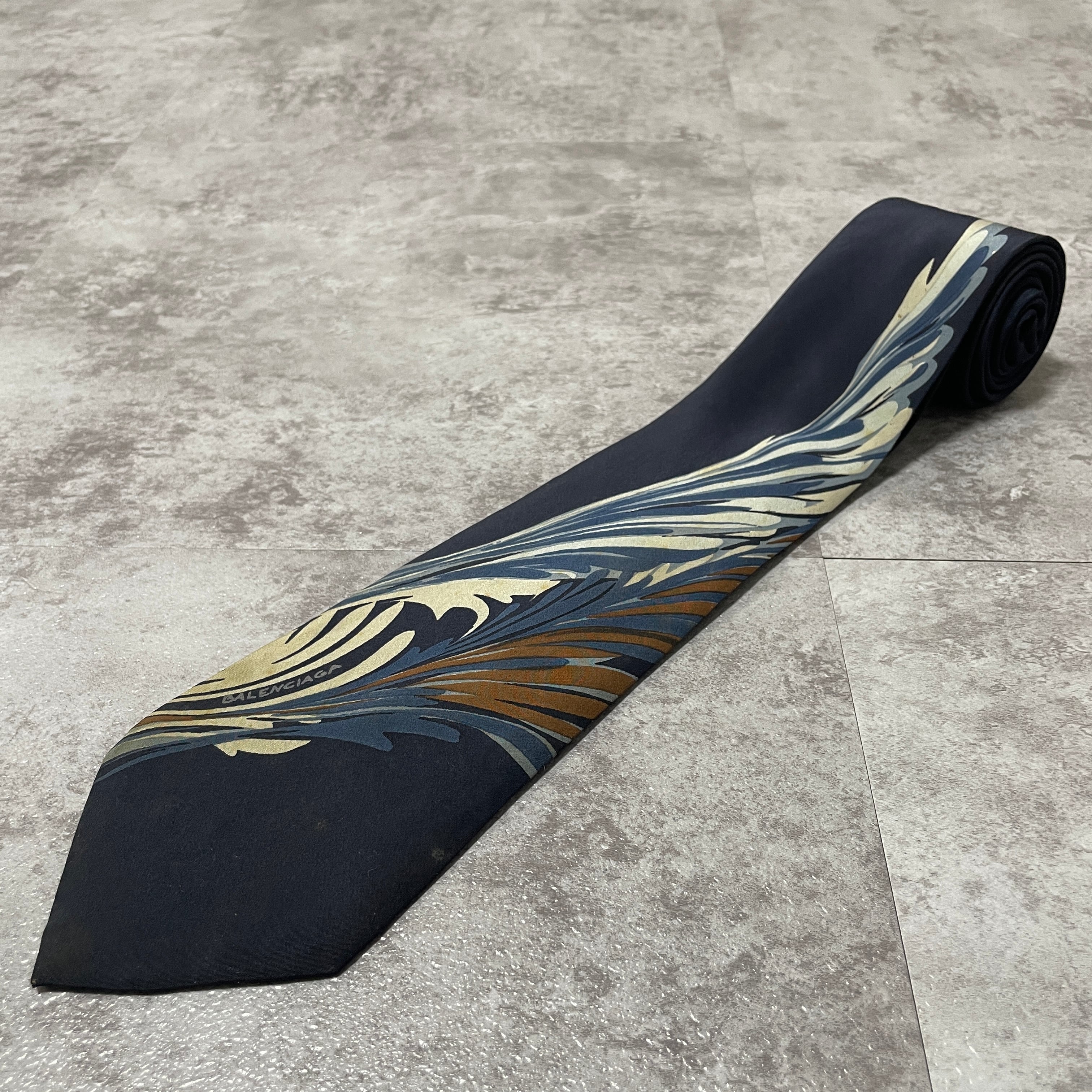 【BALENCIAGA】羽柄ネクタイ フェザーモチーフ ネイビー