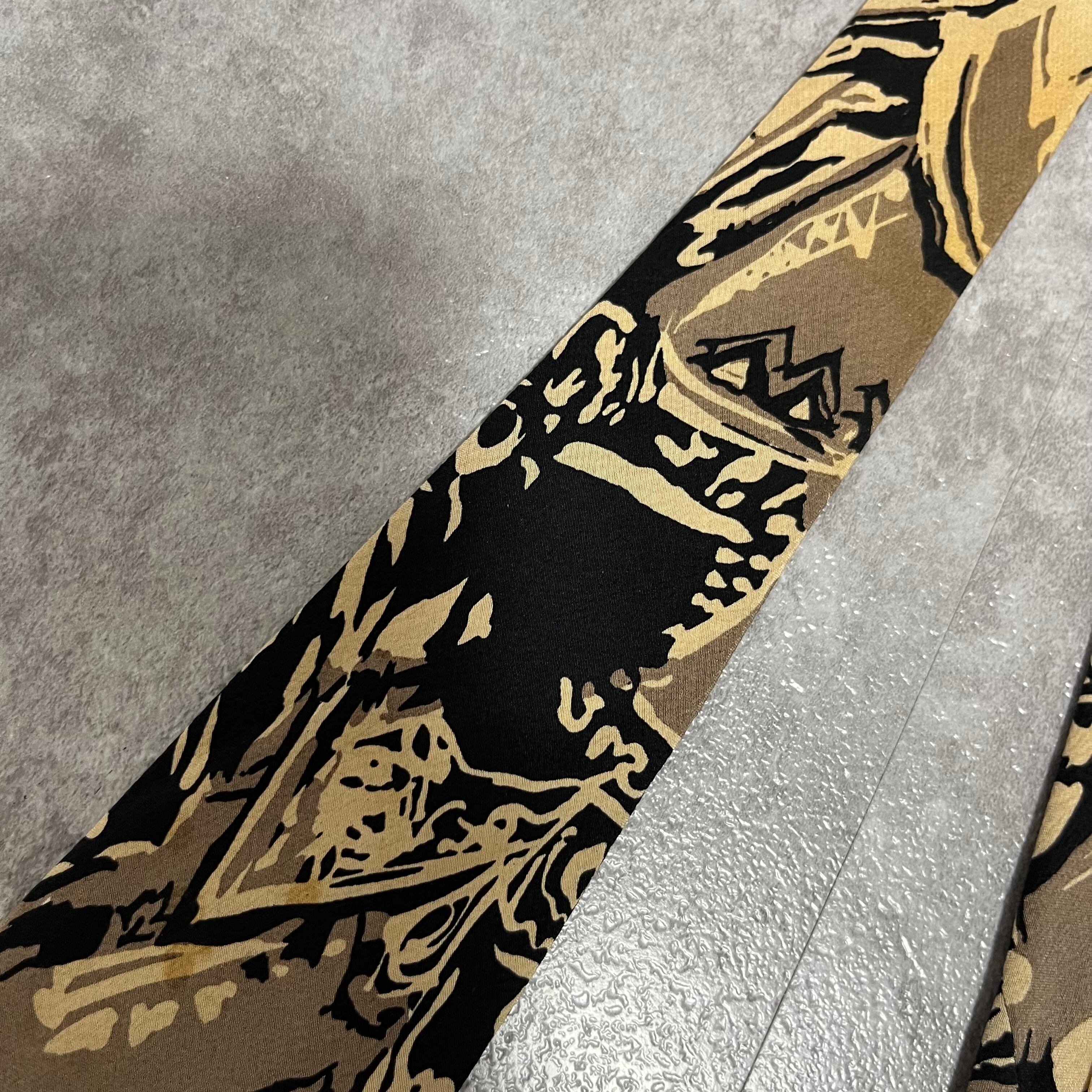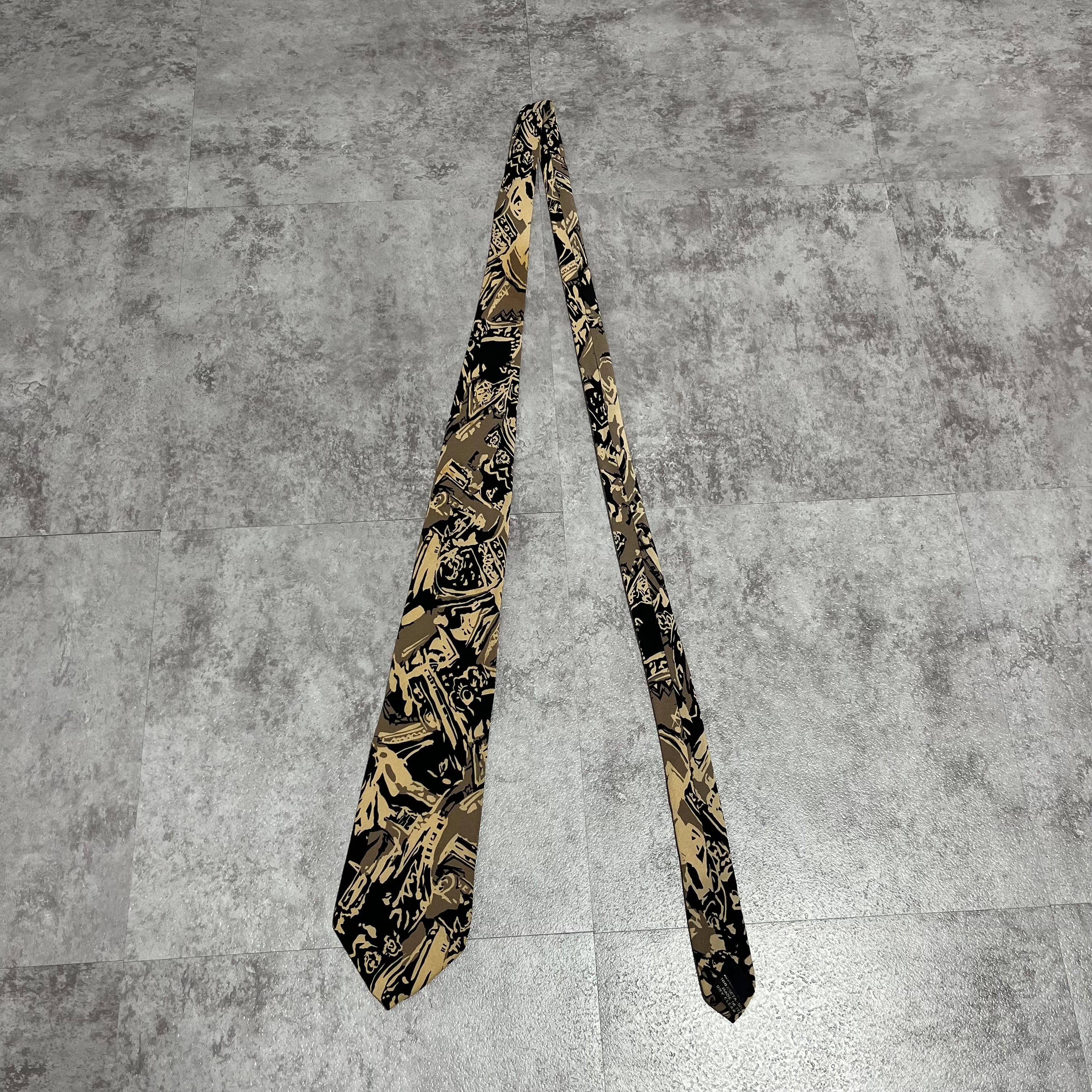 【アート柄】ボタニカルアートネクタイ ブラック ベージュ バイカラー