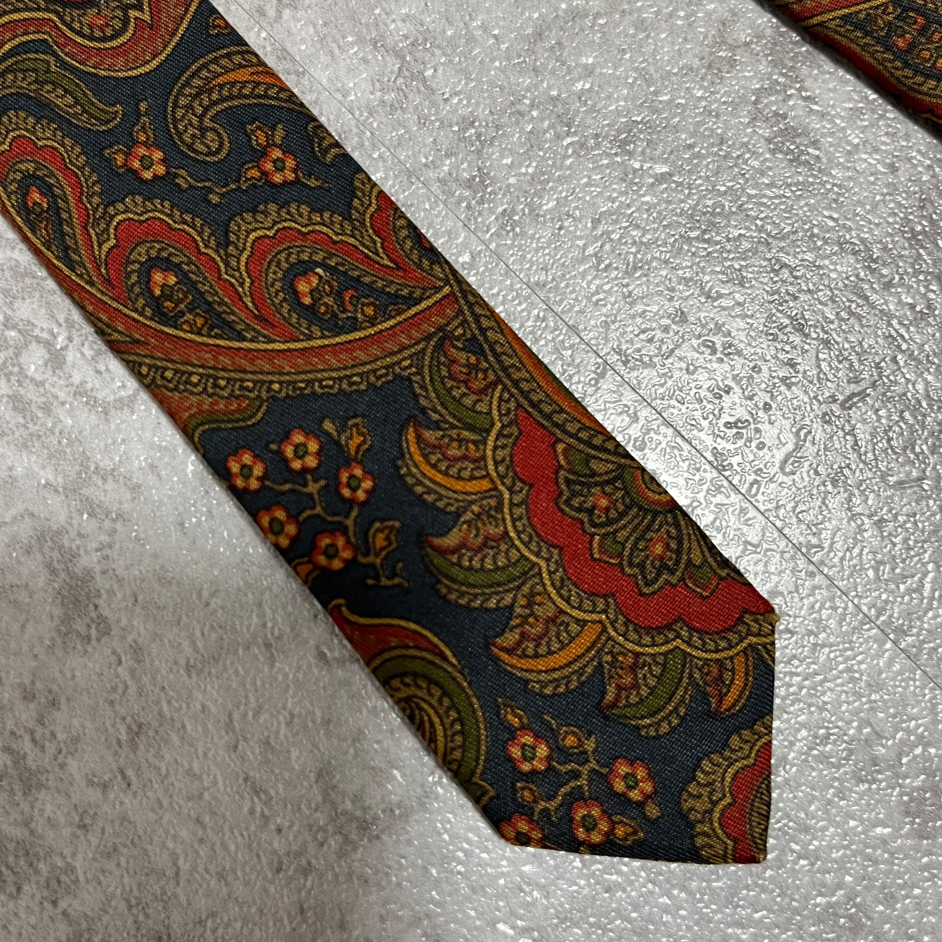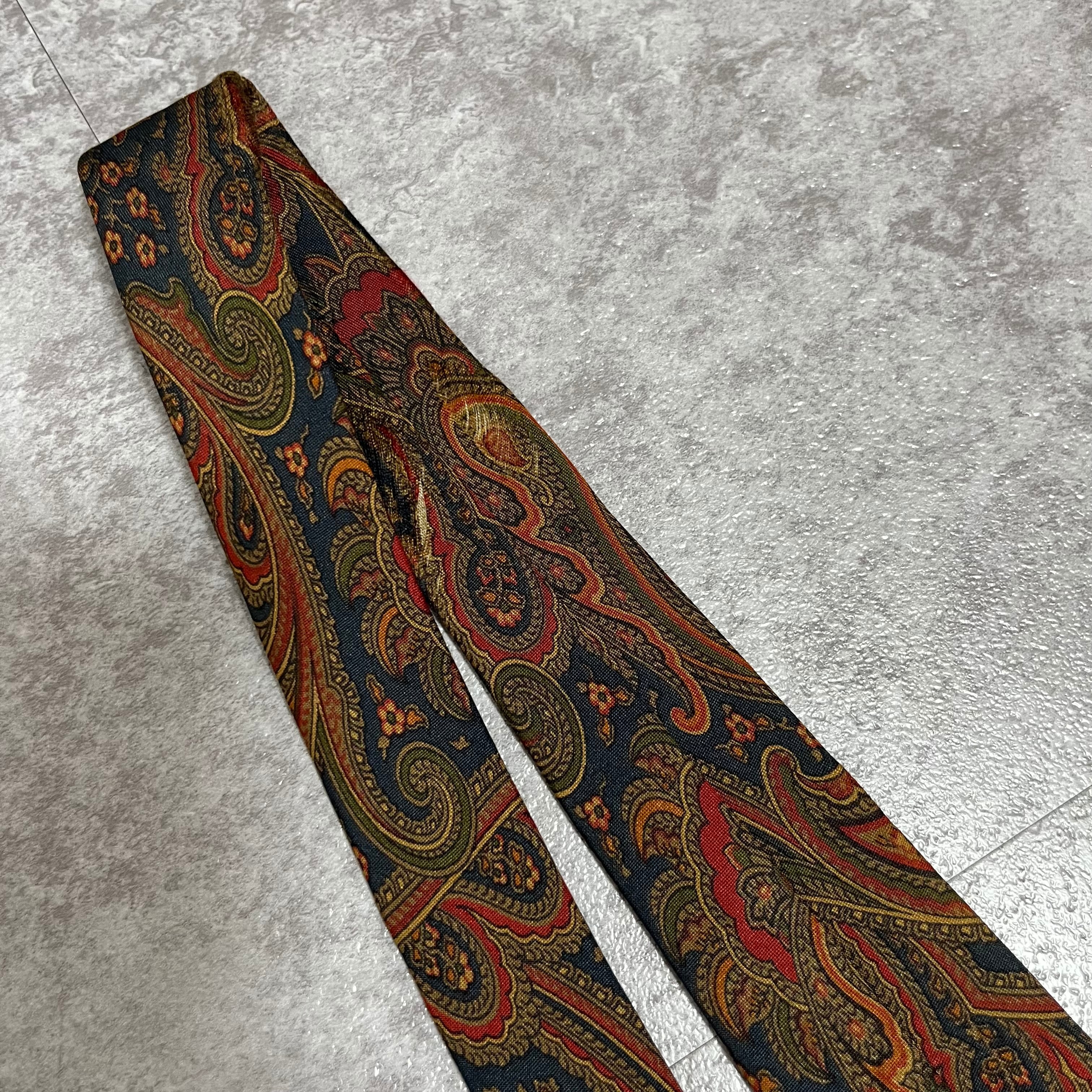 【Burberry】ペイズリー柄ネクタイ ボタニカル ネイビー オレンジ