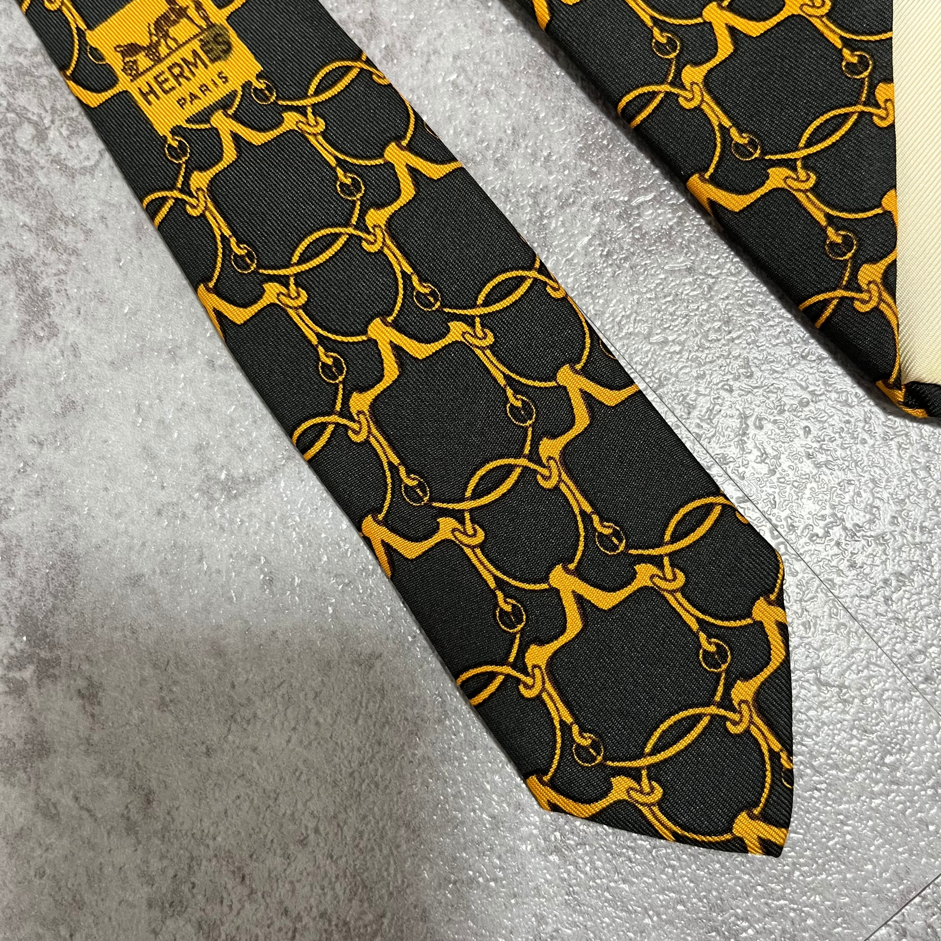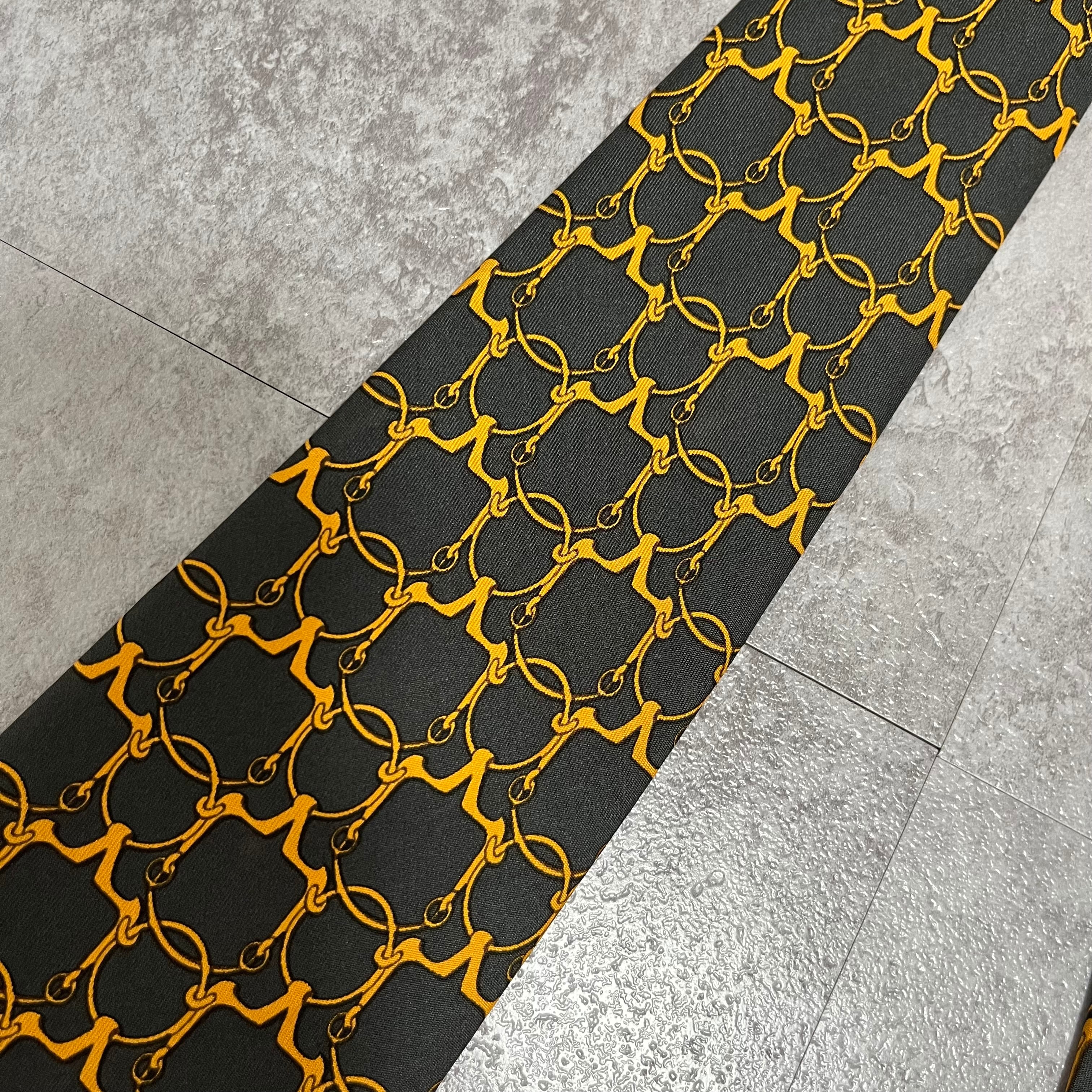 【HERMES】チェーンモチーフネクタイ チェーンパターン 黒橙 バイカラー ヴィンテージ