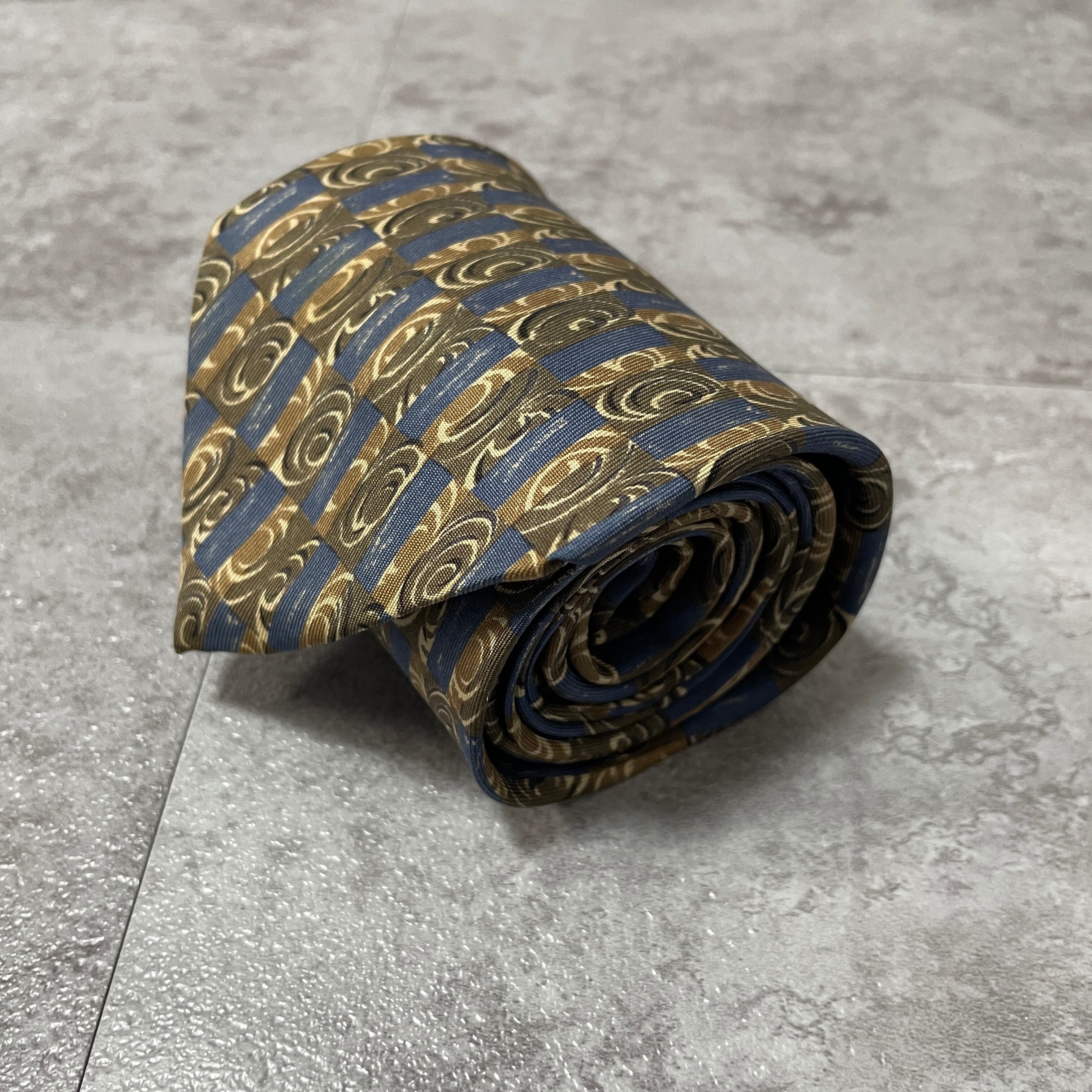 【renoma】ブロックパターンネクタイ マルチカラー カーキ グレー ブルー