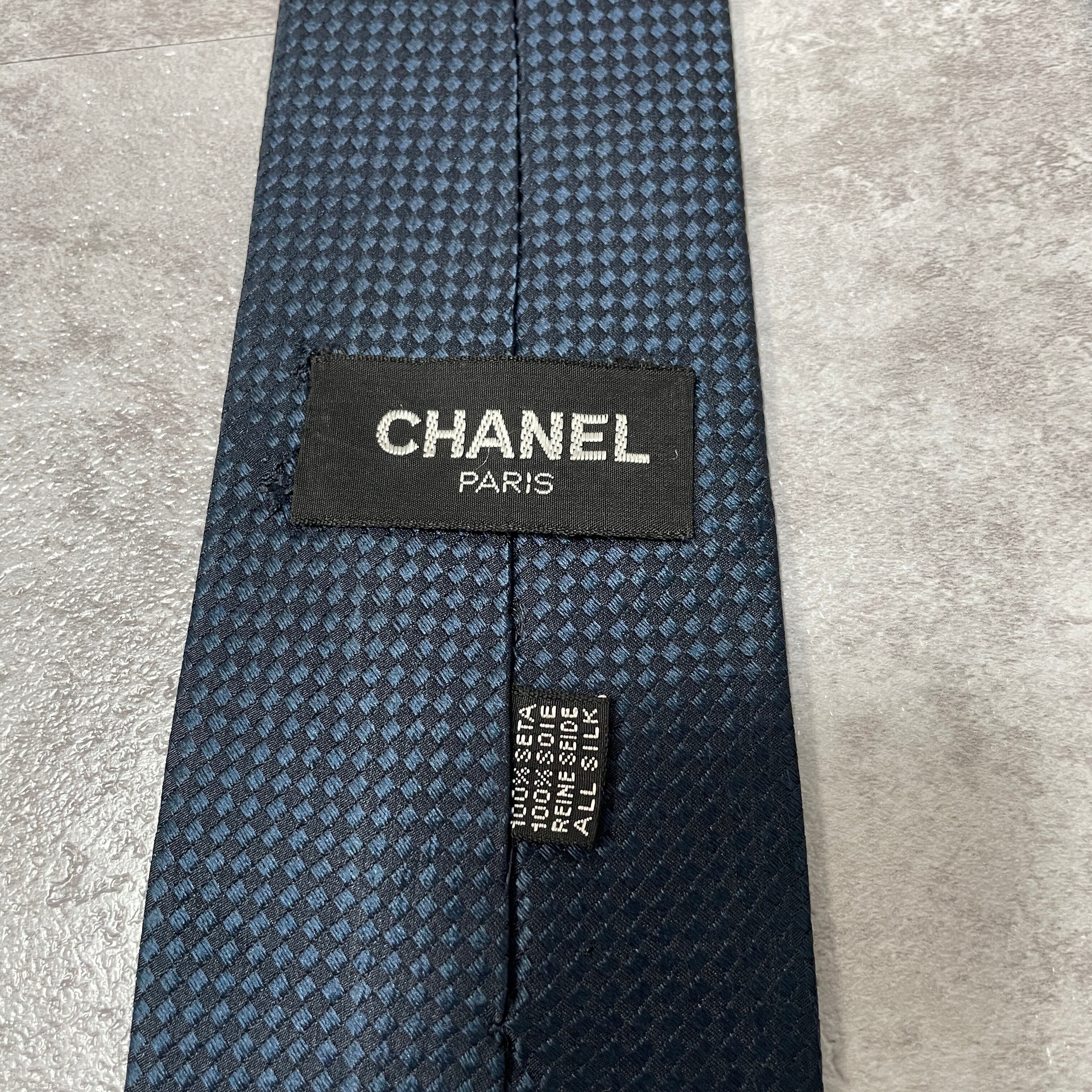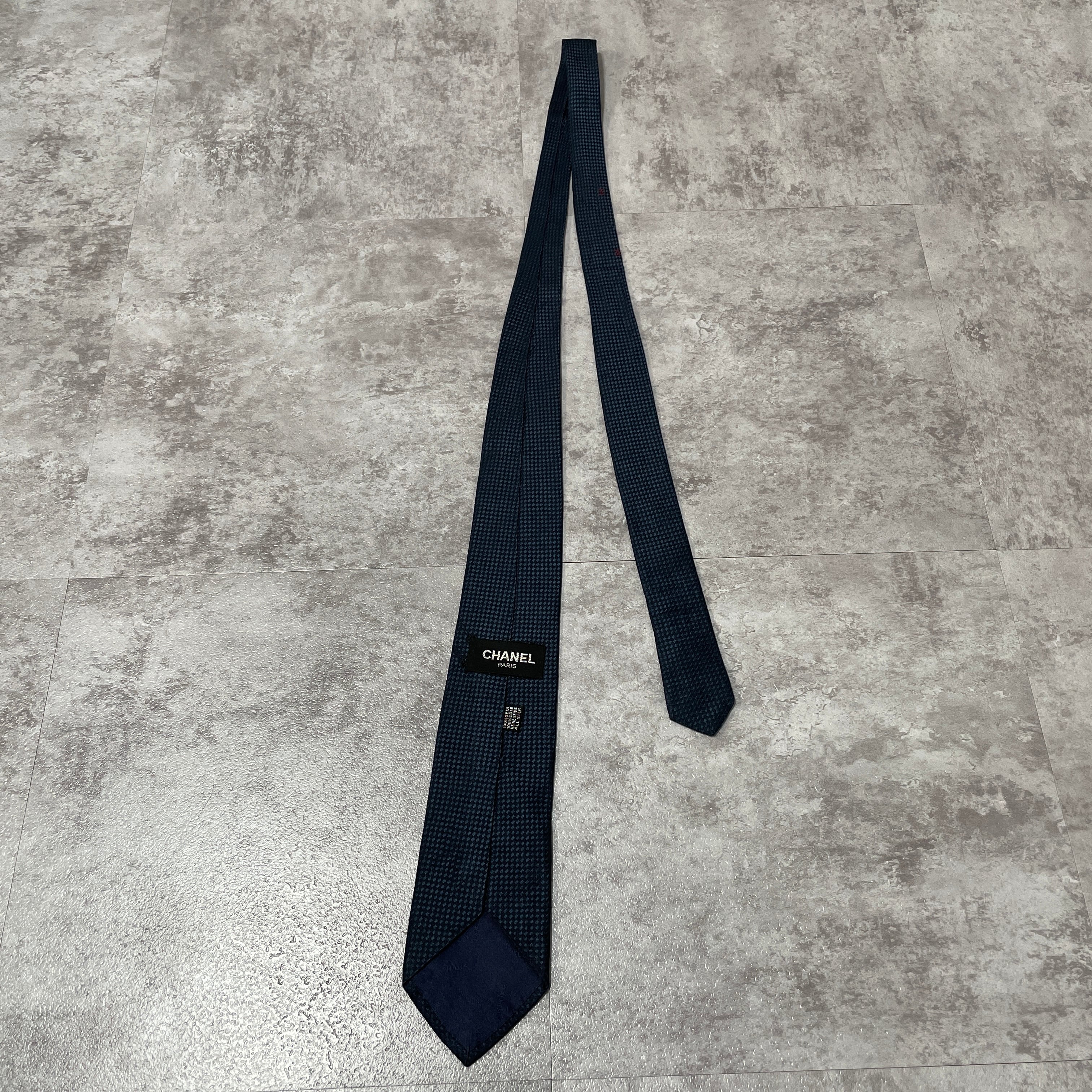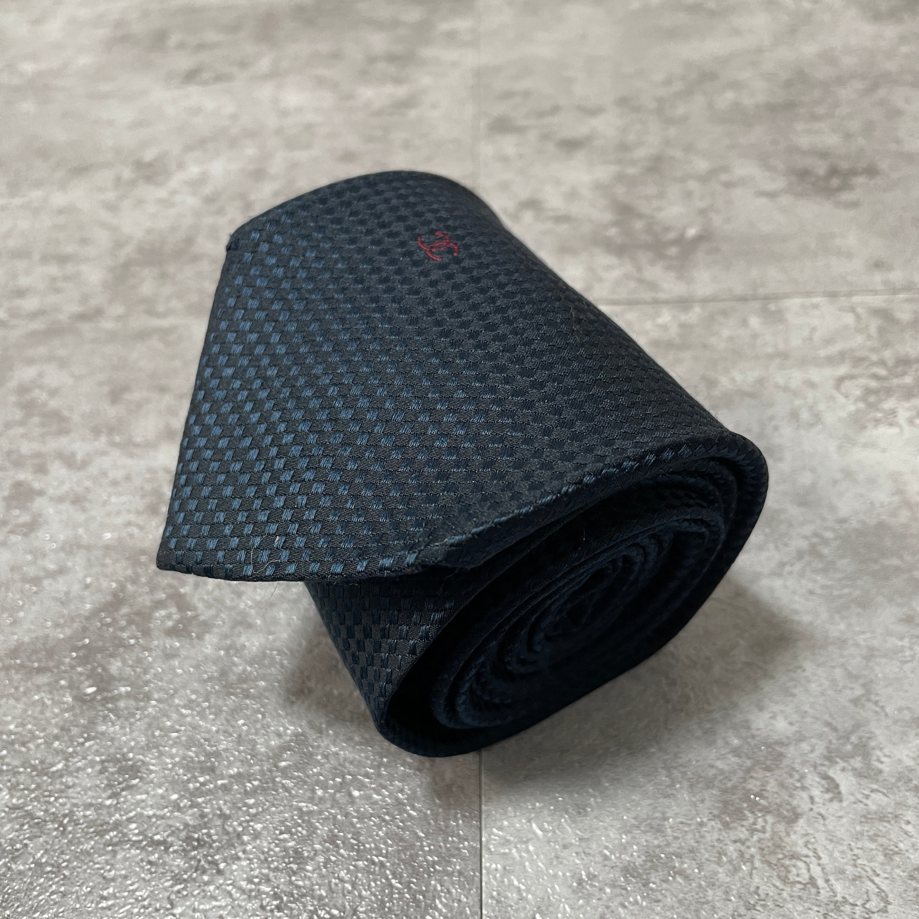 【CHANEL】無地ダークネイビーネクタイ ココマーク ロゴ入り