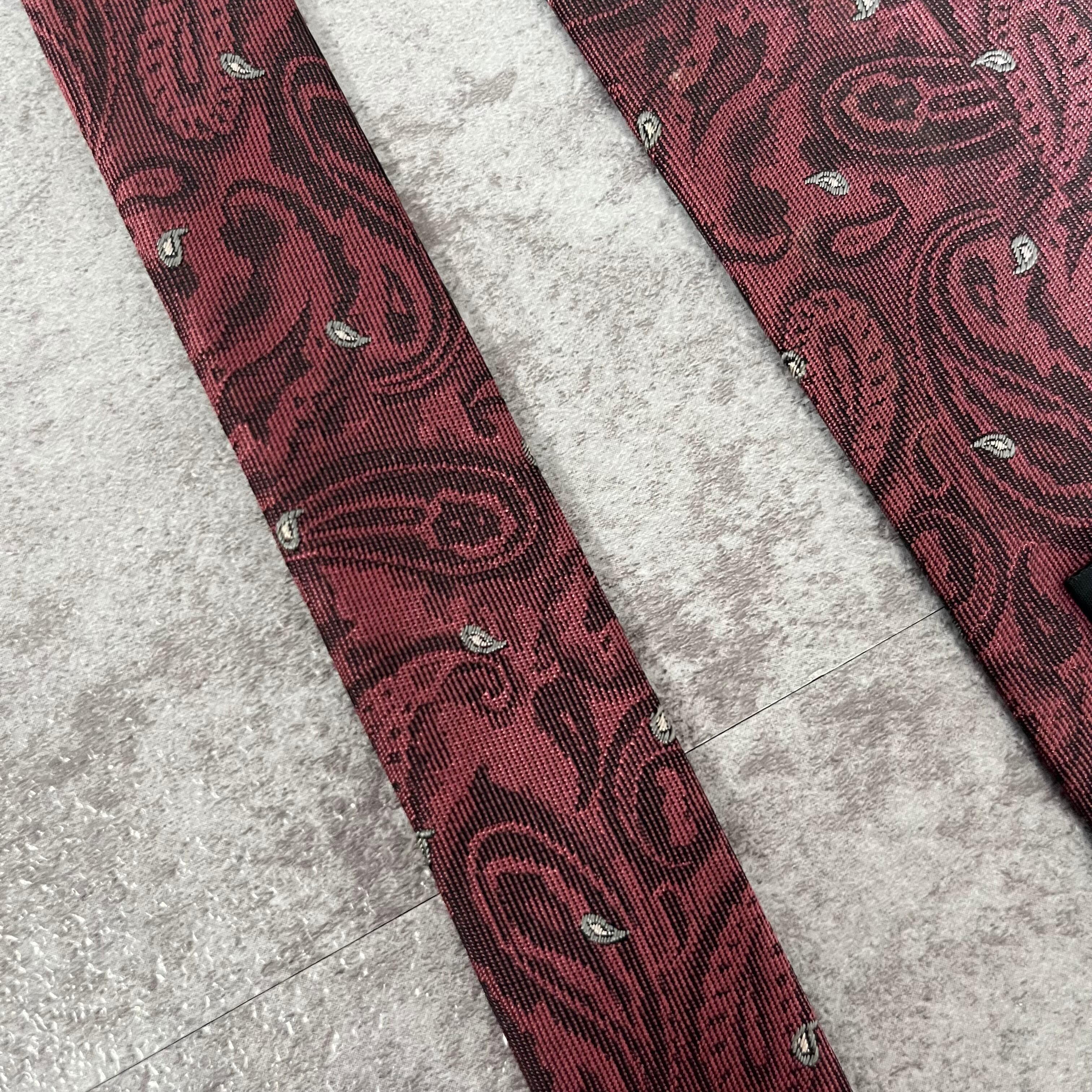 【ペイズリー柄】小紋ペイズリーネクタイ ワインレッド ゴールデンベア ロゴ入り