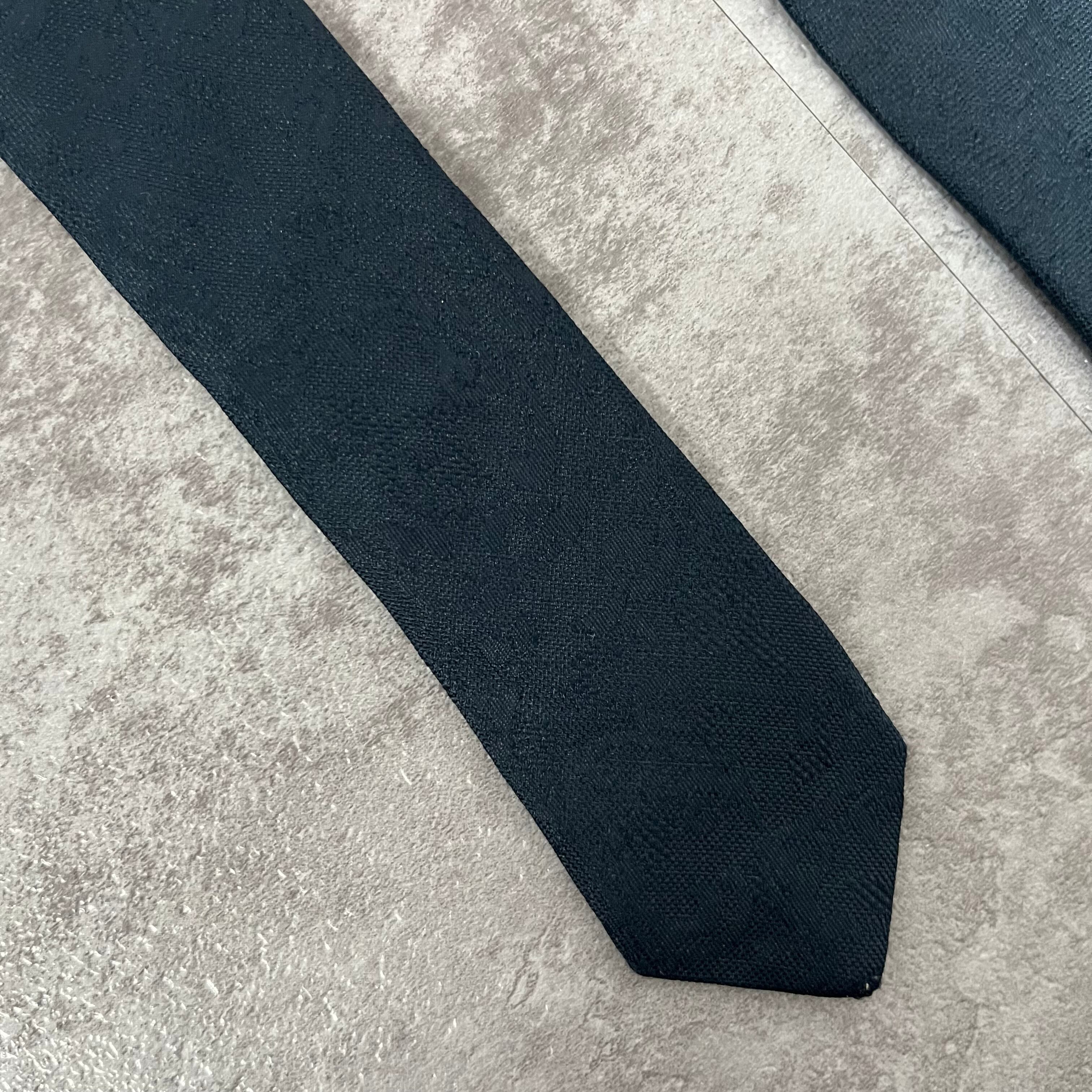 【CHANEL】シャドウペイズリー柄ネクタイ ダークネイビー ココマーク ロゴ入り