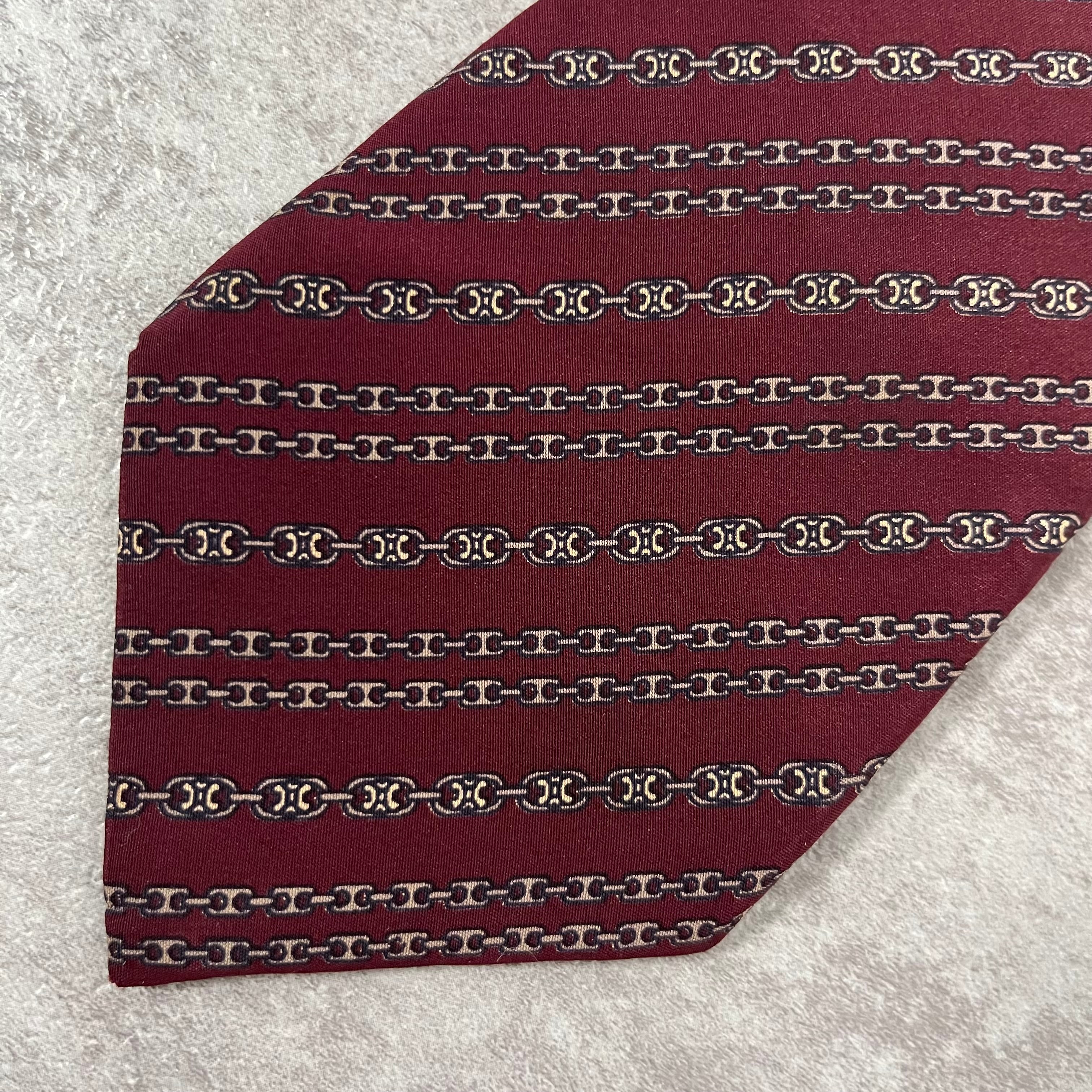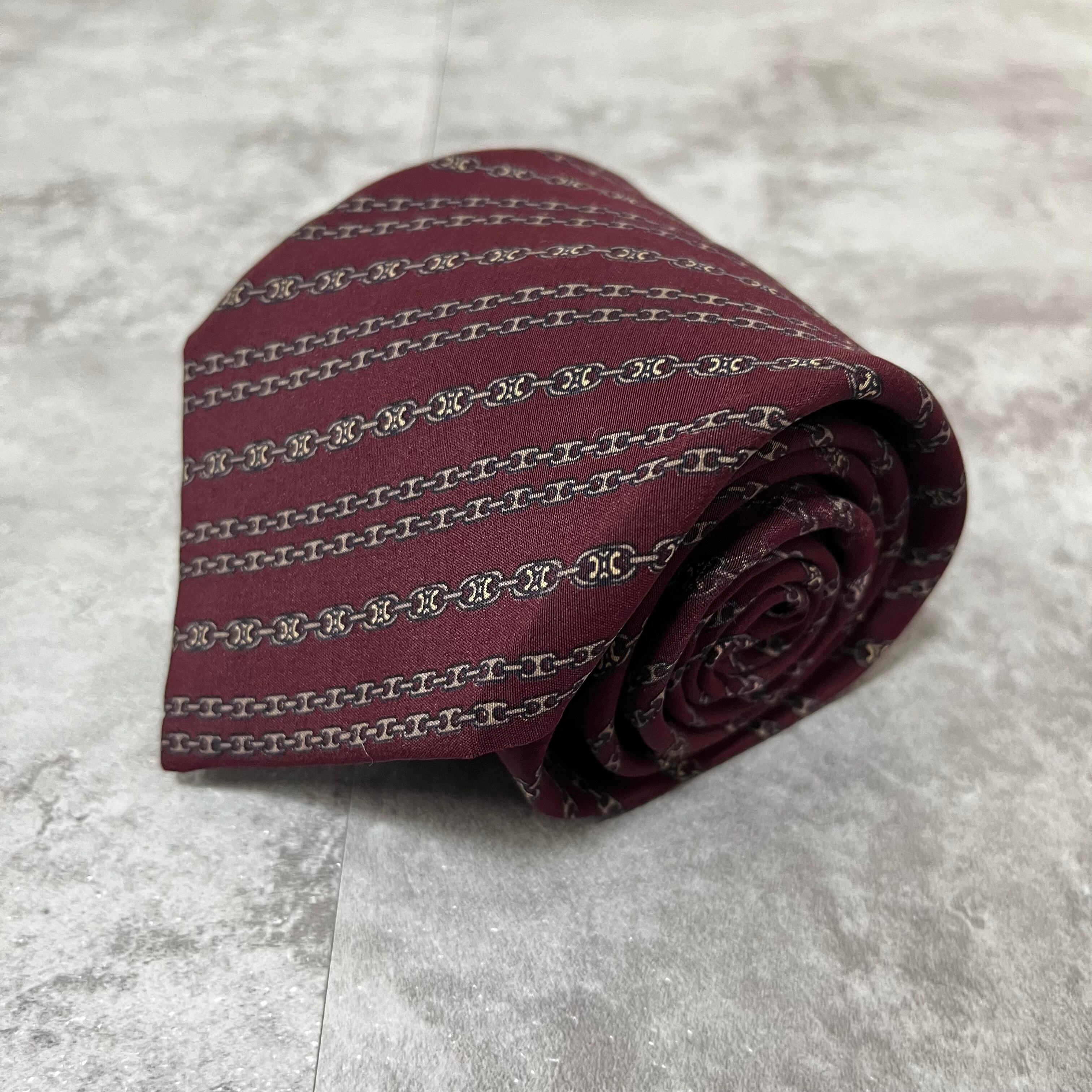 【CELINE】レジメンタルストライプネクタイ ワインレッド ロゴ入り トリオンフロゴ マカダム